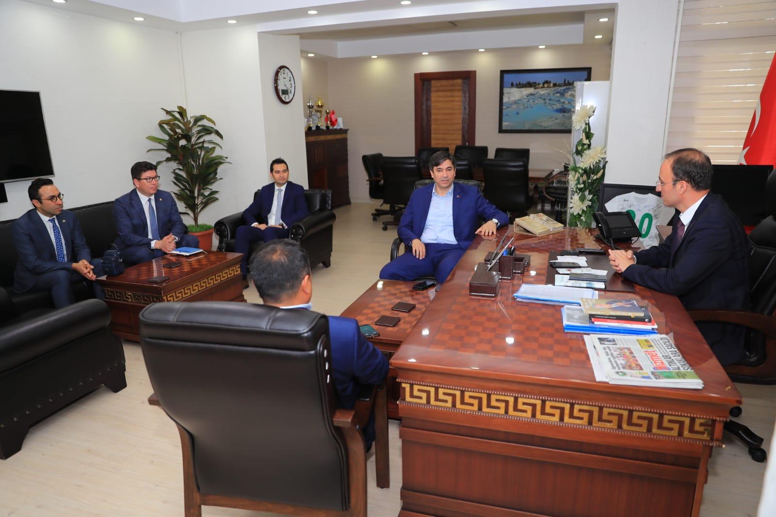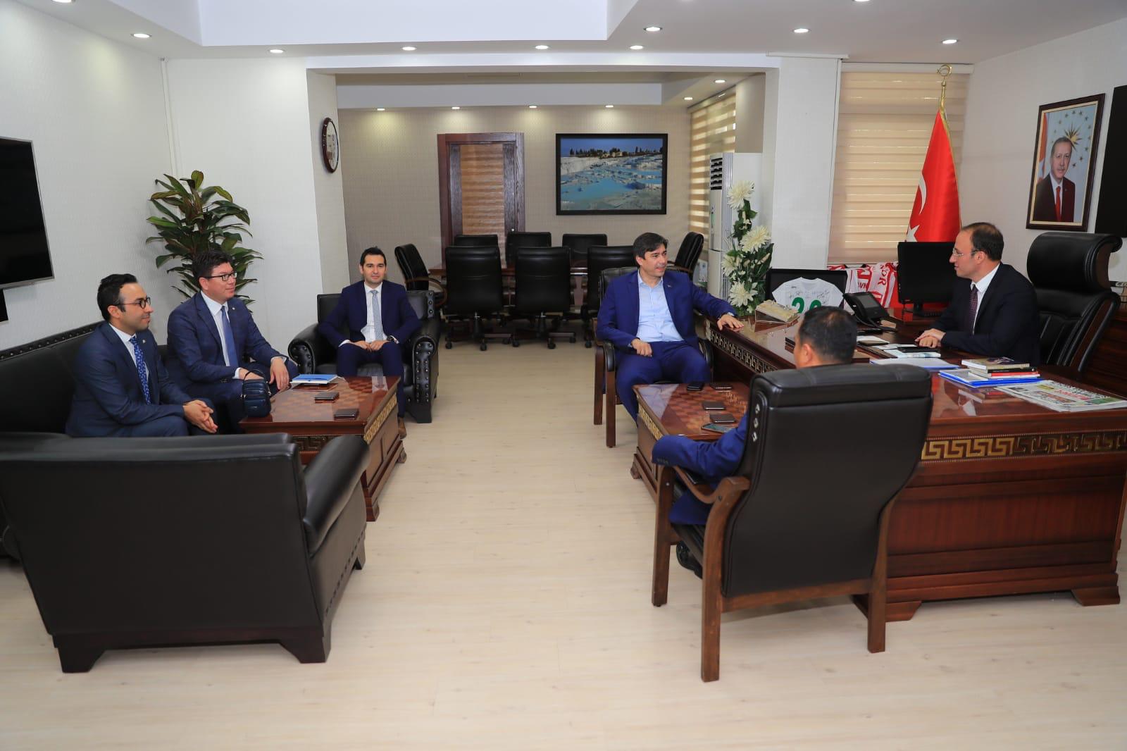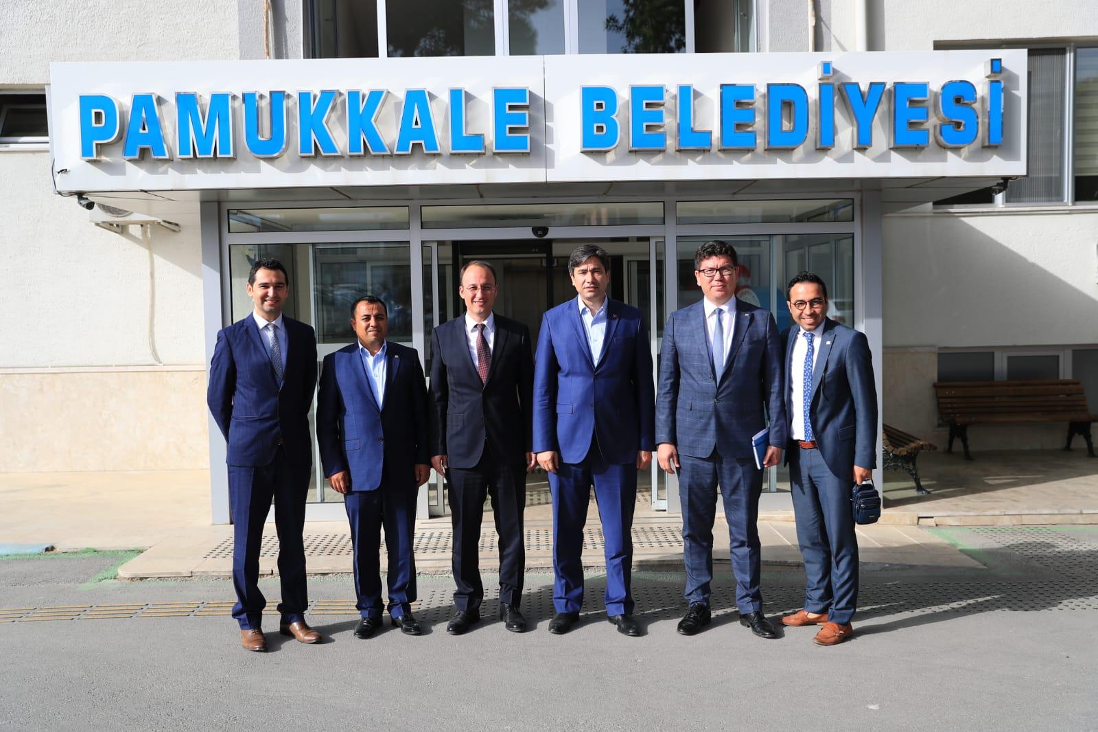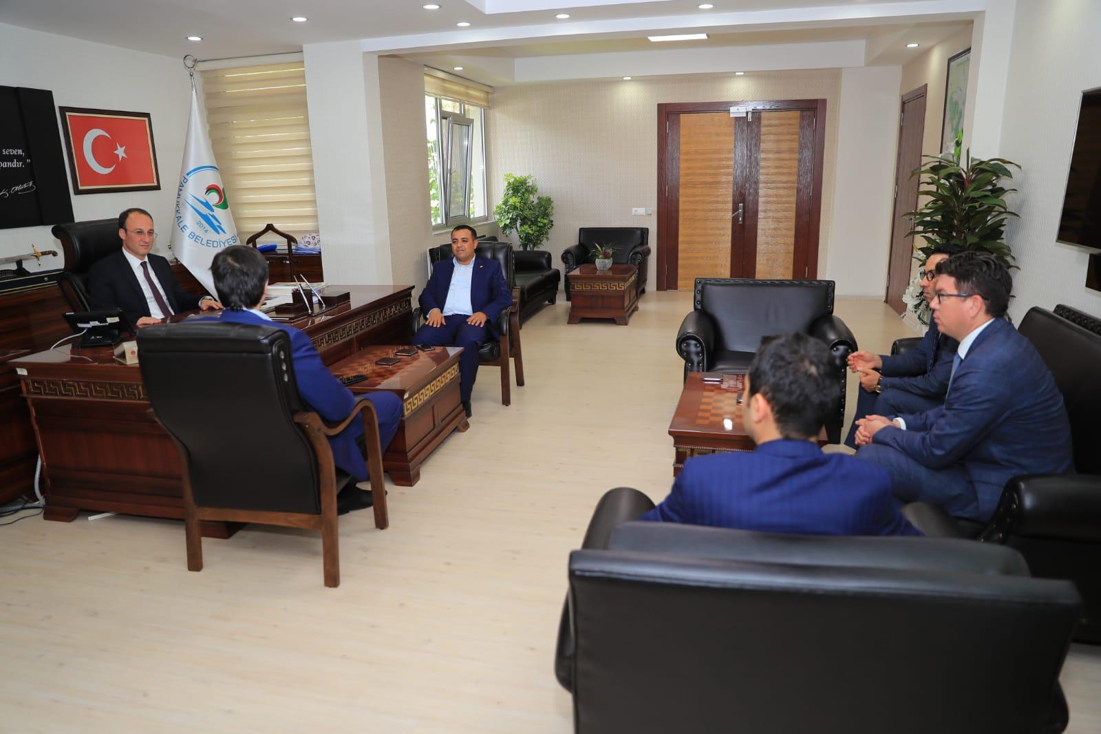 Pamukkale’de vatandaşların yüksek teveccühü ile Belediye Başkanı olarak seçilen Başkan Avni Örki, tebrik ve hayırlı olsun ziyaretlerini kabul etmeye devam ediyor. Makamında başta vatandaşların yoğun ilgi ve sevgisiyle karşılaşan Başkan Örki, diğer bir taraftan da protokol üyelerini de ağırlamaya devam ediyor. Bu kapsamda kısa adı BEM-BİR-SEN olan Belediye ve Özel İdare Çalışanları Birliği Sendikası Genel Başkanı Levent Uslu, Denizli İl Başkanı Osman Kurt ve Yönetim Kurulu Üyeleri Başkan Örki’nin konuğu oldu. Pamukkale Belediye Başkanı Örki’ye başkanlık görevinde başarılar dileyen Uslu, yapacak olduğu tüm çalışmalarda kendisine muvaffakiyetler diledi. Başkan Örki nazik ziyaretlerinden ve güzel temennilerinden dolayı BEM-BİR-SEN Genel Başkanı Levent Uslu ve beraberindeki heyete teşekkür etti.