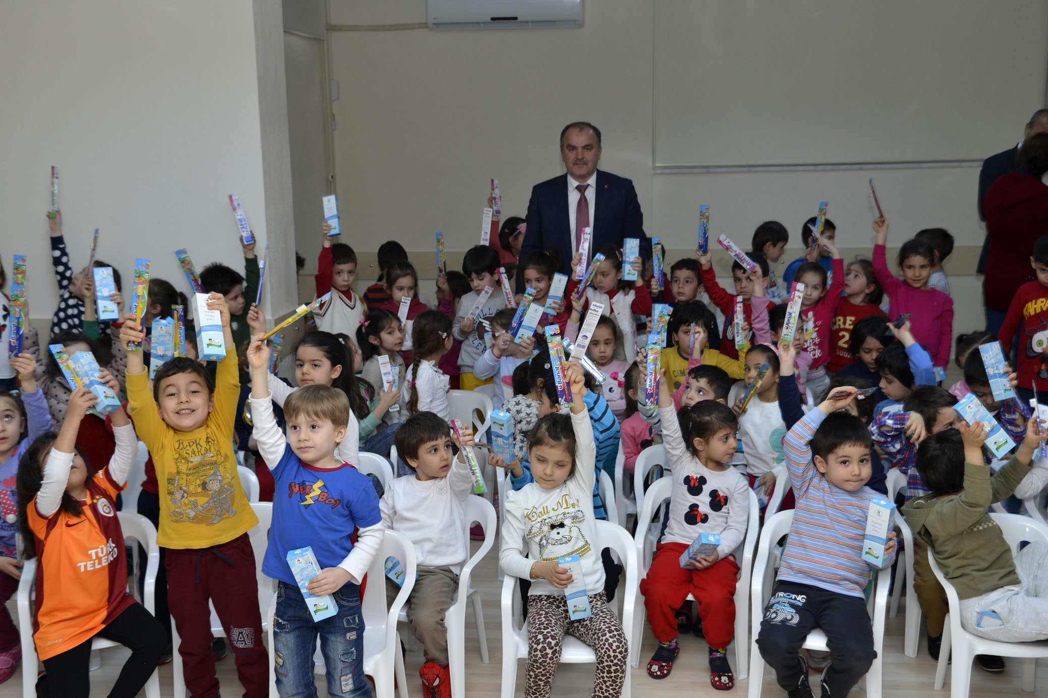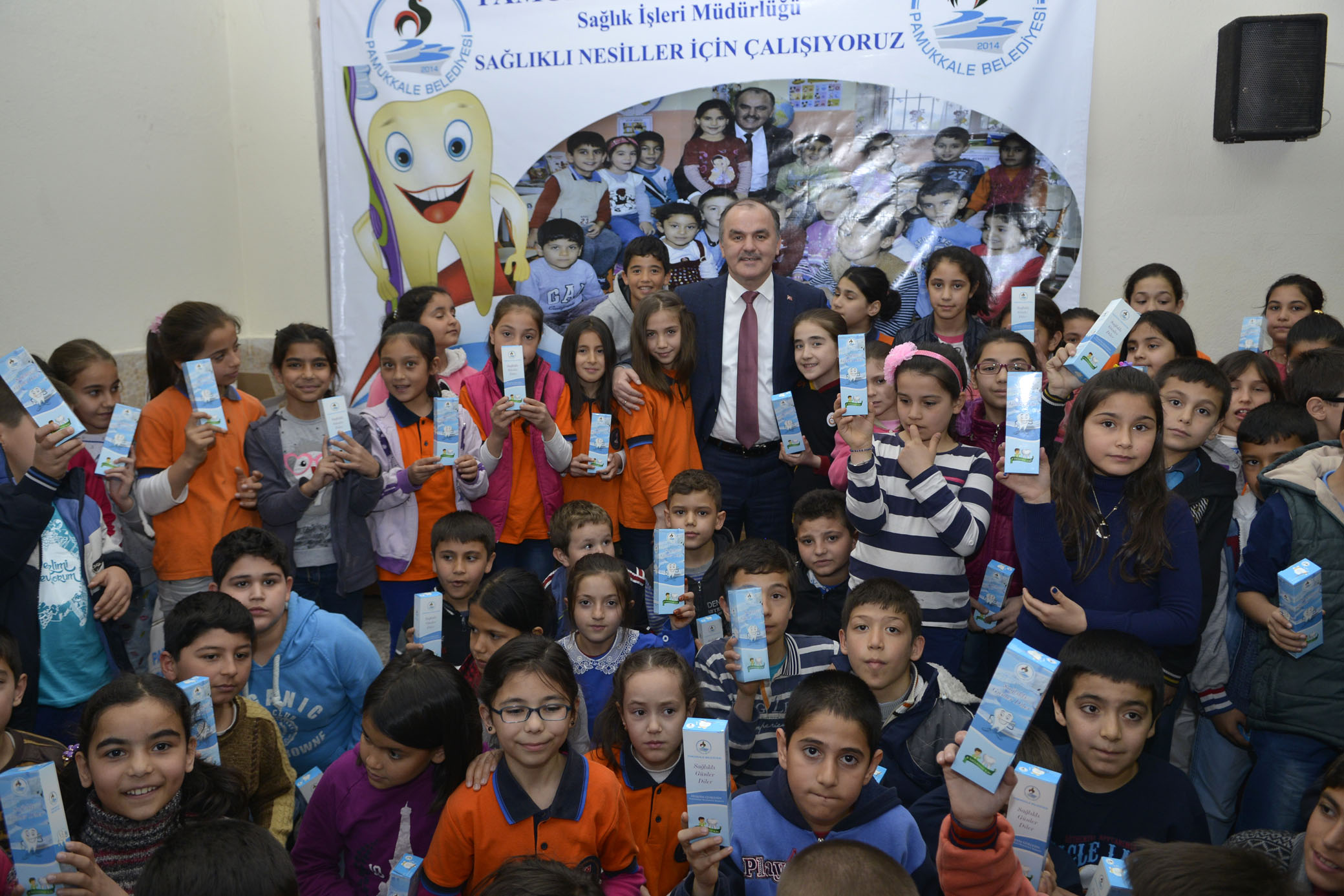 Pamukkale Belediye Baskani Hüseyin Gürlesin, Pamukkale Ilçesi’nde bulunan 14 anaokulunda 2 bin 230 ögrenciye ve 46 ilkokulda ise egitim ögretim gören 21 bin 342 ögrenciye ulastirilacak dis macunu ile dis firçasi dagitimini baslatti.