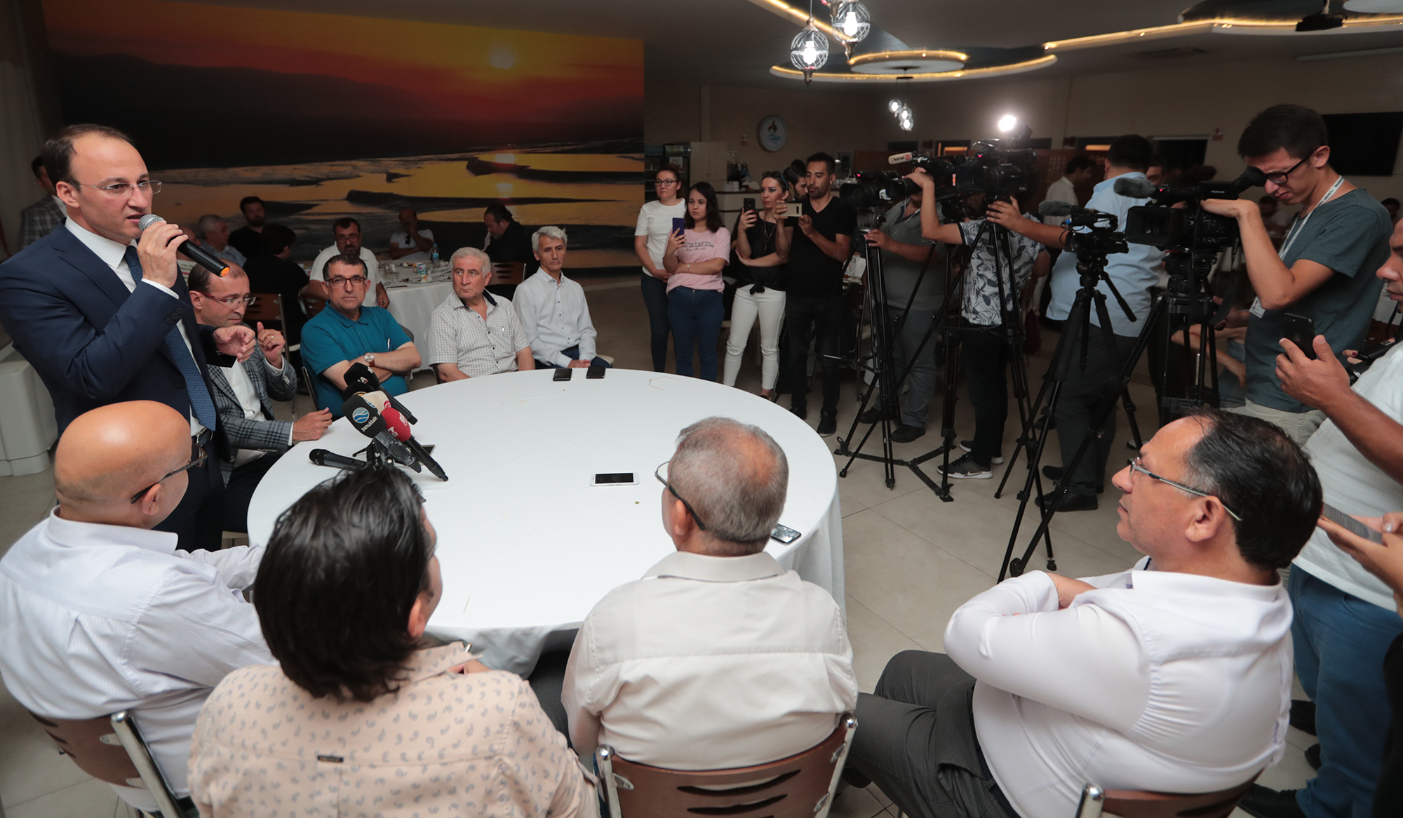 Pamukkale Belediye Başkanı Avni Örki ise basının çok büyük öneme sahip olduğunu ifade ederek, “Öncelikle basın bayramınızı kutluyorum. Sizler bizim büyük bir sevda ile aşk ile yaptığımız işleri halkımıza duyurma konusunda köprü vazifesi görüyorsunuz. Basın mensubu olmak herkesin yapabileceği bir iş değil. O yüzden sizin işinizin ne kadar zor olduğunu biliyorum. Basının önemi 15 Temmuz hain darbe girişiminde bir kez daha canlı canlı ortaya çıkmıştır. Çünkü o gün darbe girişimini öğrenip sokağa çıktığımızda siz de kameralarınızla oradaydınız. Basın o gün vatan savunmasının en önemli unsurları arasında yer aldı. Cumhurbaşkanımız vatandaşlarımızı meydanlara yine basın aracılığıyla davet etti ve darbe girişimi engellendi. Basın önemini 15 Temmuz’da bir kez daha göstermiş oldu. Bizler Pamukkale Belediyesi olarak önümüzdeki süreçte sizlerin yanında olmaya devam edeceğiz. Bir kez daha 24 Temmuz Basın Gazeteciler ve Bayramınızı kutluyorum” dedi. Konuşmaların sonunda Başkan Avni Örki ve yemeğe katılan basın mensupları günün anısına objektif karşısına geçtiler.