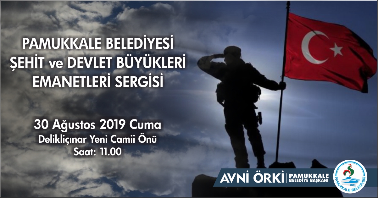 Pamukkale Belediyesi 30 Ağustos Zafer Bayramı’nın anlam ve önemine yakışır bir etkinlikle, kahraman şehitlerimizi yâd edecek. Pamukkale Belediye Başkanı Avni Örki, 30 Ağustos Cuma günü Delikliçınar Yeni Camii önünde saat 11:00’de açılışını gerçekleştirecekleri “Şehit ve Devlet Büyükleri Emanetleri Sergisi”ne tüm Denizli Halkı’nı davet etti. “Serginin manevi değeri büyük” diyen Başkan Avni Örki, 40’a yakın kahraman şehidin özel eşyasının sergileneceği serginin, ilk gün Delikliçınar Camii önünde, 31 Ağustos Cumartesi günü Forum Çamlık AVM’de, 1 Eylül Pazar günü de Pamukkale’nin doğal güzelliği eşliğinde Kocaçukur’da olacağını belirtti.