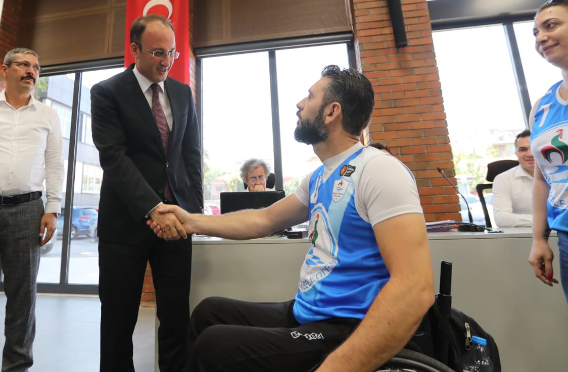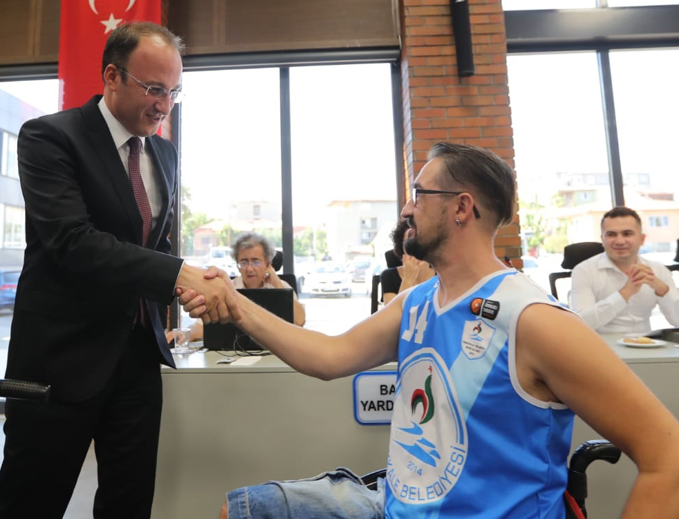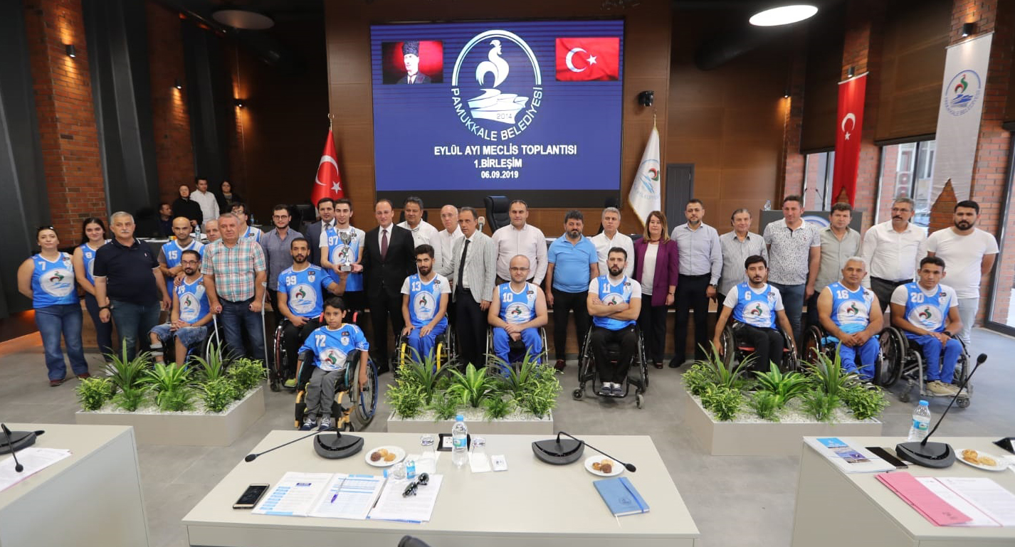 Pamukkale Belediyespor’un geçen sezon elde ettiği 3.’lük kupası Pamukkale Belediye Meclisi Eylül ayı ilk toplantısı öncesi başkan Avni Örki’ye verildi. Pamukkale Belediye Spor Kulüp Başkanı Birol Konak kulüple ilgili meclis üyelerine bilgi verdi. “Kulübümüz 2015 yılında kuruldu” diyen Başkan Konak, “4 sezondur tekerlekli sandalye basketbol takımımız bölgesel ligde mücadele etti. Son sezonda grubunu 3. sırada tamamlayarak 3. Lig’e çıktı. Masa tenisi ve okçuluk branşında da kulübümüz aktif. Genel kurulda bu önemli göreve beni layık gören başta başkanımız Avni Örki olmak üzere tüm delegelere teşekkür ederim. Yeni dönemde güreş ve voleybol branşlarını da aktif hale getireceğiz” dedi. Konak, son yapılan genel kurulda göreve gelen yönetim kurulunu meclis üyelerine tanıttı. Pamukkale Belediye Başkanı Avni Örki ise kulübün 2015 yılından bu yana Pamukkale Belediyesi’ni temsil ettiğini belirterek, “Kulübümüz özellikle tekerlekli sandalye basketbol branşında başarılı olarak 3.Lig’e yükseldi. Geçen sezon grubu 3. sırada tamamlayarak elde edilen başarının sembolü olan kupayı meclisimiz huzuruna getiren sporcularımıza teşekkür ederim. Yeni sezonda hem takımımıza hem de oluşan yönetim kuruluna başarılar dilerim” diye konuştu. Son olarak Pamukkale Belediye Spor Kulübü sporcuları kupayı Başkan Örki’ye sundu.
