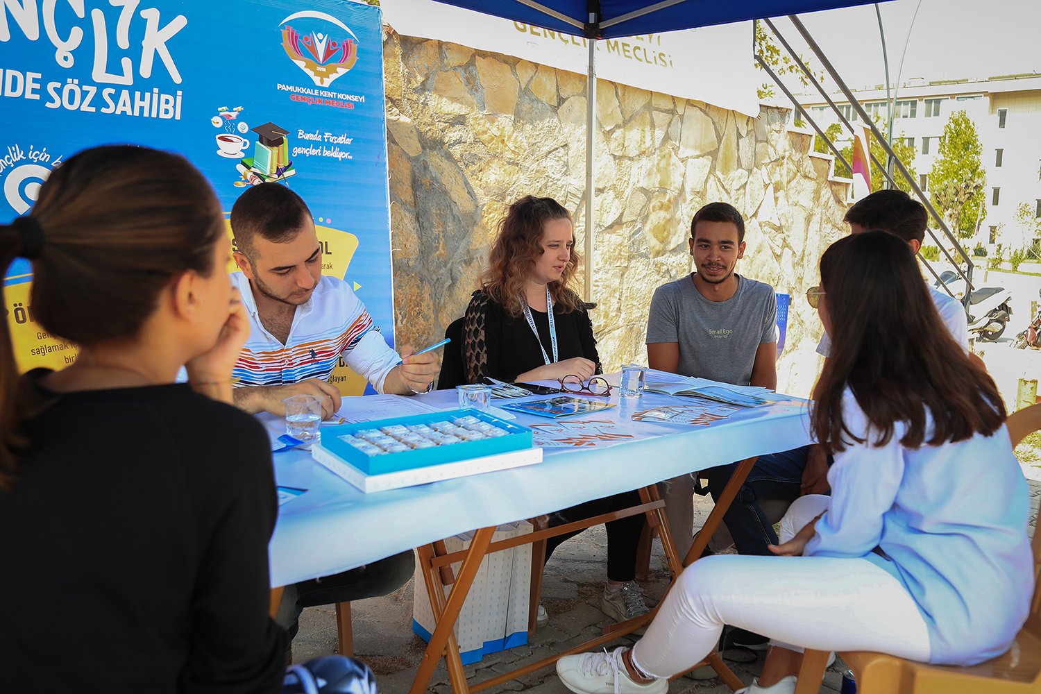 Pamukkale Üniversitesi Kampüsü içerisinde stant açan Pamukkale Kent Konseyi Gençlik Meclisi, üniversite için şehre yeni gelen öğrencilere “Yaşadığımız ilçede katılımcı olarak söz sahibi olalım”, “Birlikte planlayacağımız organizasyonlar ile dezavantajlı grupların yanında olalım” gibi sloganlarla gençlere çağrıda bulunuyorlar. Pamukkale Kent Konseyi Başkanı Ayhan Soyfidan, Gençlik Meclisi Başkanı Cevat Serdar, Gençlik Meclisi yönetim kurulu üyeleri de stantta hazır bulunurken, gençlere yapılacak olan projeler anlatılıyor. Ayrıca gençliği yerel yönetimlere çekerek, yerel yönetimlerde gençlerin söz sahibi olması için çaba sarf ediyorlar.