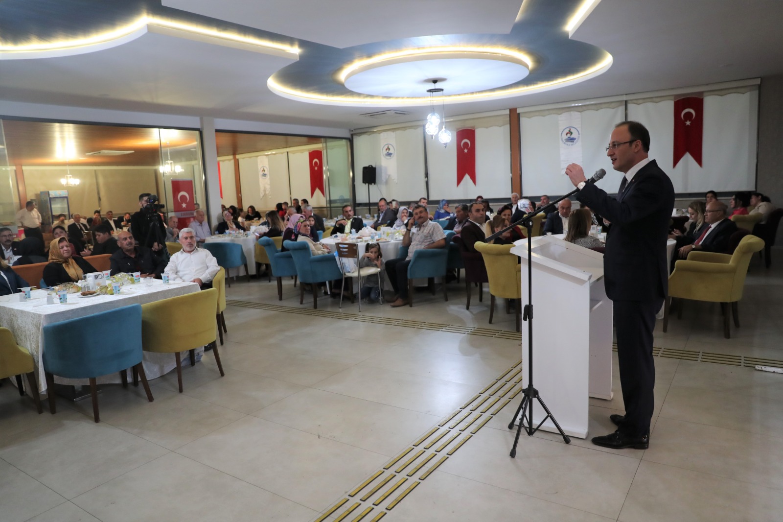Pamukkale’de yapılan birçok güzel hizmette muhtarların da çok büyük payının olduğunu ifade eden Pamukkale Kaymakamı Hayrettin Balcıoğlu, “Muhtarlarımızın aileleri ile birlikte böyle güzel bir mütevazı ortamda sizlerle birlikte olmaktan ben de büyük mutluluk duyuyorum. Denizlimizde çok güzel hizmetler yapılıyor. Tabi bu hizmetlerde muhtarlarımızın da çok büyük payı var. Siz muhtarlarımıza da bu vesileyle yaptığınız ve yapacak olduğunuz hizmetler için çok teşekkür ediyorum. İnşallah yüce rabbim 19 Ekim Muhtarlar Günü’nün daha nicelerini hep beraber sağlık ve sıhhat içerisinde bizlere kavuşturur” sözlerine ekledi. Samimi bir ortamda geçen yemek sonunda Başkan Örki yemeğe katılanlarla birlikte Türk Silahlı Kuvvetleri’nin başlatmış olduğu Barış Pınarı Harekâtı’nı destek amacıyla asker selamı verdi.