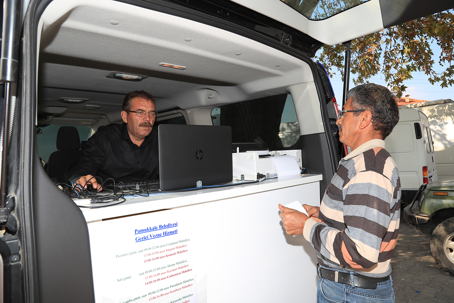 Pamukkale Belediyesi’nin vatandaş memnuniyeti yüksek uygulamalarından biri olan Gezici Vezne’de vergi ödemeleri noktasında, hafta içi her gün üç mahallede olacak. Pamukkale Belediyesi Gezici Vezne hizmeti, Pazartesi günü saat 09.00-12.00 arası Uzunpınar Mahallesi’nde, saat 13.00-15.00 arası Irlıganlı Mahallesi’nde, saat 15.00-16.00 arası Korucuk Mahallesi’nde; Salı günü saat 09.00-12.00 arası Aktepe Mahallesi’nde, saat 13.00-14.00 Karakurt Mahallesi’nde, saat 14.00-16.00 arası Cankurtaran Mahallesi’nde; Çarşamba günü saat 09.00-12.00 arası Pamukkale Mahallesi’nde, saat 13.00-16.00 arası Karahayıt Mahallesi’nde; Perşembe günü saat 09.00-11.00 arası Karşıyaka Mahallesi’nde, saat 11.00-12.00 arası Akhan Mahallesi’nde, saat 13.00-16.00 arası Pınarkent Mahallesi’nde; Cuma günü saat 09.00-12.00 arası Akköy Mahallesi’nde, saat 13.00-16.00 arası Anafartalar Mahallesi’nde hizmet verecek.