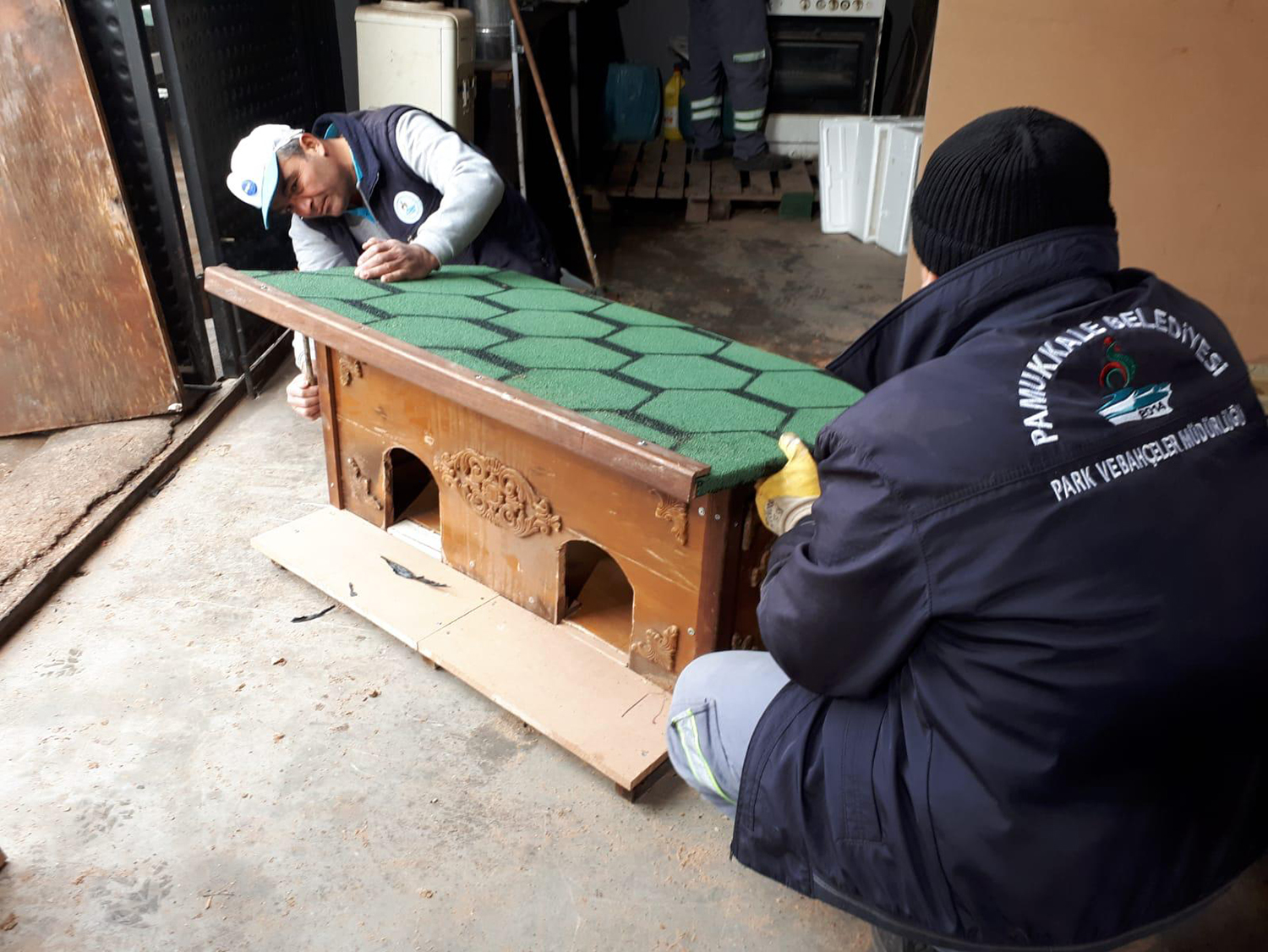 Pamukkale Belediyesi ilçe halkının hayatını kolaylaştıracak, ilçe huzurunun devamı için çalışmalar yaparken, ilçedeki diğer canlıları da unutmuyor, sokak hayvanlarını kış gününde yalnız bırakmıyor. Pamukkale’de, Temizlik İşleri Müdürlüğü ekipleri tarafından toplanan ahşap atıklar Park Bahçeler Müdürlüğü ekiplerince kedi evine dönüştürülüyor. Pamukkale Belediye Başkanı Avni Örki, atıkların işlenerek kediler için sıcak yuva olduğunu söyleyerek, “Pamukkale Belediyesi olarak, sokak hayvanlarımız için elimizden gelen tüm gayreti gösteriyoruz” dedi.
