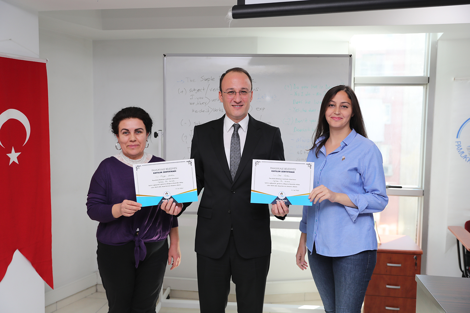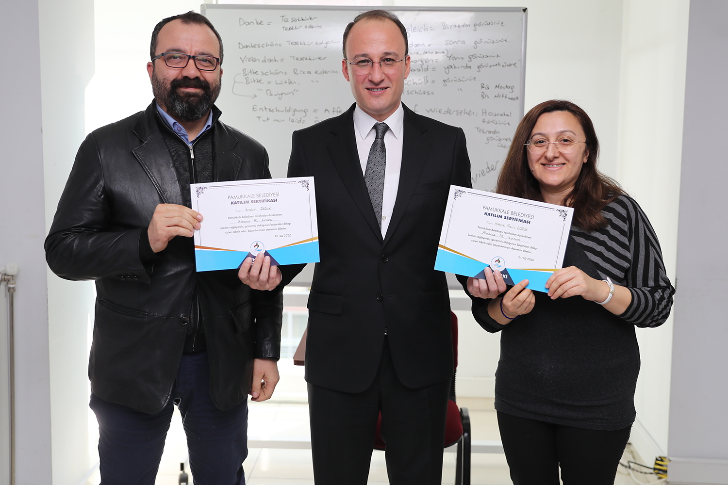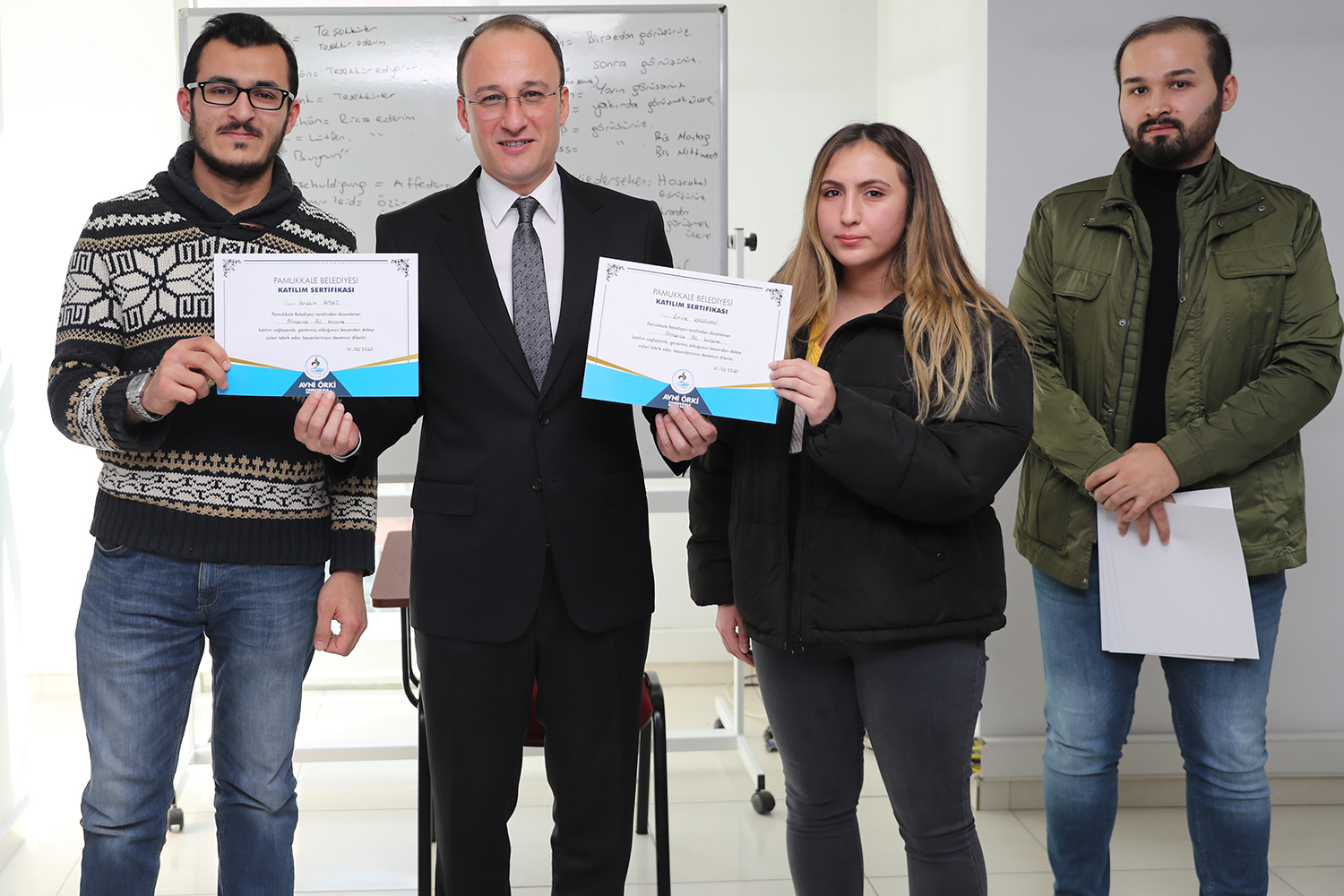 “Pamukkale Kurs Zamanı”nın ilk etabında açılan İngilizce ve Almanca A1 başlangıç seviyesindeki yabancı dil kursları sona erdi. Pamukkale Belediyesi’nin Atatürk Caddesi’ndeki ek hizmet binasında 2 ay süren kursa katılan gençlere 120 saat kurs verildi. Kasım ayı başında başlayan öğrencilere ve yetişkinlere yönelik açılan yabancı dil kurslarından İngilizce bölümüne 40 kişi, Almanca kursuna da 15 kişi katıldı. Kurslara düzenli katılımın şart olduğu yabancı dil kurslarının sonunda toplamda 30 kursiyer İngilizce kursundan, 10 kursiyer de Almanca kursundan sertifika almaya hak kazandı.