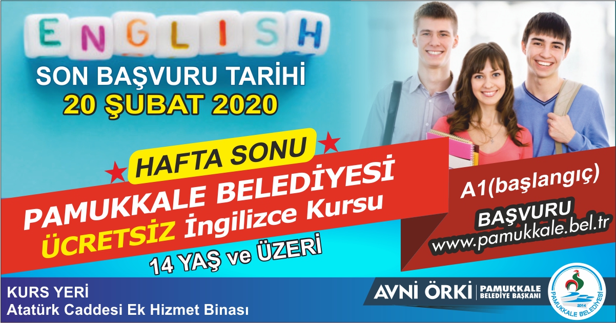 Pamukkale Belediye Başkanı Avni Örki, “Kendini yabancı dil konusunda geliştirmek isteyen vatandaşlarımızdan gelen yoğun talep üzerine kış dönemi için hafta içi açtığımız İngilizce kursunun hafta sonu etabını da açıyoruz. Hafta sonu açtığımız İngilizce kurslarımız A1 başlangıç seviyesinde olacak. Başvurular yine www.pamukkale.bel.tr adresi üzerinden yapılacak. 14 yaş üzeri tüm Denizlili hemşehrilerimize açık olan ücretsiz kurslarımıza kendini yabancı dil konusunda yetiştirmek, geliştirmek isteyen tüm vatandaşlarımızı bekliyoruz” dedi.