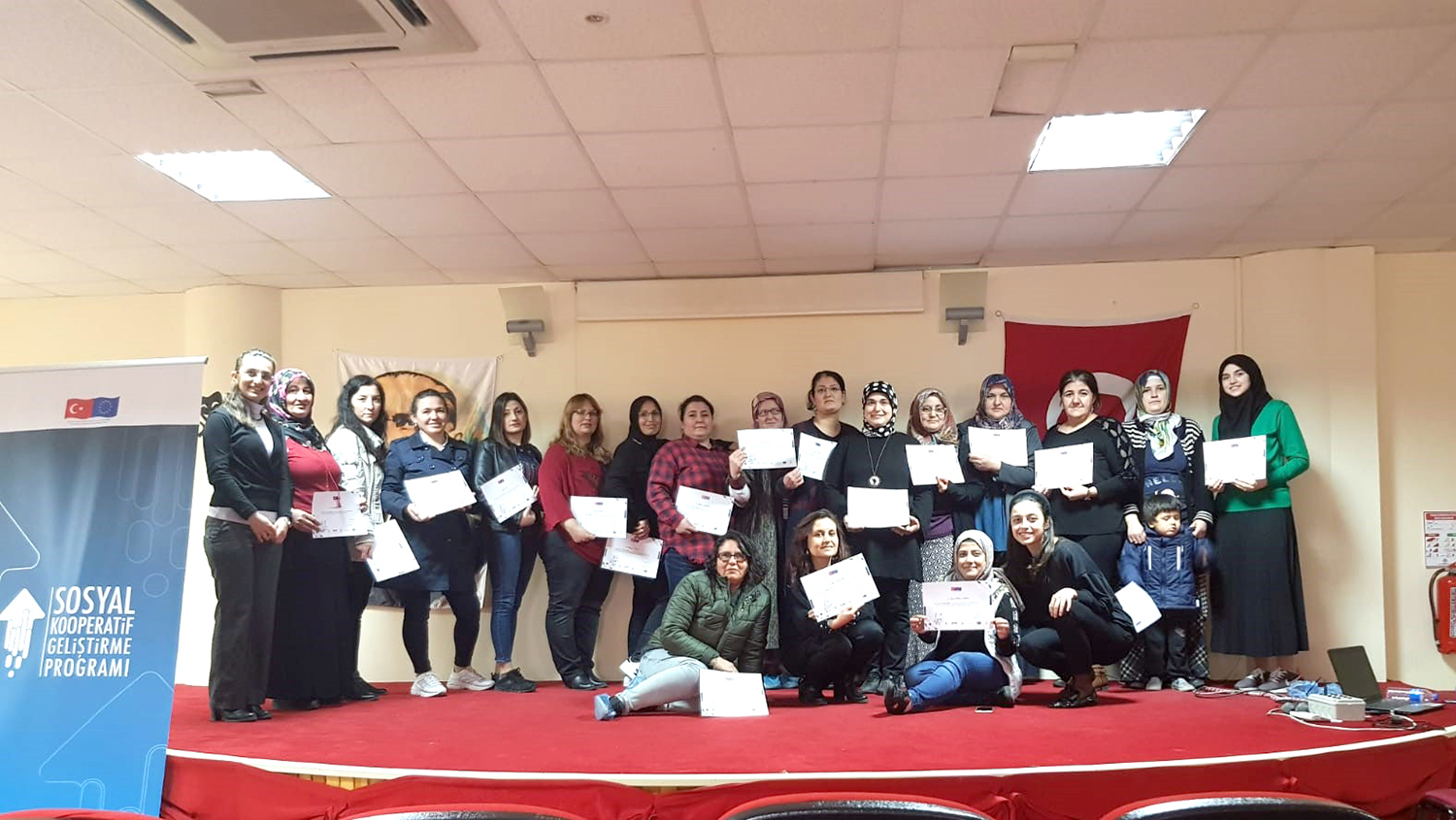 Pamukkale Belediyesi tarafından “Pamukkale’de Kurs Zamanı” sloganıyla 17 farklı alanda ücretsiz kurslar devam ediyor. Büyük ilgi gören bu kurslardan biri de kadınlara yönelik verilen Sosyal Kooperatifçilik Kursu oldu. “Pamukkale’de Kurs Zamanı” projesi kapsamında el sanatları kursu gören kadın kursiyerlere yönelik Sosyal Kooperatifçilik Kursu büyük ilgi gördü. Pamukkale Belediyesi’nce ilçenin farklı bölgelerinde açılan kurslarda çiçek yapımından, ahşap boyamaya, kokulu taştan cam boyamaya, ebru sanatından, dikiş-nakışa kadar el emeği göz nuru eserler ortaya çıktı. Katılımcıların bu ürünleri sosyal fayda sağlayacak şekilde değerlendirmeleri için, yol gösterici olmak amacıyla düzenlenen Sosyal Kooperatifçilik Kursu’nu başarıyla bitirenlere sertifikaları düzenlenen törenle verildi.