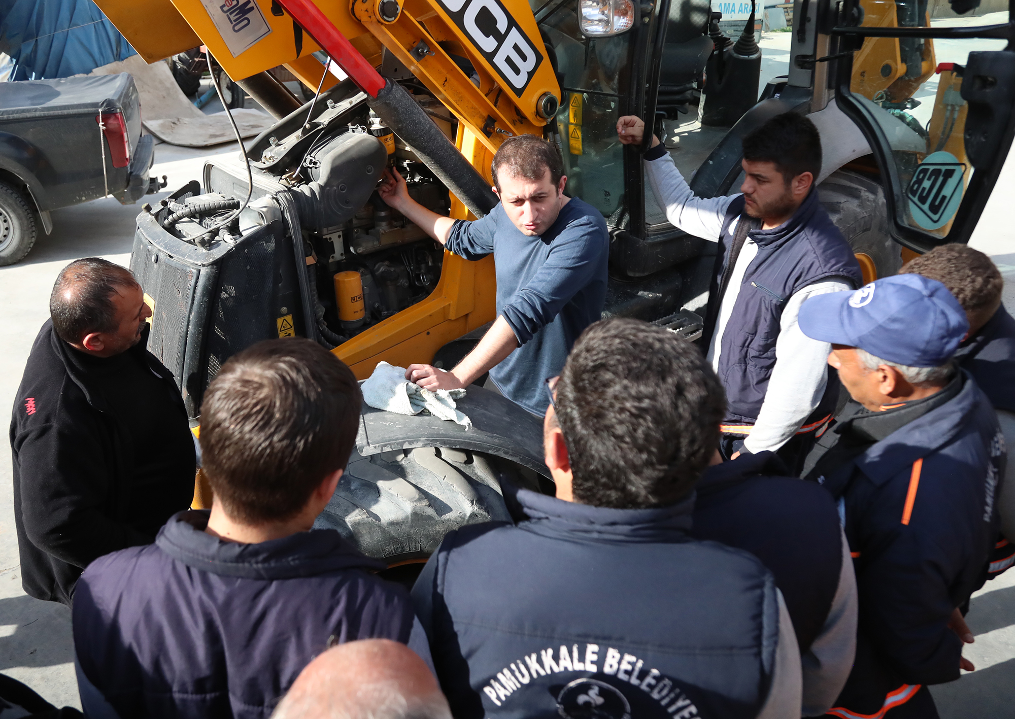 Pamukkale Belediyesi, eğitim konusunda önemli çalışmalara imza atmaya devam ediyor. İlçe genelinde yapılan çalışmalarda görev yapan Fen İşleri Müdürlüğü’ndeki ağır vasıta şoförleri ve iş makinesi operatörlerine güvenli kullanım, verimli kullanım ve bakım konularında eğitim verildi. Teorik ve pratik olmak üzere iki ayrı bölümde yapılan eğitimlerde CJB firmasının Bakım ve Eğitim Müdürü Eren Mengütay, personellere önemli bilgiler aktardı. Pamukkale Belediyesi Toplantı Salonu’ndaki teorik eğitimin ardından Deliktaş Ek Hizmet Binası’nda da araçların başında pratik eğitim verildi. Ağır vasıta şoförleri ve iş makinesi operatörleri belli aralıklarla bu eğitimlere katılarak makine kullanımı, bakımı, idaresi konusundaki bilgileri güncellemiş oluyor.