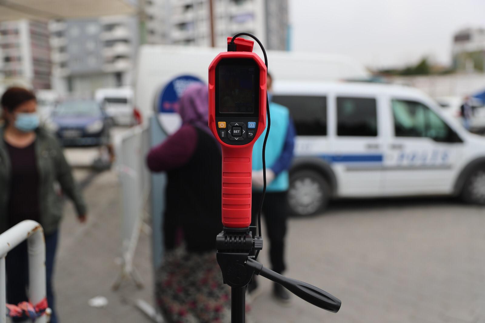 Koronavirüs ile mücadele konusunda aralıksız çalışmaya devam eden Pamukkale Belediyesi, halkın alış veriş için kullandığı pazar yerlerinin girişine ısı ölçerli kamera yerleştirdi. 37.5 dereceden yüksek ateşi olanların tespit edilmesini sağlayan termal kameralar, tüm pazar yerlerinde kullanılmaya başlandı. Pamukkale Belediye Başkanı Avni Örki, halkın koronavirüs ile ilgili verdiği mücadeleye destek verdiklerini söyleyerek, “Bu mücadelede halkımızın yanındayız. Pazar yerlerine ateşi yüksek olan vatandaşlarımızın girmemesi için bu önemli uygulamayı başlattık” dedi.