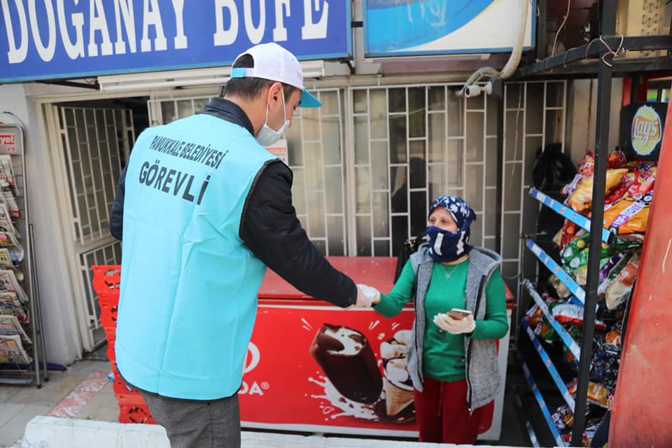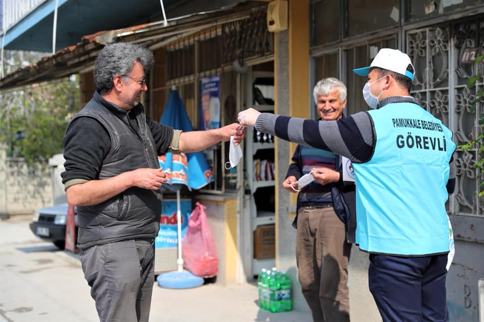Pamukkale Belediye Başkanı Avni Örki, koronavirüs ile mücadelede en önemli önlemin evde kalmak olduğunu söyleyerek, “Ancak mecburen dışarıya çıkmak durumunda olanlar var. Pazar yerlerinde esnaflarımıza ve maskesi olmayan vatandaşlarımıza ücretsiz maske dağıtımına devam ediyoruz. Bu uygulamamız her gün farklı mahallelerde açılan pazarlarımızda sürecek. Bunun yanında çalışmalarına devam eden esnaflarımız ile dışarı çıkmak zorunda kalan ve maskesi olmayan vatandaşlarımızı da unutmadık. Kısa zaman içinde ilçe genelinde dağıttığımız maske sayısı 200 bin oldu. Önemli olan vatandaşlarımızın sağlığı ve bunun için gece gündüz demeden çalışmaya devam ediyoruz” dedi. Öte yandan bundan sonraki maske dağıtımı ile ilgili olarak Cumhurbaşkanlığı’nın yönlendirmesi ile çalışmalar devam edecek.
