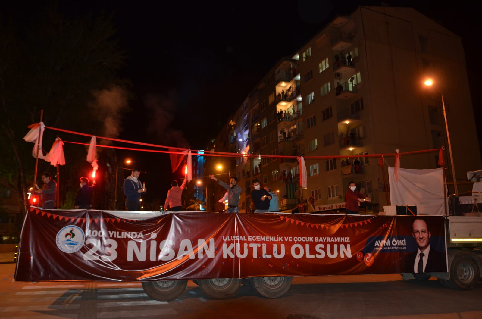 Bu yıl koronavirüs önlemleri çerçevesinde evlerde kutlanan 23 Nisan Ulusal Egemenlik ve Çocuk Bayramı Pamukkale’de çok farklı yaşandı. Pamukkale Belediyesi, 8 adet tırı süsleyip animasyon ekibi ve ses sistemi ile donattı. Bu tırları 61 mahalleye götürerek ilçe genelinde 23 Nisan Ulusal Egemenlik ve Çocuk Bayramı’nın coşkusunu hem çocuklara hem de vatandaşlara yaşattı. Gün boyu bayramı evde kalmak zorunda olan çocuklara doyasıya yaşatan Pamukkale Belediyesi, tüm ülkede olduğu gibi ilçede de saat 21.00’de İstiklal Marşı’nın okunması için de organizasyon düzenledi.