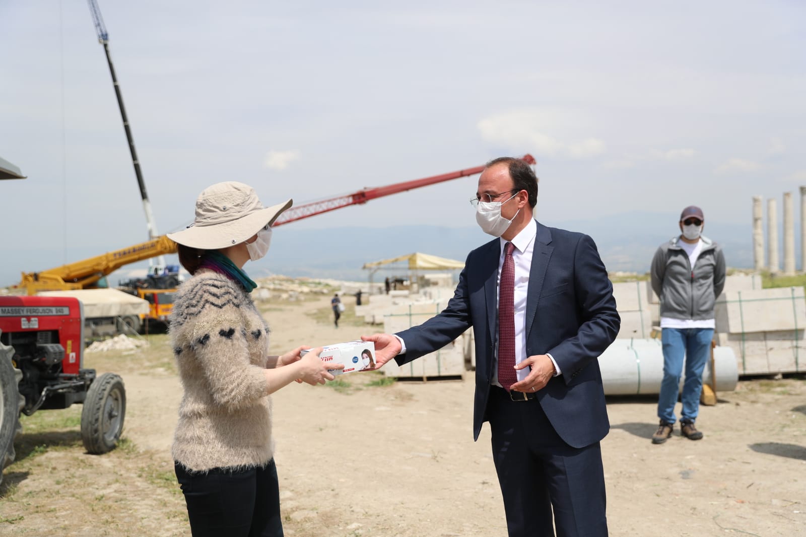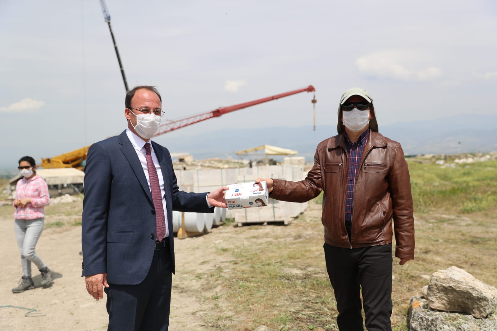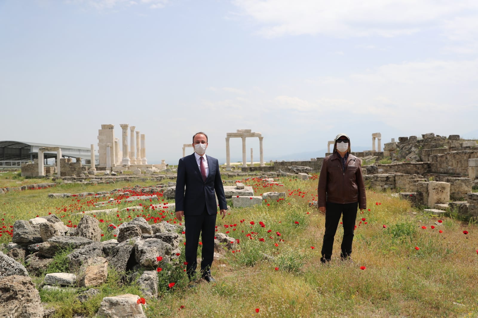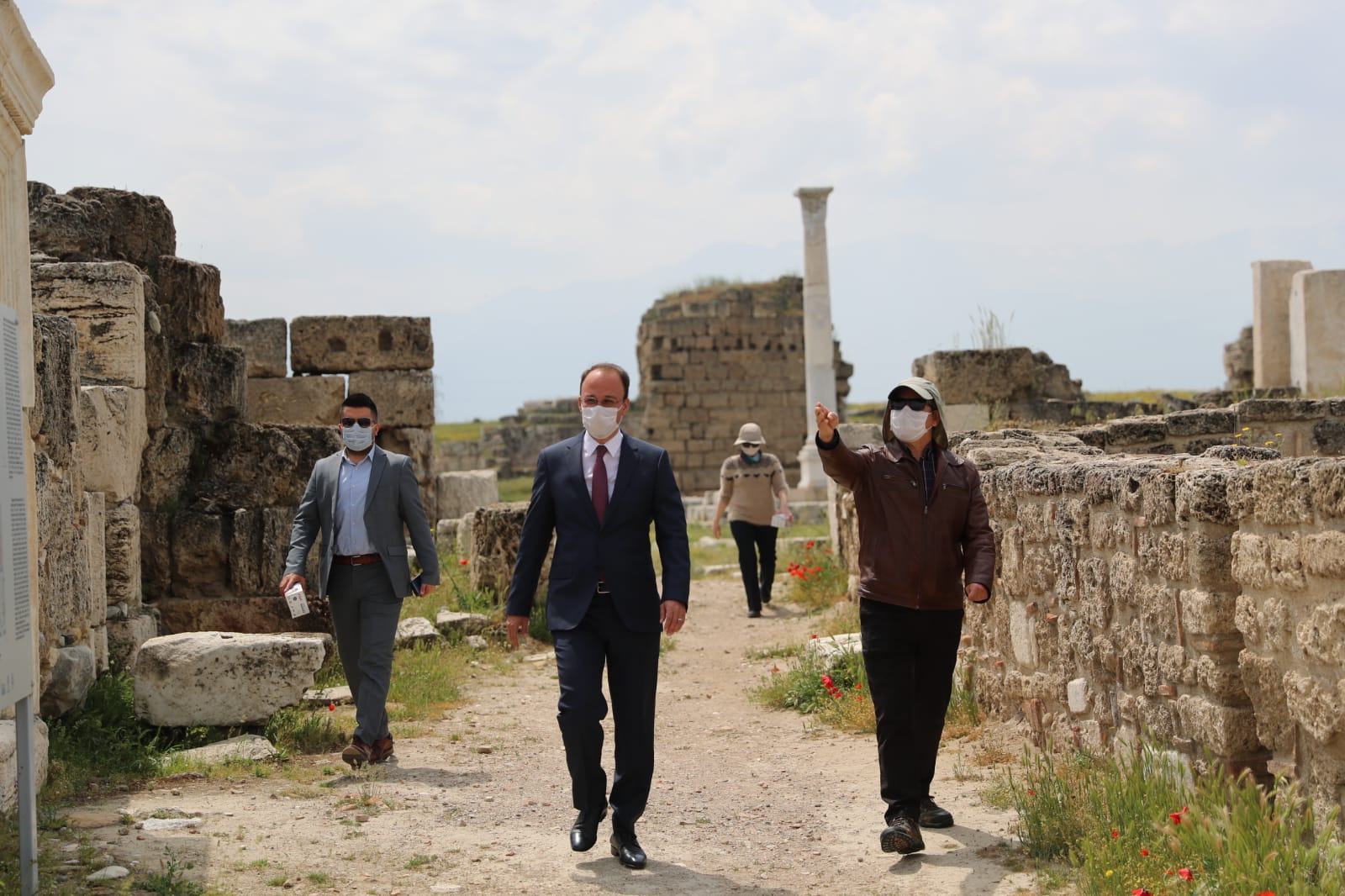 Denizli turizminin önemli noktalarından biri olan ve 15 yıldır gün yüzüne çıkarma çalışmaları yoğun bir şekilde devam eden Laodikeia Antik Kenti’ni ziyaret eden Pamukkale Belediye Başkanı Avni Örki, kazı çalışmalarını yerinde inceledi ve burada çalışanlar için maske temin etti.