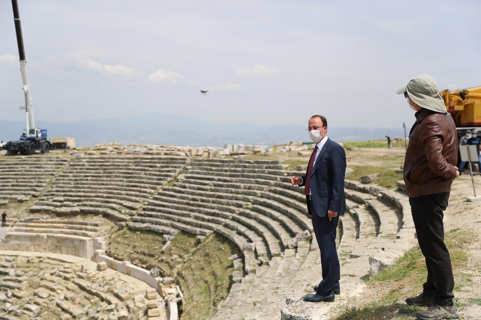 Pamukkale Belediye Başkanı Avni Örki ise Laodikeia Antik Kenti’ndeki çalışmalarını koronavirüsün engellemediğini söyleyerek, “Burada Prof. Dr. Celal Şimşek hocamızı, diğer profesörlerimiz ve öğretim üyesi olan profesyonel iş insanlarımızı, yine aynı zamanda çalışan kardeşlerimizi ziyaret ettik. Bu arkadaşlarımız mesafe kurallarına uyarak bu sıcağın altında çalışmalarını sürdürüyorlar. Bugün bizler Laodikeia’nın bu mevsimdeki güzelliklerini bütün Denizlili hemşerilerimize hatta bütün ülkemize ve dünyaya bir kez daha yansıtmak ve duyurmak istedik. Buradaki uzman kadrolarla bu güzel coğrafyamızın içerisinde bulunan medeniyetleri beşiklik yapmış ev sahipliği yapmış olan Laodikeia’yı ayağa kaldırmaya çalışıyoruz. Burada 15 yıldır kazılar yapılıyor. Ancak benim kanaatimce bu 15 yıl içerisinde yerli ve milli imkanlarla yapılan bu kazılarda tahmin ediyorum 100 yıllık eser ortaya çıkarıldı. Bundan ötürü çalışan bütün herkese yürekten teşekkür ediyorum. İnşallah çok kısa bir süre içerisinde tiyatromuzda çalışmalar sonlanacak. 2021 yılının Mart ayında antik tiyatromuzun içerisinde bir çok farklı etkinliklere de ev sahipliği yapabiliriz. Pamukkale Belediyesi olarak turizmimizin biran evvel açılacağı o güzel günleri iple çekiyoruz. Hiç kimse umutsuz olmasın, herkes evinde sağlıkla kalmaya devam etsin. Böyle olsun ki ülkemiz steril bir şekilde bu süreci atlatmış olsun” dedi.