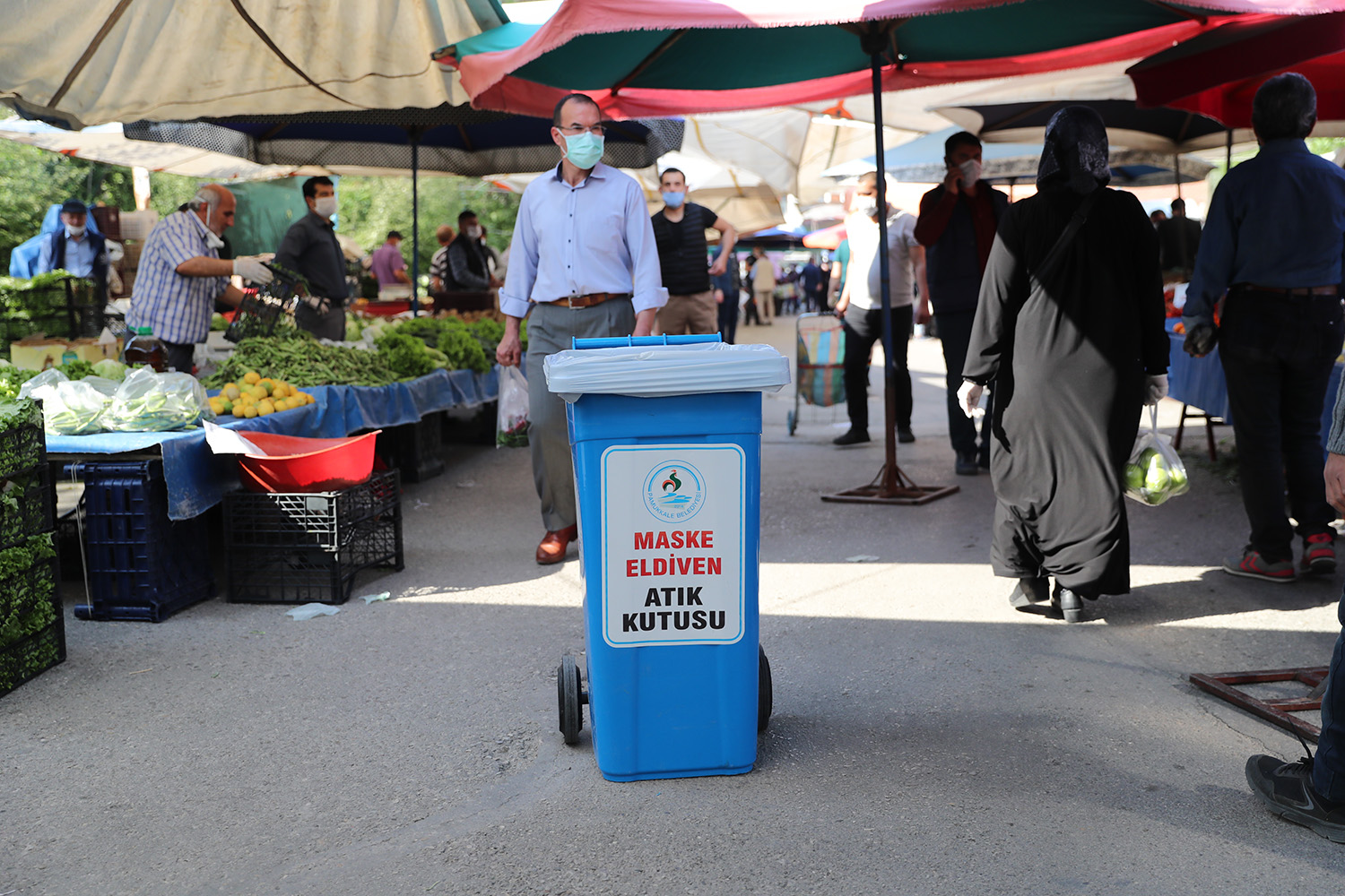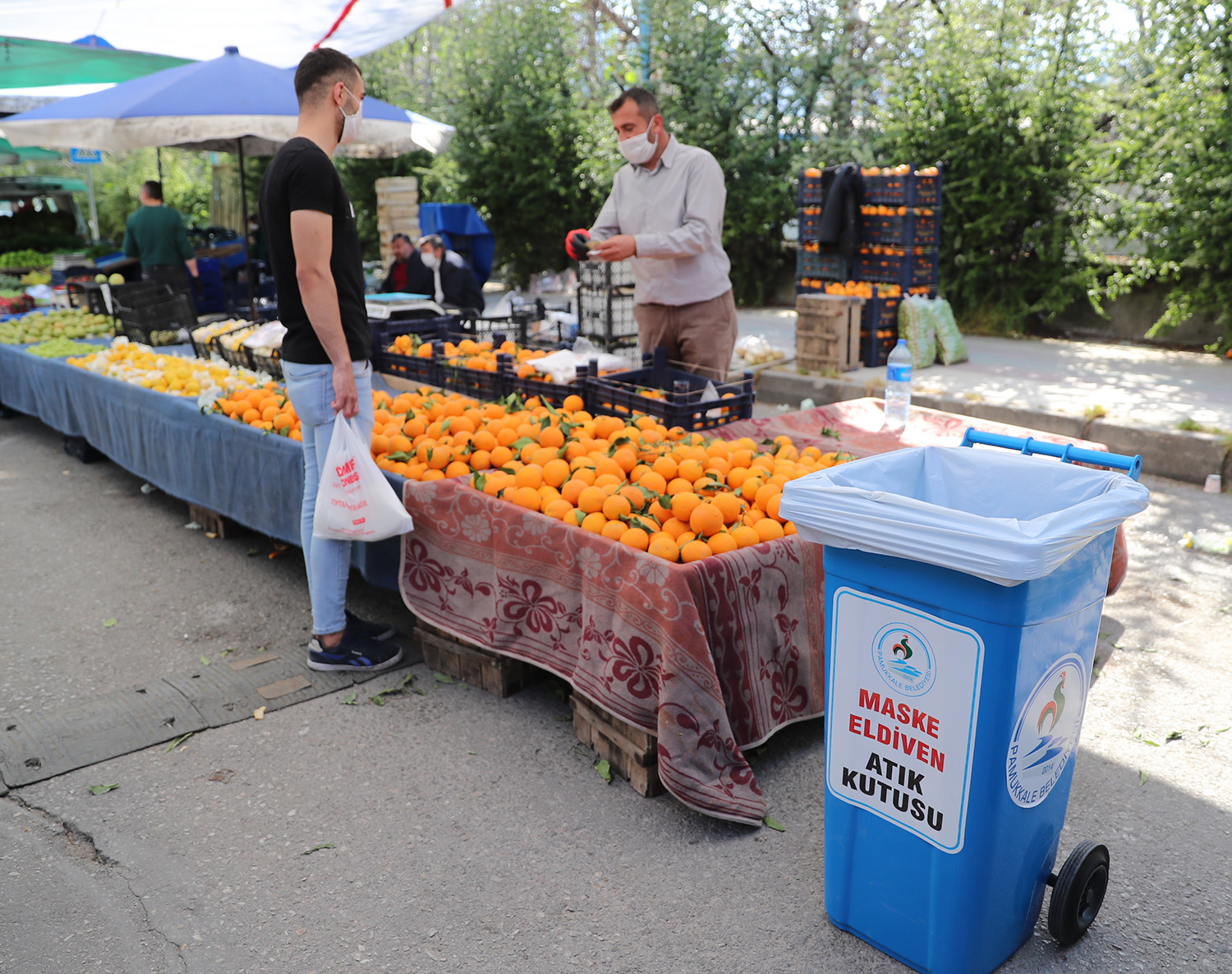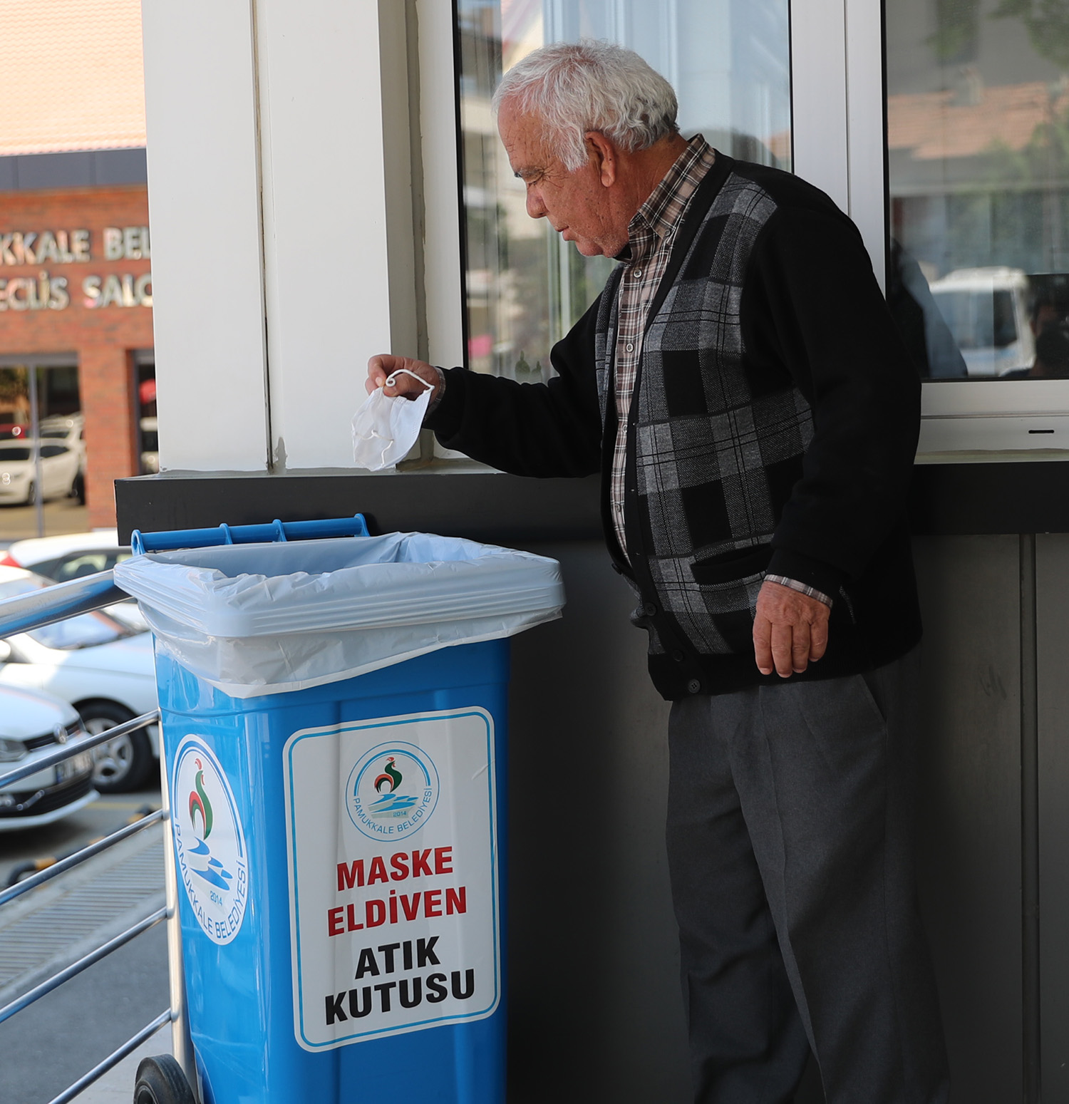 Pamukkale Belediyesi, koronavirüs salgını nedeniyle kullanımı artan maske ve eldivenlerin ayrı toplanması için özel atık kutuları pazaryerleri ve hizmet binalarında kullanıma sundu.