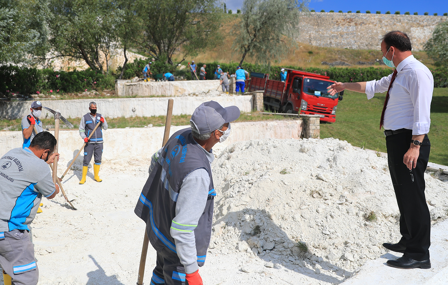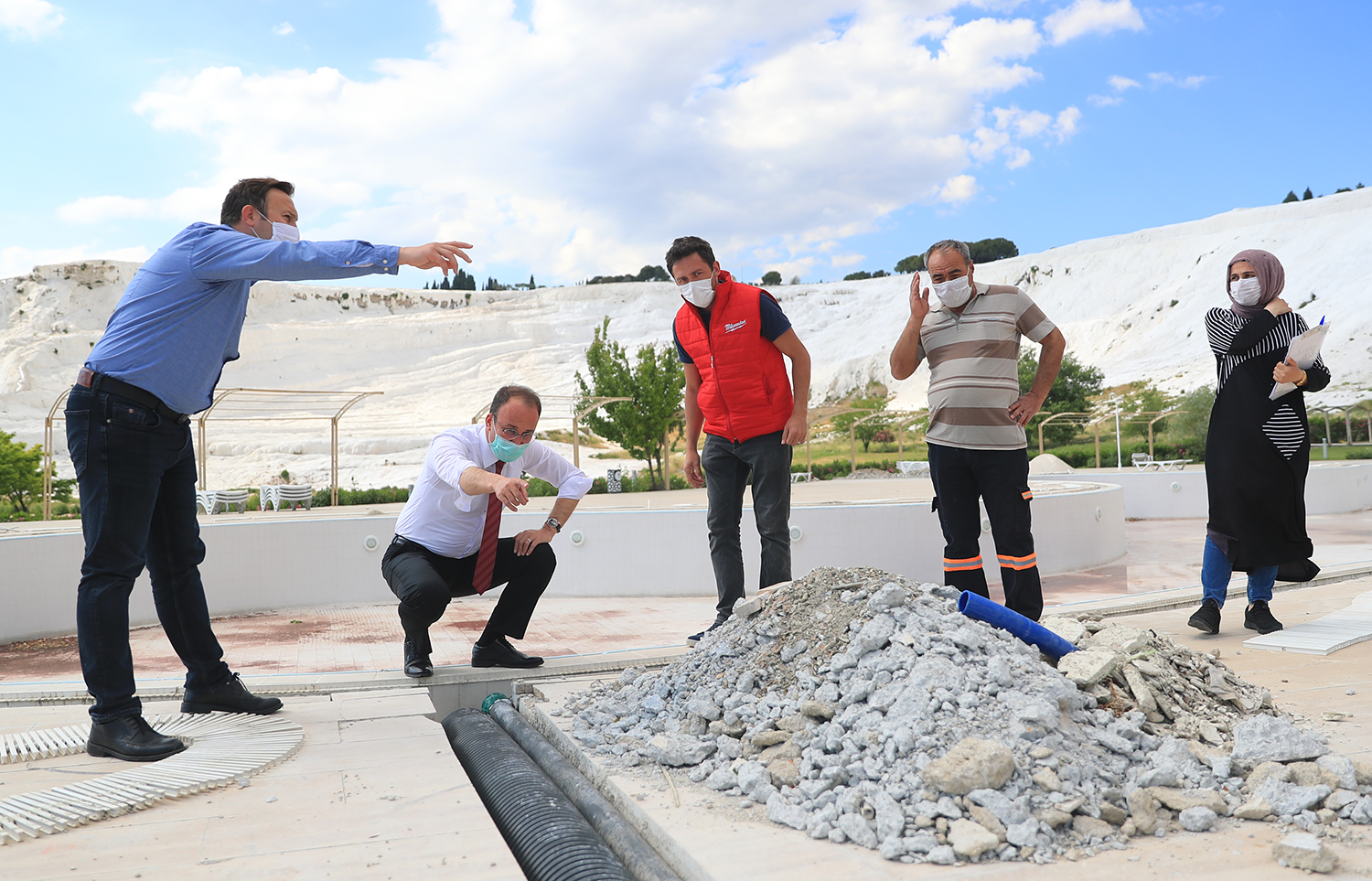 Pamukkale Belediye Başkanı Avni Örki, Kocaçukur’da çalışmaların hızlı bir şekilde gerçekleşeceğini ifade ederek, “Pamukkale travertenlerinin alt bölgesinde yer alan Kocaçukur’da 20 bin metrekareden daha fazla alana sahip gölet var. Bu gölette en son 2009 yılında temizlik çalışması yapılmış. Biz 2017 yılının Aralık ayından beri işletmesi Pamukkale Belediyesi’nde olan bu bölgede çalışma yapmak için Aydın Bölge Koruma Kurulu ve Tabiat Varlıkları Koruma Kurulu’ndan gerekli izinleri alarak çalışma başlattık. Yıllardır çalışma yapılmadığı için göletin zemininde çamurlar birikmiş. Bu ister istemez gerek sivrisinek gerekse diğer bakteriler konusunda rahatsızlıklar vermeye başladı. Aynı zamanda koku oluşmuş. Gerekli izinleri aldıktan sonra koronavirüs nedeniyle turizm sezonu kapalıyken çalışma başlattık. Burada yapılacak olan çalışma ile göleti eski doğal haline getirmeyi amaçlıyoruz. Göletin zemininden 400 kamyona yakın çamur çıkaracağız. Bu çalışmaları yaparken gölette bulunan ördekler, kazlar ve balıklar için geçici yaşam alanı oluşturuyoruz. Göletimizin ilk etabını temizledikten sonra suyu temiz alana verip ördeklerimizi, kazlarımızı ve balıklarımızı bu alana getireceğiz. Ayrıca antik havuzda bulunan suyu aynı sıcaklıkta travertenlerin eteğindeki havuzlara taşıyarak halkın antik havuzdaki suyla daha uygun bir şekilde buluşmasını sağlayacağız. Tek amacımız Pamukkale’nin daha güzel hale gelmesini sağlamak. Yapılacak olan çalışmaları en kısa sürede tamamlamayı hedefliyoruz” dedi.