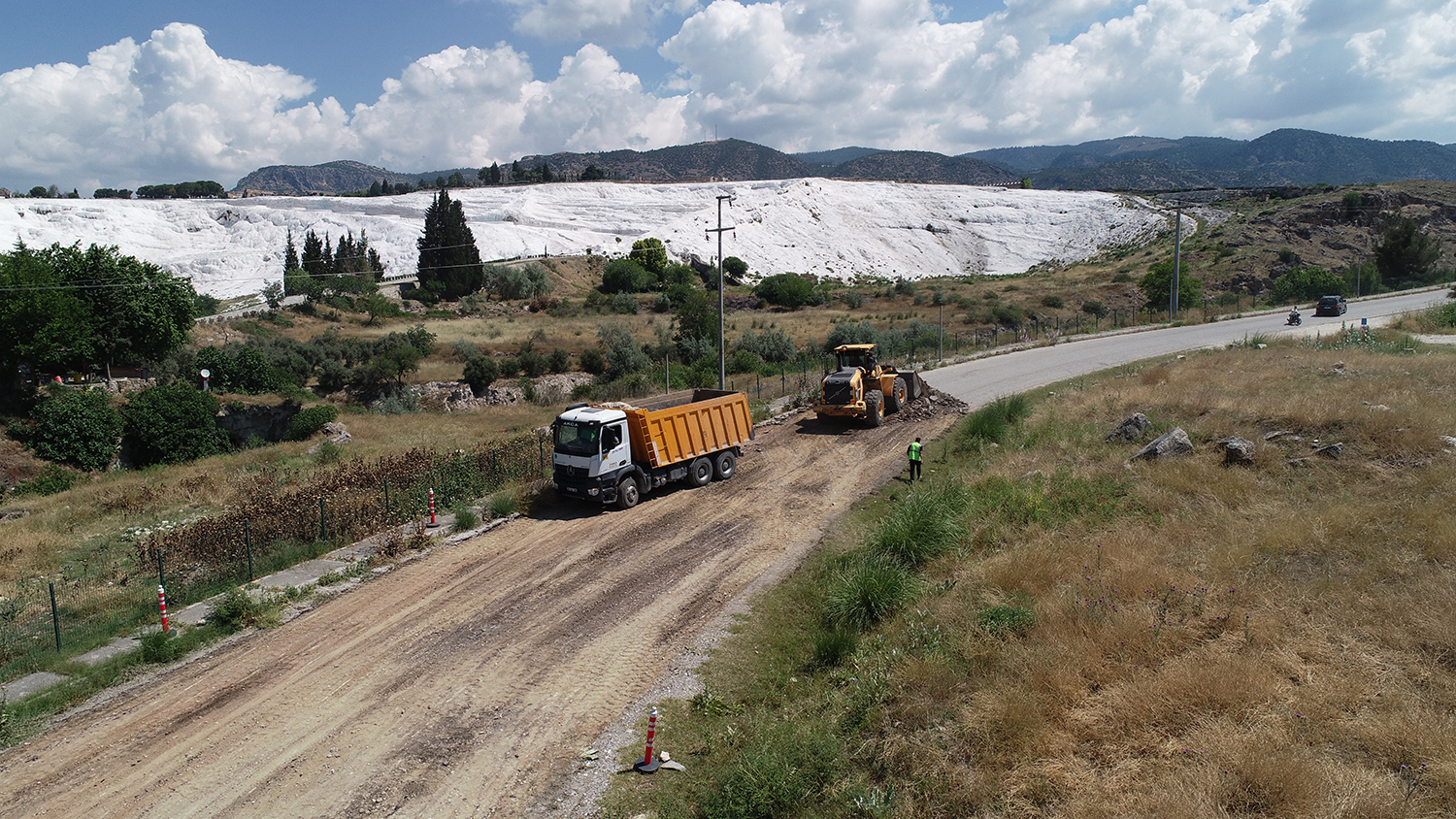 Pamukkale Belediye Başkanı Avni Örki, turizm yolu olarak bilinen ve yılda 2.5 milyon turistin Pamukkale ören yerine ulaşımını sağlayan bu yolun yıllardır yamalama ile kullanıldığını belirterek, “Bu yıl 1992 yılında açılmış. O zamandan bu yana gerekli oldukça yama yapılarak yol adeta yamalı bohça haline gelmiş. Biz Pamukkale Belediyesi olarak konuyla ilgili kalıcı bir çözüm bulmak istedik. Sit alanı olan bu bölge için gerekli izinleri aldık. Hemen çalışmalara başladık. Bir hafta içerisinde bu yolu tamamlamayı ve turizm sezonuna yeni haliyle yetiştirmeyi planlıyoruz. Bu yolda 3 bin ton asfalt kullanacağız ve kenarındaki kaldırımını, aydınlatma direkleri ile tamamen yenileyeceğiz. Biz ilçemiz için sevgi emek ve güvenle çalışmaya devam ediyoruz” dedi.