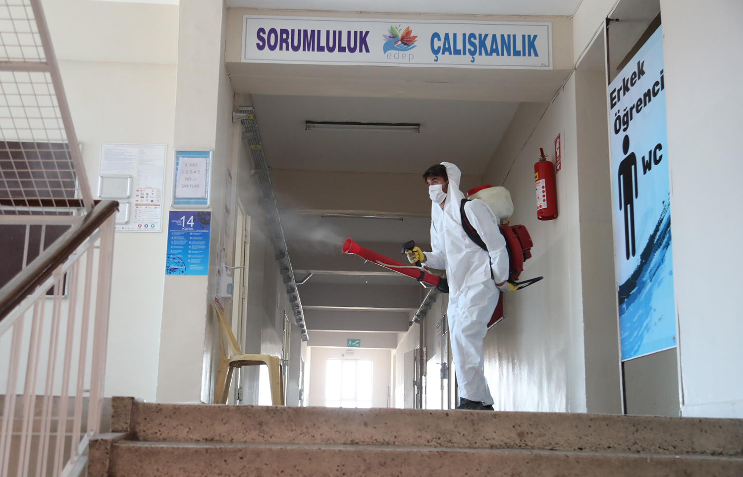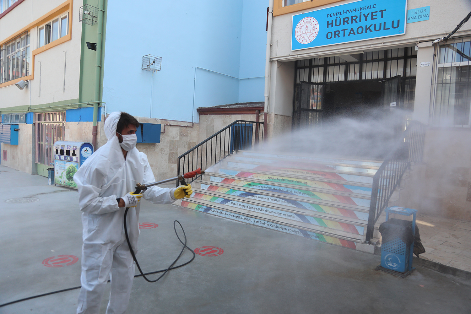 Bu hafta sonunda Yükseköğretim Kurumları Sınavı yapılacak. 27 Haziran 2020 tarihinde 2020-YKS 1. Oturum Temel Yeterlilik Testi (TYT), 28 Haziran 2020 tarihinde 2020-YKS 2. Oturum Alan Yeterlilik Testleri (AYT) ve 2020-YKS 3. Oturum Yabancı Dil Testi (YDT) sınavları gerçekleşecek. Bu sınavlar öncesi Pamukkale Belediyesi, sınavların yapılacağı okullar ve sınıfları koronavirüs önlemleri çerçevesinde dezenfekte etti. Geçen hafta sonundaki LGS sınavı öncesi olduğu gibi bu hafta da ekipler sınavın gerçekleşeceği 26 okulun koridorlarında ve sınıflarında dezenfeksiyon işlemi yaparak oturumun yapılacağı ortamlar steril hale getirildi.