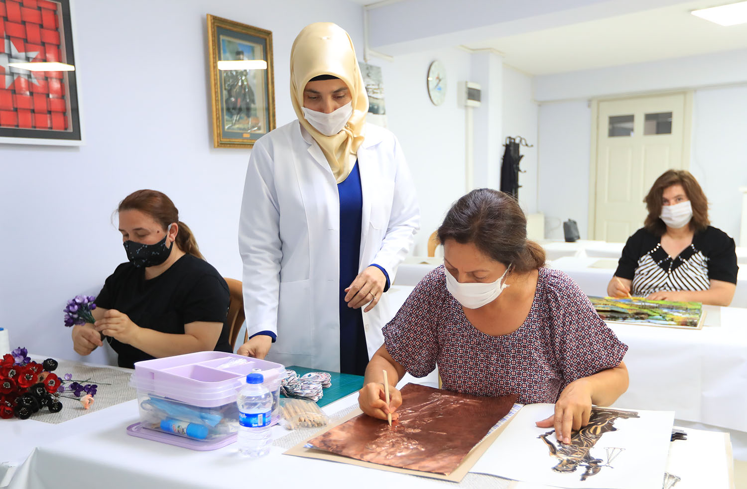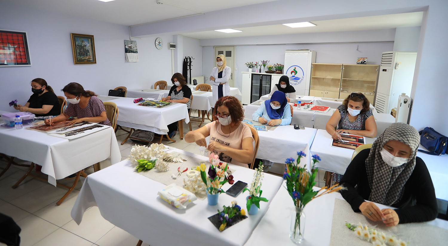 Sosyal Belediyecilikte önemli projelere imza atan Pamukkale Belediyesi’nin ücretsiz kursları devam ediyor. Dünyayı ve ülkemizi etkisi altına alan koronavirüs nedeniyle kış dönemi kurslarına zorunlu ara verilmişti. Pamukkale Belediyesi Kültür İşleri Müdürlüğü tarafından düzenlenen yaz dönemi kurslarına kayıtlar 30 Haziran tarihine kadar alınmıştı. 18 yaş üstü vatandaşların katıldığı ve koronavirüs çerçevesinde tüm tedbirlerin alındığı yaz dönemi kurslarında çalışmalar başladı. Kursların yapılacağı Pamukkale Belediyesi Atatürk Caddesi Ek Hizmet Binasında salonlar dezenfekte edilirken, kursiyerlerin sosyal mesafe kuralı, dezenfekte ve maske kurallarına uyması zorunlu tutuluyor. Ağustos ayı sonuna kadar devam edecek olan Pamukkale Belediyesi yaz Dönemi Kursları’nda katılımcılara İngilizce ve Almanca A1- A2, işaret dili, el sanatları, ipek kozasından çiçek yapımı, engelliler için el sanatları, ebru sanatı, halk oyunları konusunda eğitimler veriliyor. Yaklaşık 200 kişinin katıldığı kurslar hafta içi her gün gerçekleşiyor. Kurslar sonunda katılımcılara sertifikalar da verilecek.