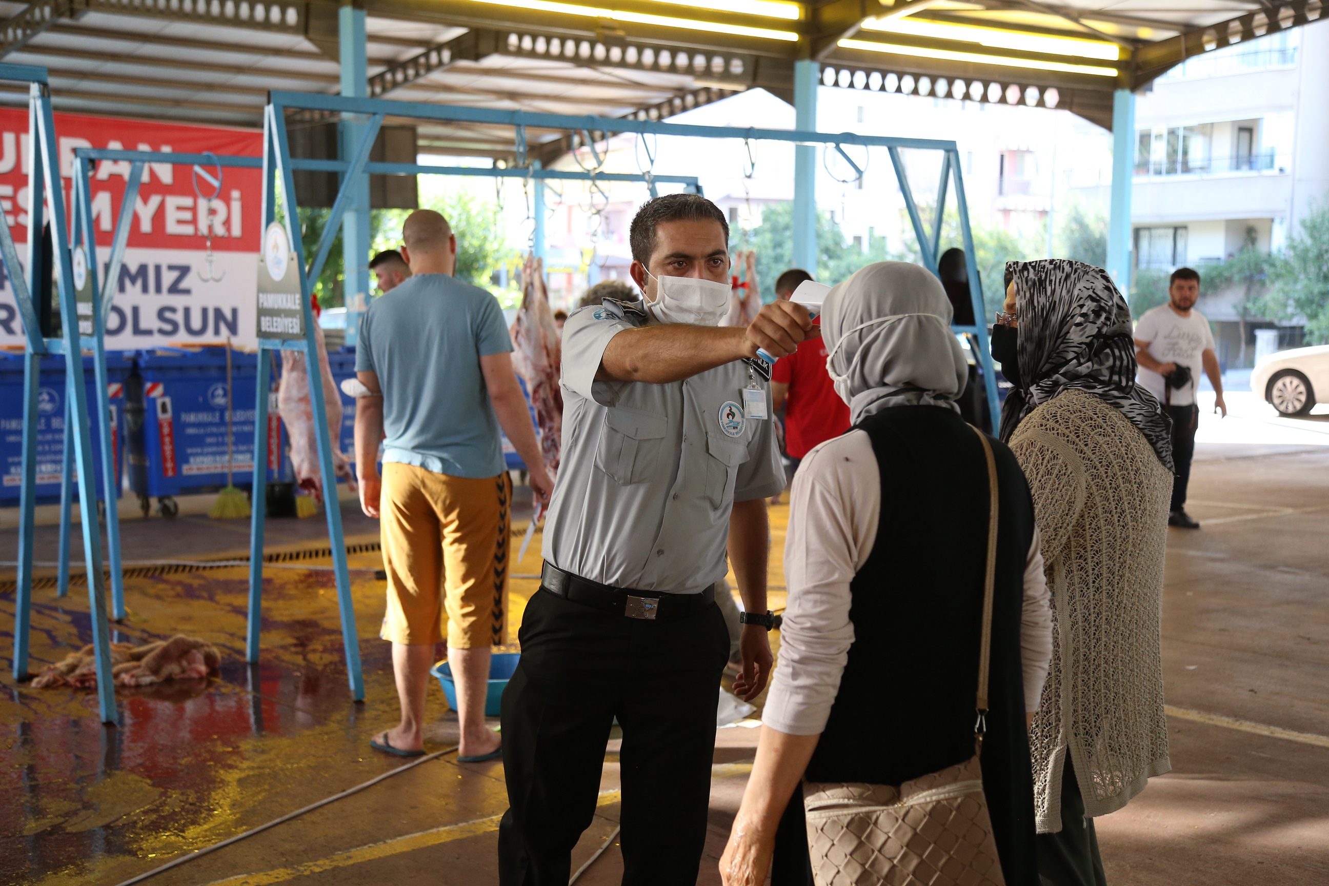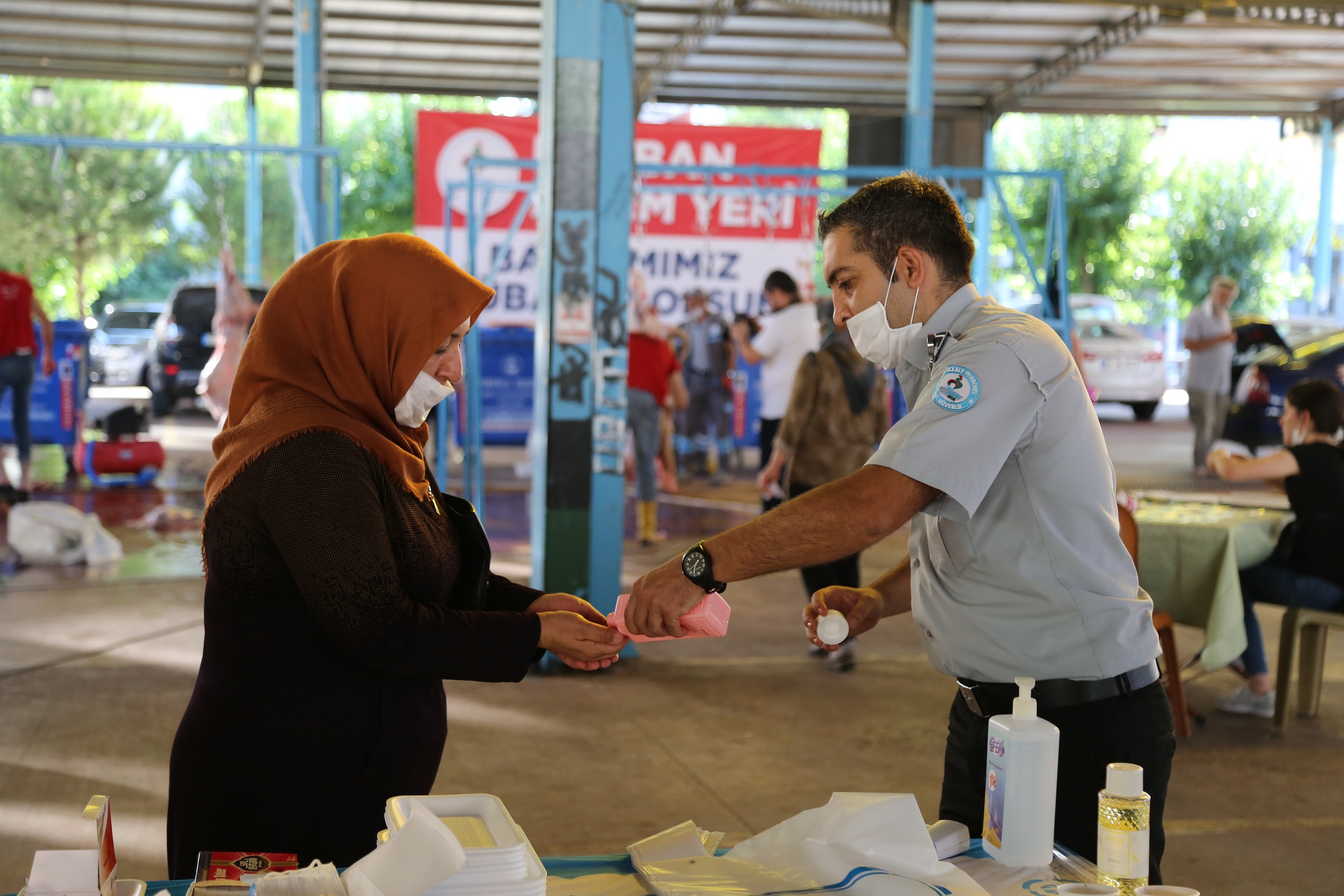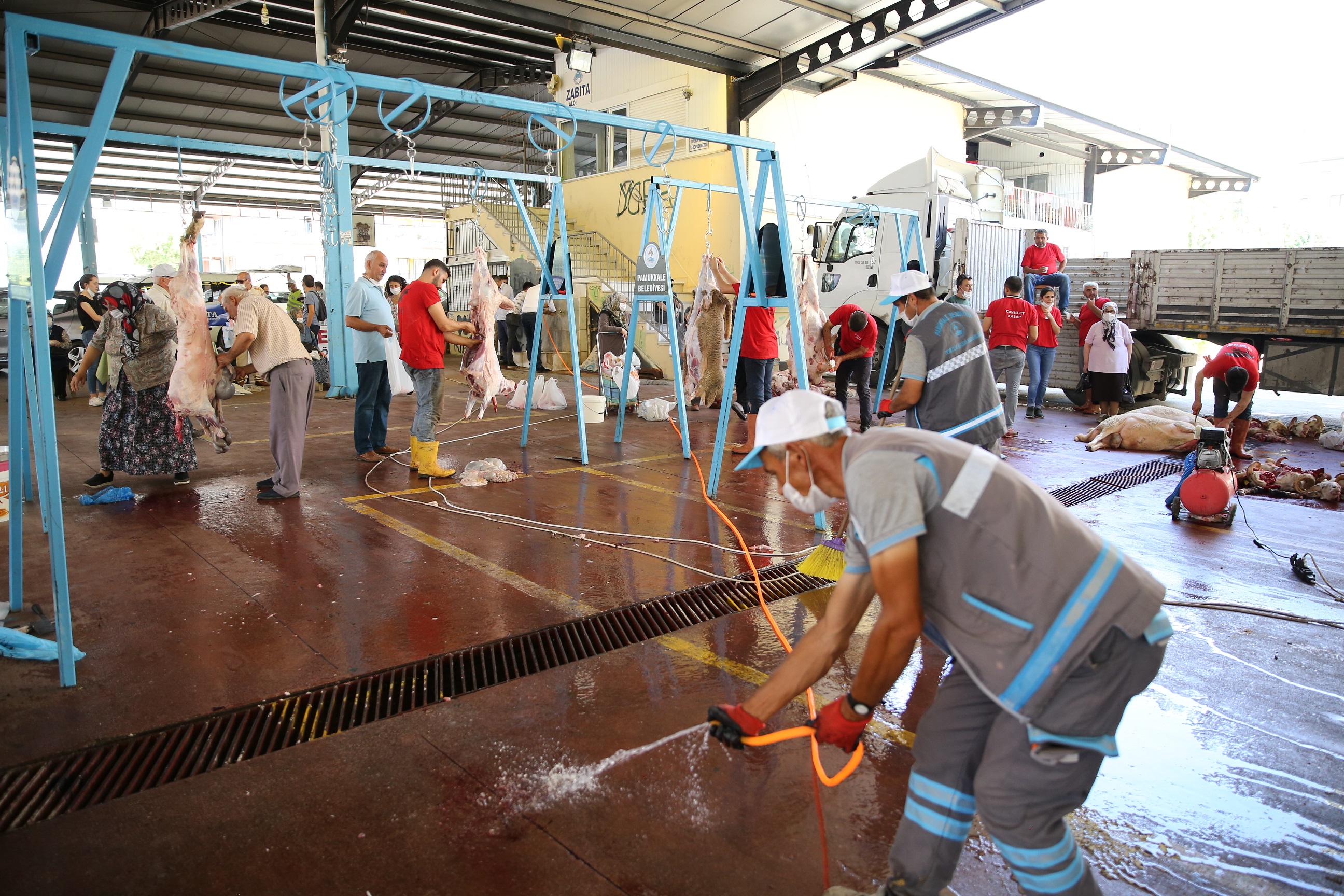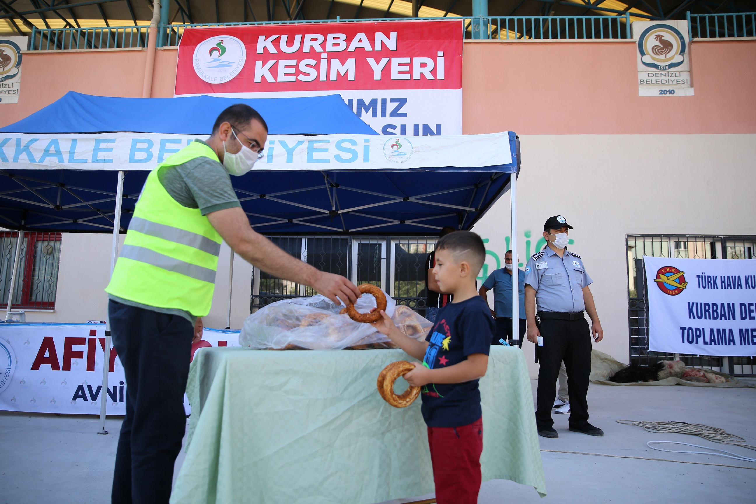 Sabahın erken saatlerinde başlayan kurban kesim ibadeti Pamukkale’de de yoğun geçiyor. İlçe genelinde küçükbaş hayvanlar Anafartalar, İncilipınar, Kuşpınar, Kınıklı kapalı pazar yerleri, eski hal alanı, Dokuzkavaklar Merkezefendi Kuran Kursu bahçesinde kesilirken, büyükbaş hayvanlar da Akhan Mahallesi Çayır Mevki Duranlar Mezbahanesinde kesiliyor. Pamukkale Belediye personeli vatandaşların kurban ibadetini sağlıklı ortamlarda yapabilmesi için tüm hazırlıkların yanında koronavirüs tedbirlerini de ihmal etmedi. Ekipler, kurban kesim alanlarına gelen her vatandaşın ateşini ölçerek, maskesiz gelenlere de maske ve dezenfektan dağıttı. Öte yandan kurban kesim alanlarında vatandaşlara çay, simit ikramında bulunan Pamukkale Belediyesi personeli, kurban kesimlerine de yardımcı oldu. Pamukkale Belediyesi Çağrı Merkezi’nin 444 9 220 nolu telefonuna ulaşan ve yardım isteyen vatandaşlara ekipler her türlü desteği veriyor. Özellikle yaşlı ve yalnız yaşayan Pamukkalelilerin kurbanlıklarını evlerinden alıp kesim noktalarına götüren ekipler, burada kurbanın kesimi ve parçalanmasına da yardım ediyor. İşlemleri tamamlanan vatandaşları ekipler yine evlerine kadar bırakıyor.