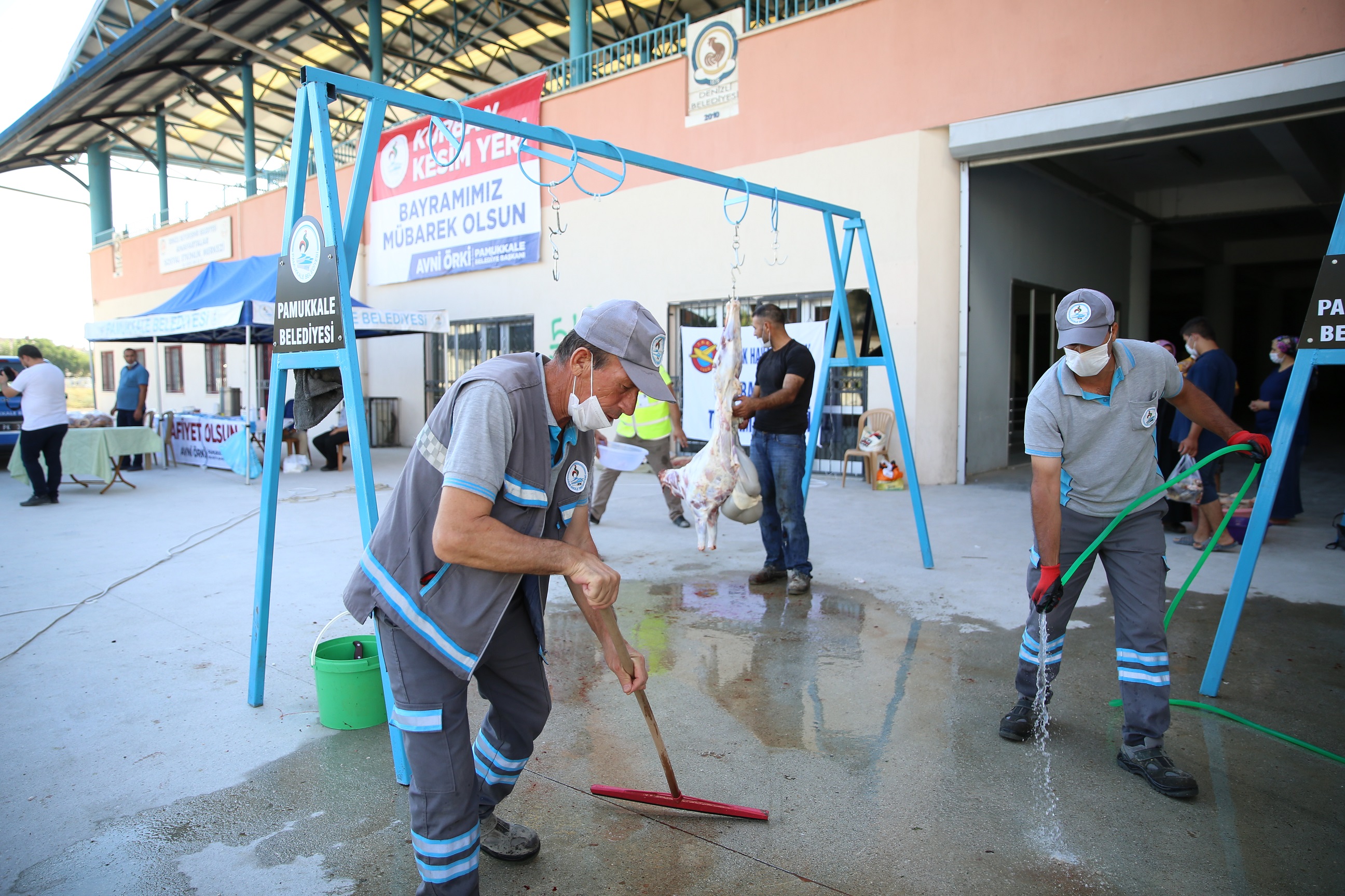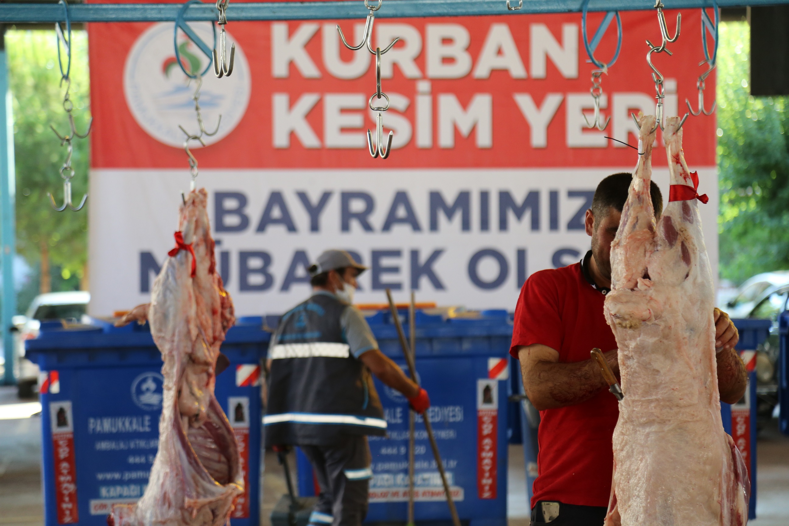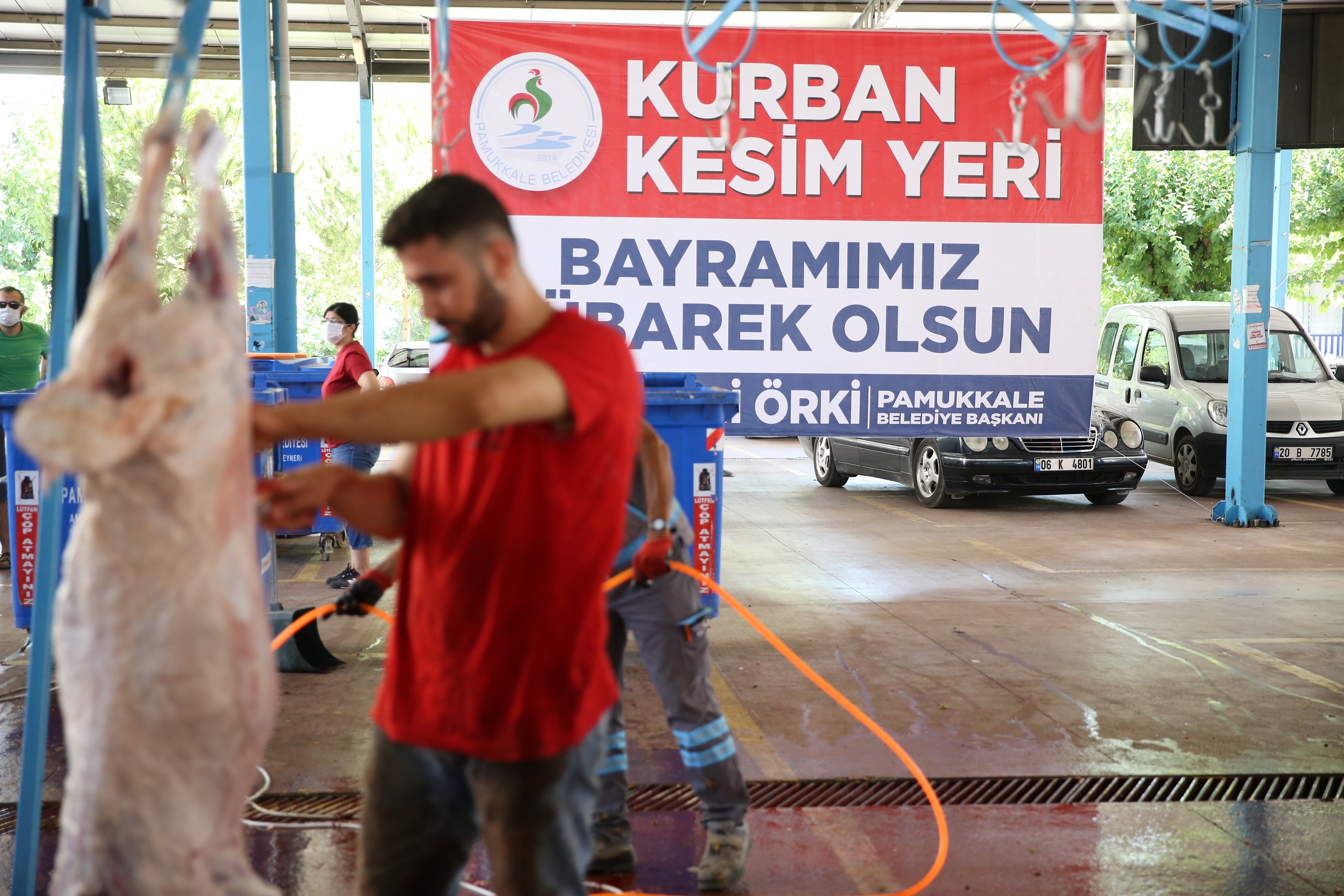 Pamukkale’de Kurban Bayramı dolu dolu geçiyor. Pamukkale ilçesinde belirlenen kurban kesim yerlerinde bulunan Pamukkale Belediyesi personelleri vatandaşların kurbanları kesilirken yardımcı oluyor. Pamukkale Belediye Başkanı Avni Örki, “Pamukkale Belediyesi olarak her zaman olduğu gibi Kurban Bayramı’nda da vatandaşlarımızın hizmetindeyiz” dedi.