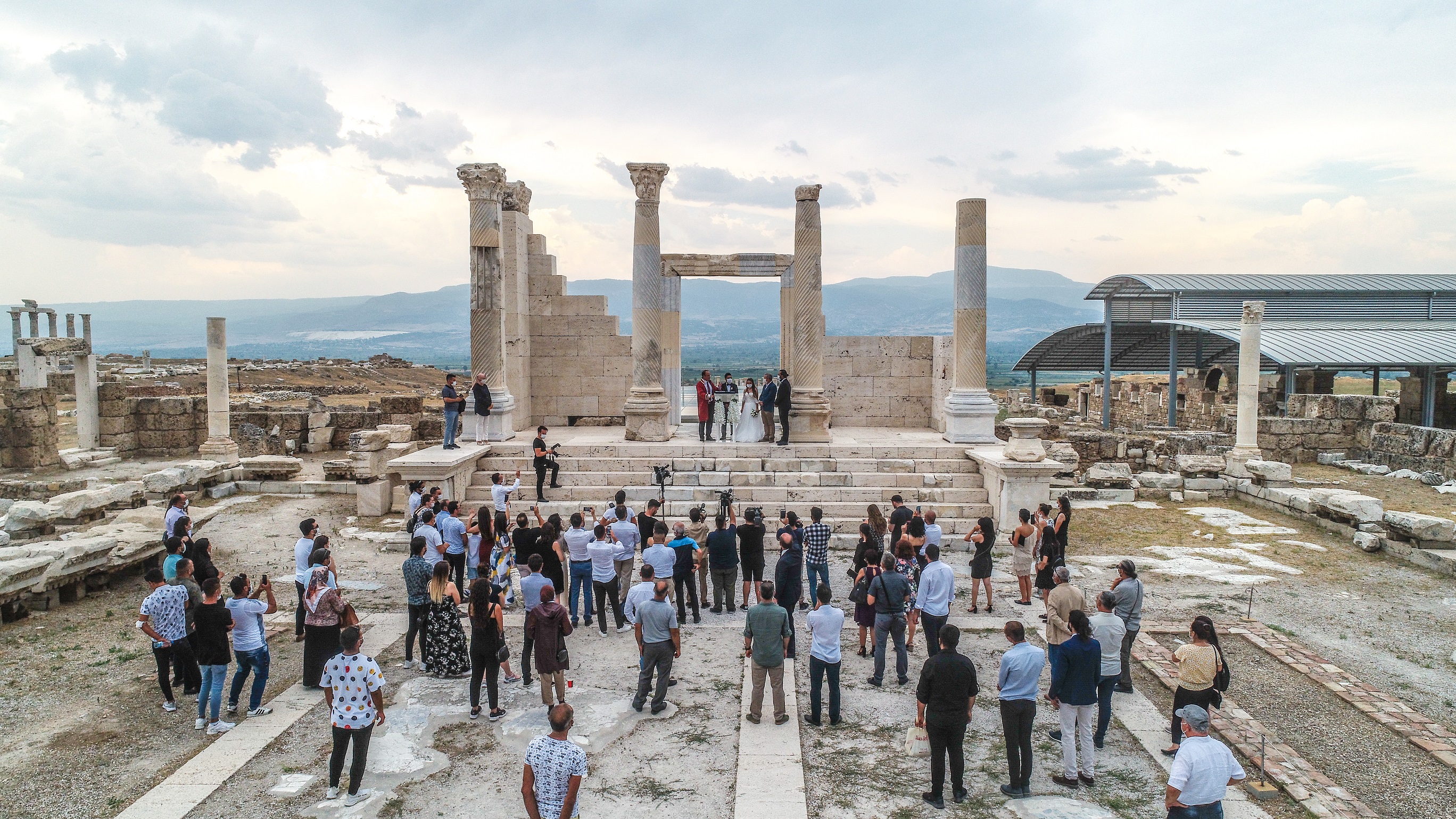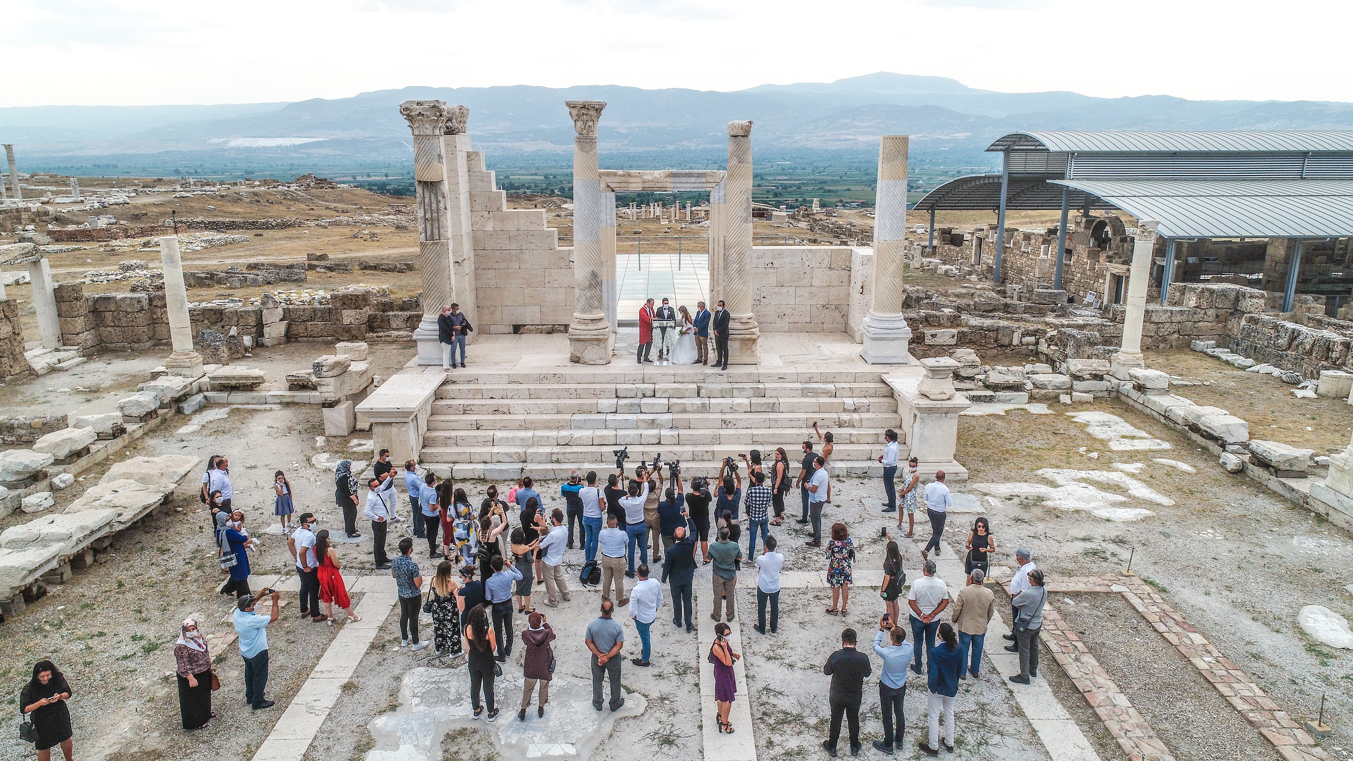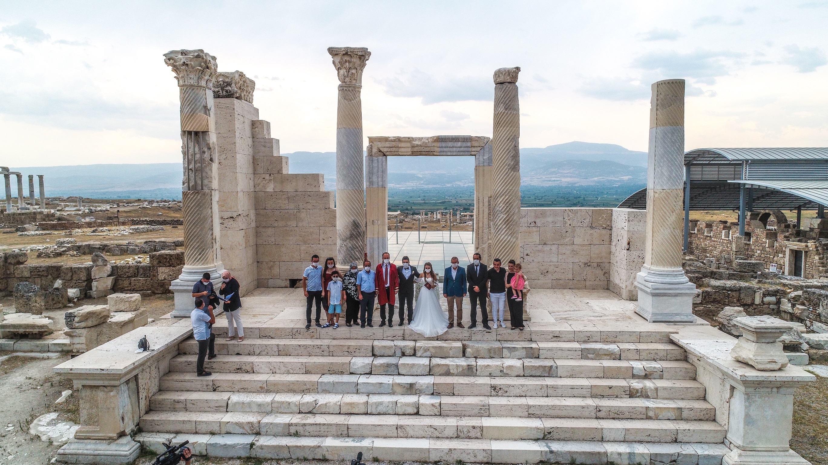 Evlenmek için Pamukkale Belediyesine başvuran Serap Tulumbacı ve Emin Ateş çifti nikahlarını Denizli’nin en büyük tarihi kenti olan Laodikeia’da kıymak istediler. Onların bu isteğine olumlu bakan Pamukkale Belediye Başkanı Avni Örki, bin 300 yıl sonra tarihte bir ilki gerçekleştirerek ikilinin nikah akdini Antik Kent Laodikeia’da kıydı. Aynı zamanda Laodikeia kazı ekibinden olan Arkeolog Emin Ateş ve Muğla Stratonikeia Antik Kenti kazı görevlisi olan Arkeolog Serap Tulumbacı çiftinin nikah şahitliğini Laodikeia Kazı heyetİ Başkanı Prof. Dr. Celal Şimşek ve Laodikeia kazı ekibinden Dr. Barış Yener yaptı.