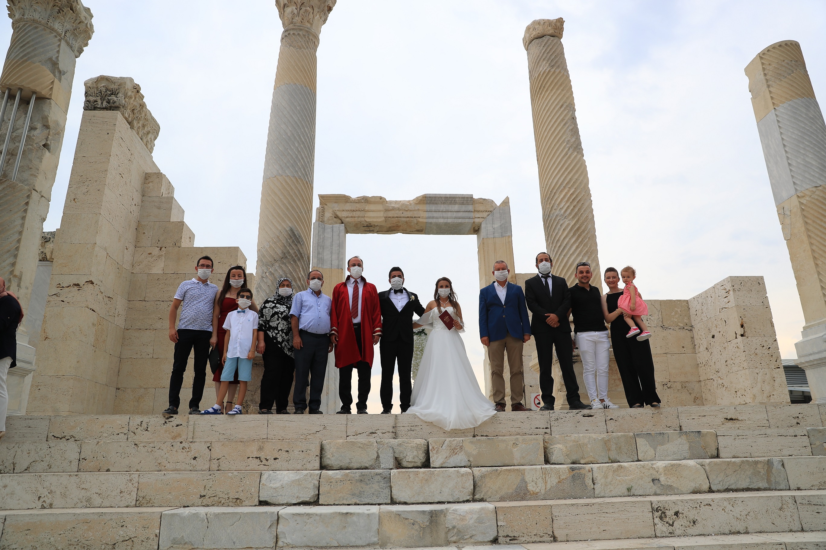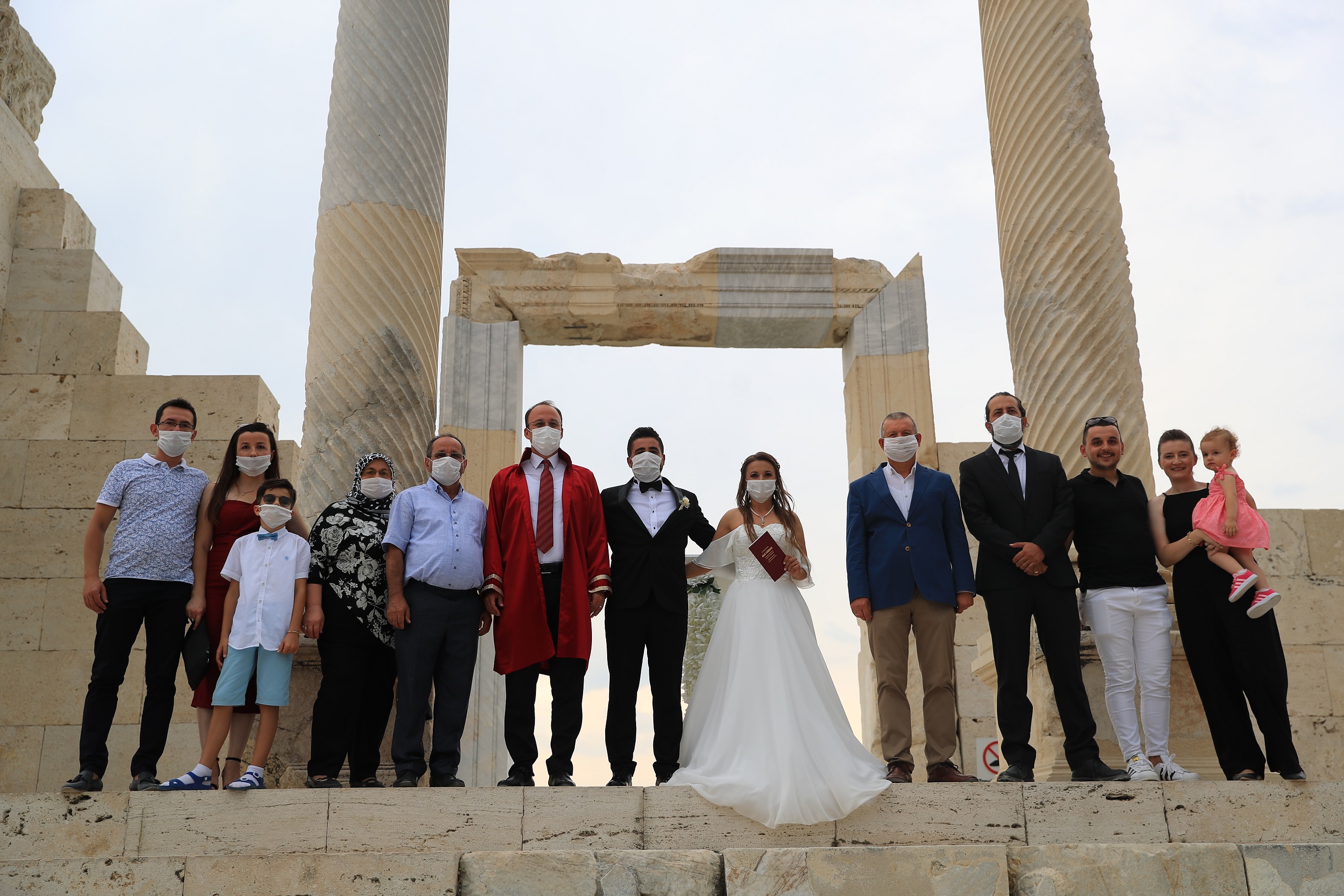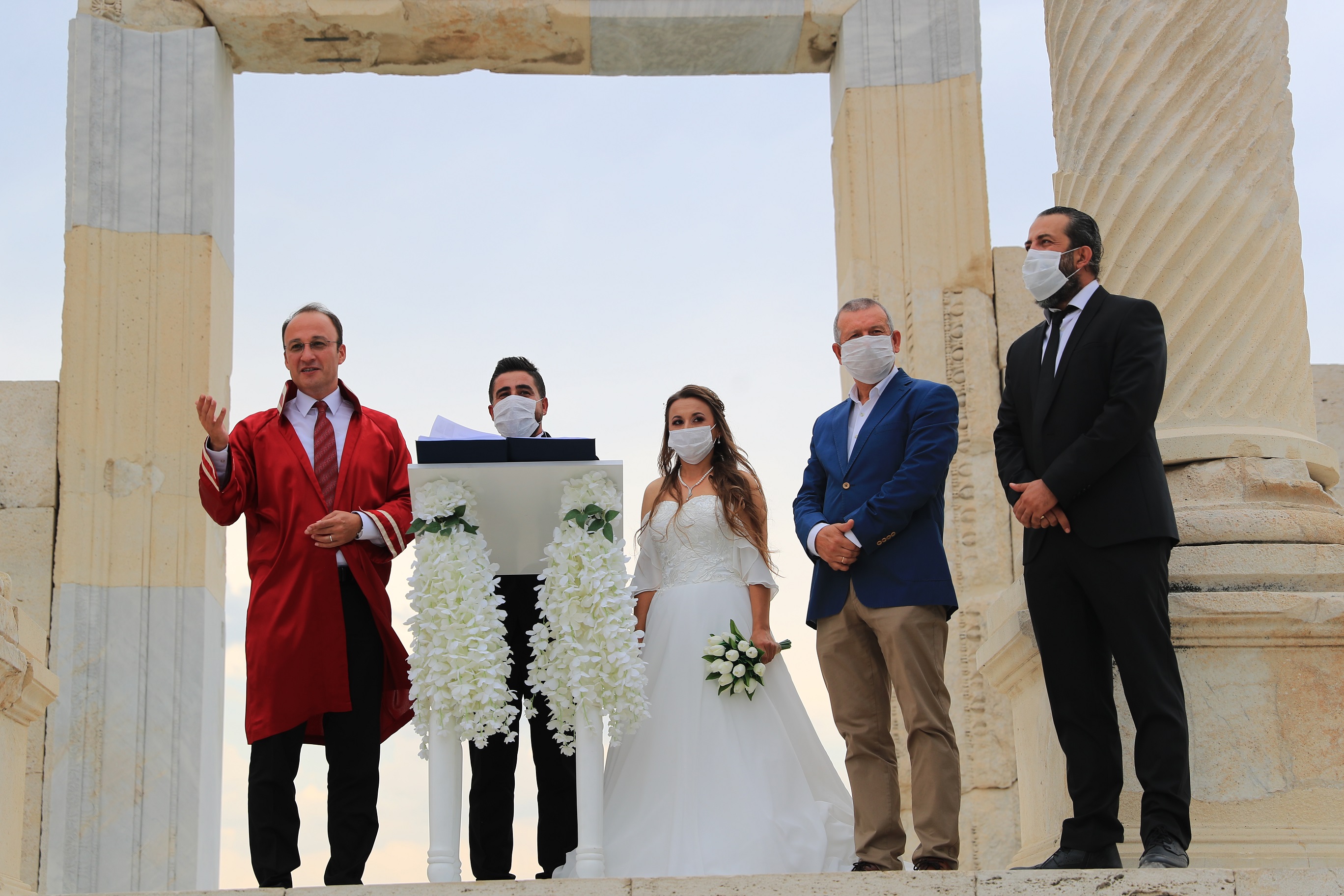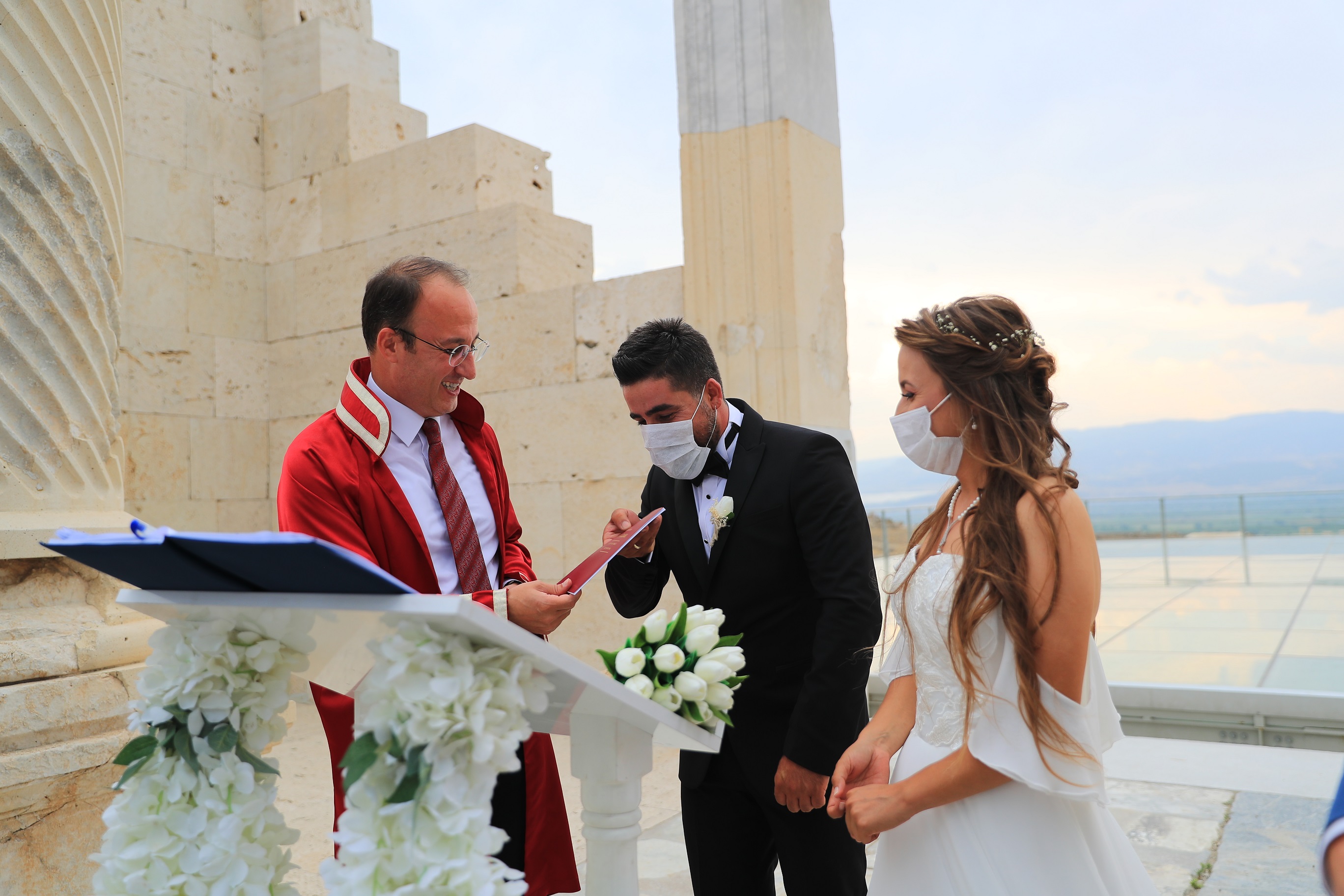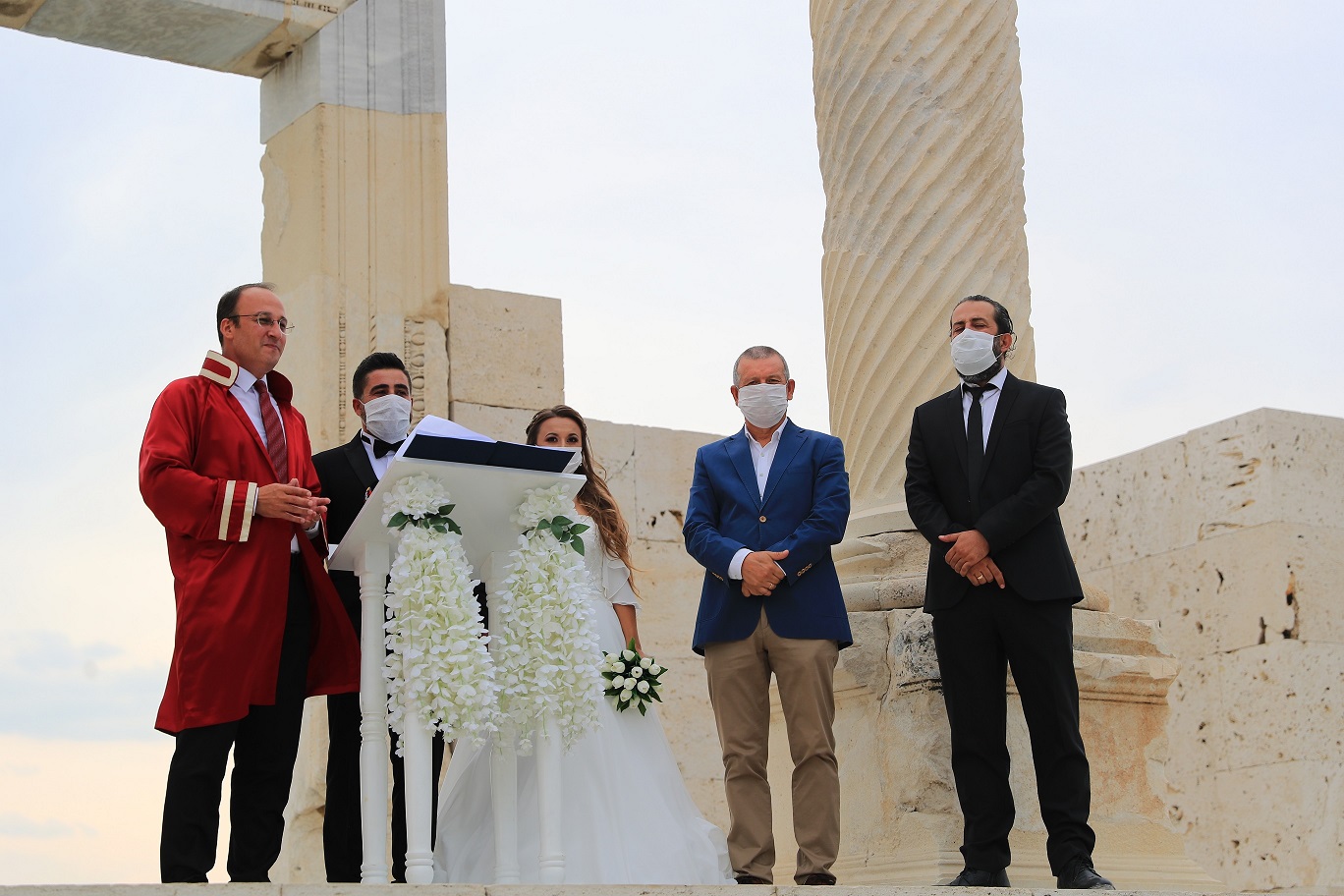 Pamukkale Belediye Başkanı Avni Örki, heyecanlı ve tarihi bir güne tanıklık ettiğini beliterek, “Benim için mükemmel bir an ve bir gün oldu. Ben bu günü unutulmazlar haneme işliyorum. Çünkü en son nikah burda bin 300 yıl önce kıyılmış. Şimdi de bin 300 yıl sonra bizler sizlerle adeta tarihi yeniden canlandırıyoruz. Burda bundan sonra da farklı güzelliklere imza atacağımızın işaretini görüyoruz. Burada Serap ve Emin kardeşimizin çok ciddi şekilde emeği ve alın teri var. Binlerce yıl önce inşa edilmiş medeniyetin eserlerinin içindeyiz. Bu arkadaşlarımız burada binlerce yıllık tarihi eserlerin ayağa kaldırılması için ter döküyorlar. Bizlerde burada başta Kültür ve Turizm Bakanlığımız olmak üzere Valiliğimiz, Büyükşehir Belediyemiz, Pamukkale Belediyesi olarak hep birlikte burada bir gayretin içindeyiz. Ama esas olarak burada bu güzelliklerin ortaya çıkmasına gayret edenler şimdi nikahlarını kıydığımız bu çiftimiz ve buradaki kazı heyetimizdir. Bizler burada bu güzellikleri yaşıyoruz ve biliyoruz. Buralara gelemeyen herkesi bu tarihi kentimizin güzelliklerini yaşamaya davet ediyorum. Bizlere bu tarihi anı yaşatan bu güzel çiftimize bir ömür boyu mutluluklar dilerim” dedi.