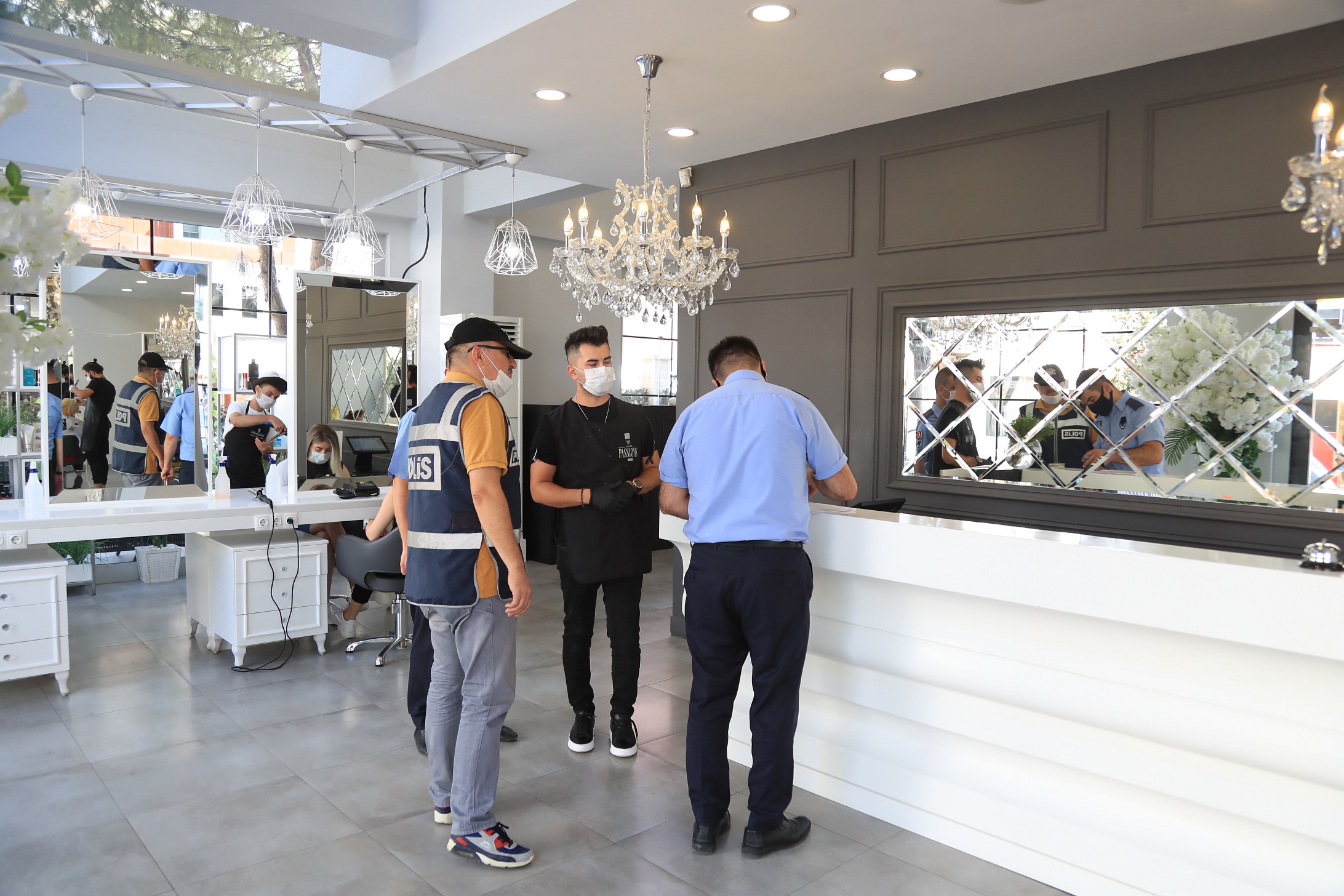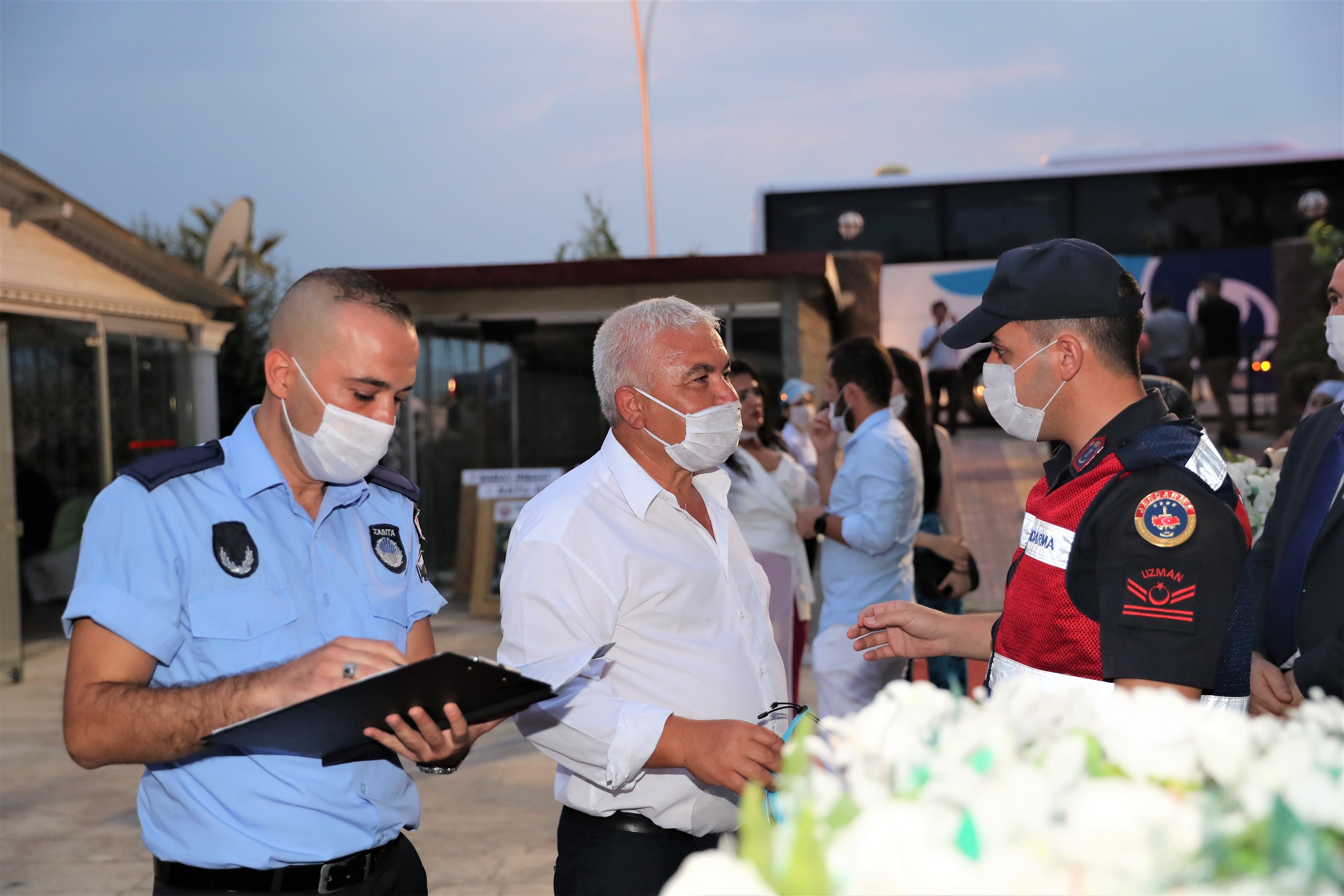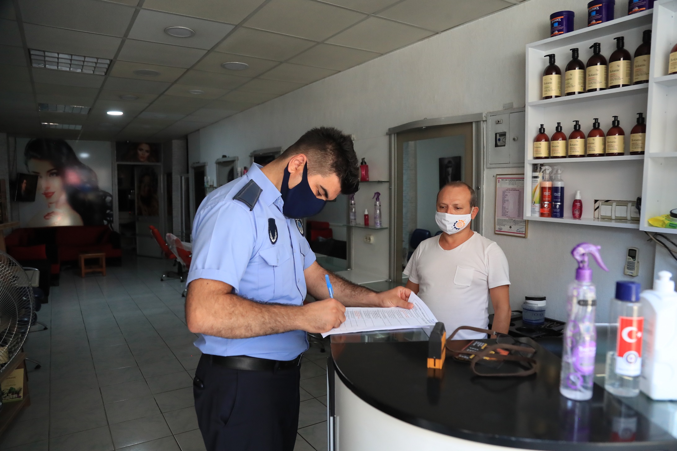 Koronavirüs salgınına karşı alınan tedbirler kapsamında rutin olarak denetimlerini sürdüren Pamukkale Belediyesi Zabıta Müdürlüğü ekipleri, geçtiğimiz hafta İçişleri Bakanlığı'nın 81 il valiliğine gönderdiği ‘Sağlık İçin Hepimiz İçin’ mottosunun ardından denetimlerini daha da sıklaştırdı. Pamukkale Belediyesi Zabıta Müdürlüğü, İlçe Emniyet Müdürlüğü, ilçe Jandarma Komutanlığı, İlçe Sağlık Müdürlüğü, ekipleriyle koordineli bir şekilde yaptığı denetimlerde, vatandaşların yoğun olarak kullandığı spor salonları, oyun salonları, berberler, kuaförler, güzellik merkezleri ve masaj salonlarını, düğün salonlarını ve sokak düğünlerini sıkı bir denetimden geçiriyor. Maske kullanımı, sosyal mesafe, dezenfektan kullanımı, tek kullanımlık ürünler bulundurulması ve temizliğe ilişkin denetim yapan ekipler, söz konusu mekanların ruhsat ve belgelerini de kontrol ettiler.