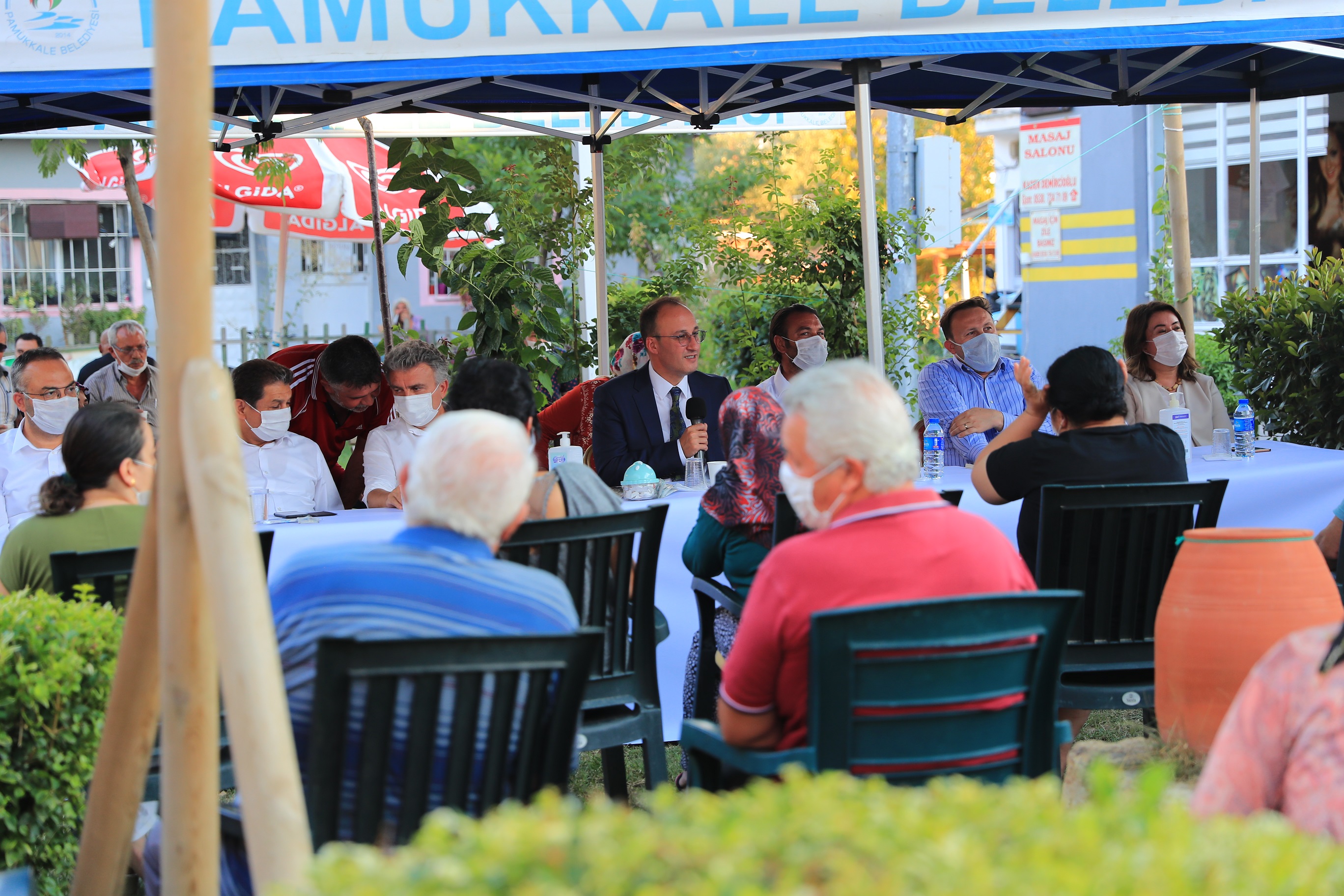 Vatandaşların sorunlarını en kısa sürede çözüm bulmak için her hafta düzenli olarak mahalle buluşmaları yaptıklarını belirten Pamukkale Belediye Başkanı Avni Örki, “Göreve geldiğimizden bu yana sürekli mahalle buluşmaları gerçekleştiriyoruz. Bizim için sizlerle birlikte olmak, sizlerle birlikte birtakım kararlar almak mutluluk verici bir husus. Sizlerle ortaklaşa aldığımız kararlar daha başarılı sonuçlar elde ediyoruz. Bundan dolayı mahalle buluşmalarımızı aralıksız sürdüreceğiz. Belediyemizin başkan yardımcıları, ilgili birim müdürleri ve meclis üyelerimizle birlikte sizin huzurunuza geldiğimizde adeta belediyeyi o mahalleye taşımış oluyoruz. Belediyemizde çözülecek, takip edilecek her ne türlü sorununuz, talebiniz ve ihtiyacınız varsa yerinde sizlerle birlikte anında değerlendirmesi yapılarak çözümleri ortaya koymaya çalışıyoruz” dedi.