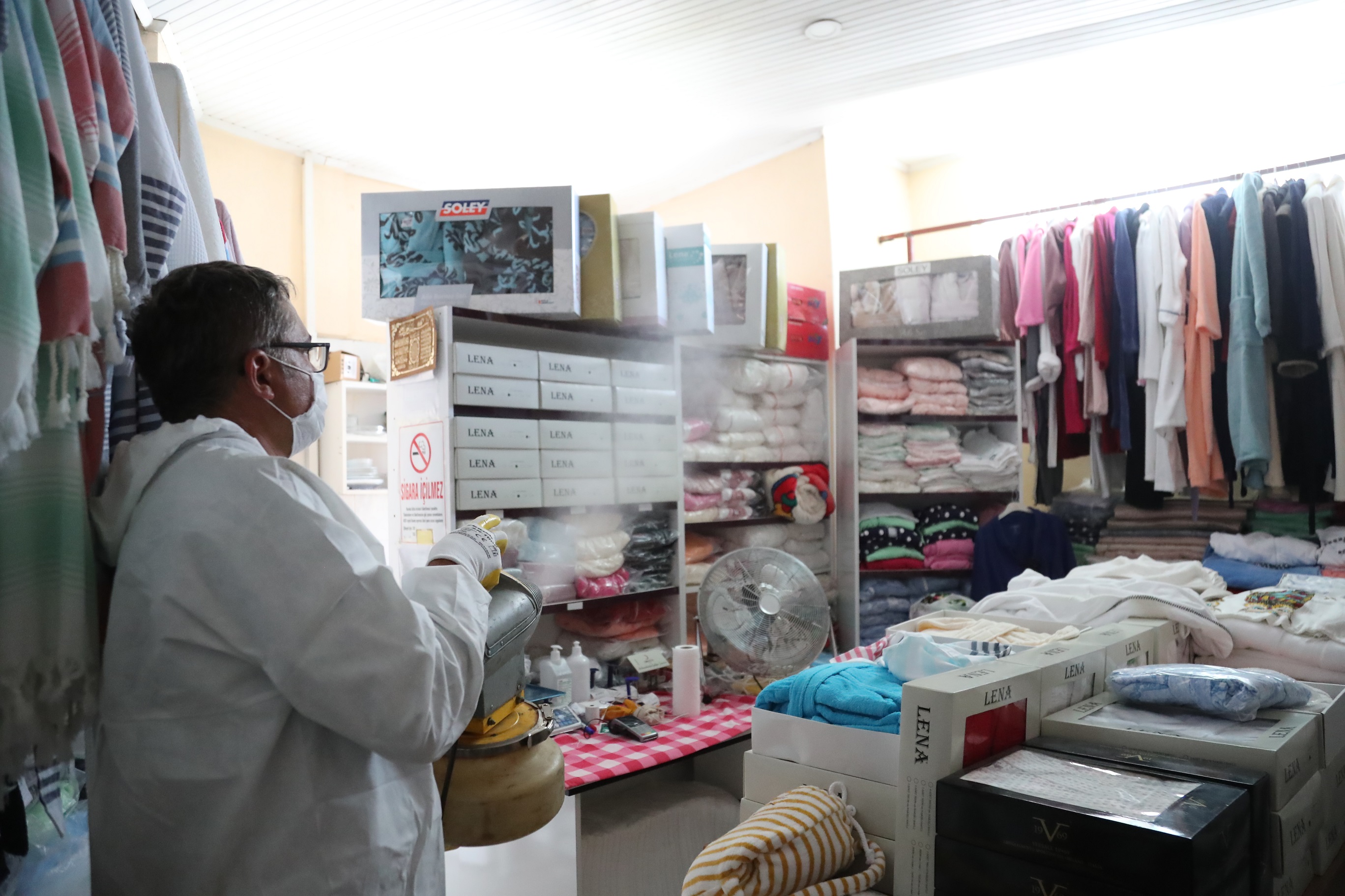 Pamukkale Belediyesi, koronavirüs ile mücadele kapsamında dezenfekte işlemlerine aralıksız devam ediyor. Pamukkale Belediyesi Sağlık İşleri Müdürlüğü ekipleri, turizm bölgesi olan Karahayıt’ta esnafların işyerleri ile otel, pansiyon ve restoranları ücretsiz olarak dezenfekte işlemi yaparak steril hale getirdi. Pamukkale Belediye Başkanı Avni Örki, “Koronavirüsle mücadelemiz aralıksız devam ediyor. Bu çerçevede esnaflarımıza dezenfekte konusunda destek veriyoruz” dedi.