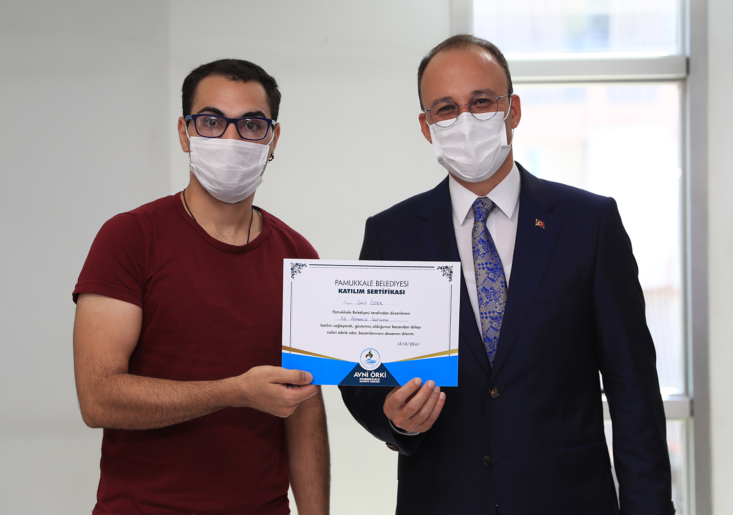 Pamukkale Belediyesi, yeni normal hayat çerçevesinde gerekli olan tüm tedbirleri alarak açtığı yaz dönemi kurslarının yabancı dil ile ilgili olan bölümleri tamamlandı. Yeni normal hayatın en önemli unsuru olan, maske, sosyal mesafe ve dezenfekte kurallarına uyulan kurslarda katılımcılara İngilizce A1 ve A2, Almanca A1 ve A2 seviyesinde eğitim verildi. Hem Almanca hem de İngilizce’de A1 seviyesinde ders saati 120 olurken, A2 seviyesi için bu süre 160 saat oldu. Kursların yapıldığı salonlarda sosyal mesafe kuralına uygun olarak oturma düzeni sağlanırken, dezenfekte ve maske kullanımı da zorunlu idi. Yapılan eğitimler sonunda kursu tamamlayan kursiyerlere sertifikaları Pamukkale Belediye Başkanı Avni Örki tarafından verildi.