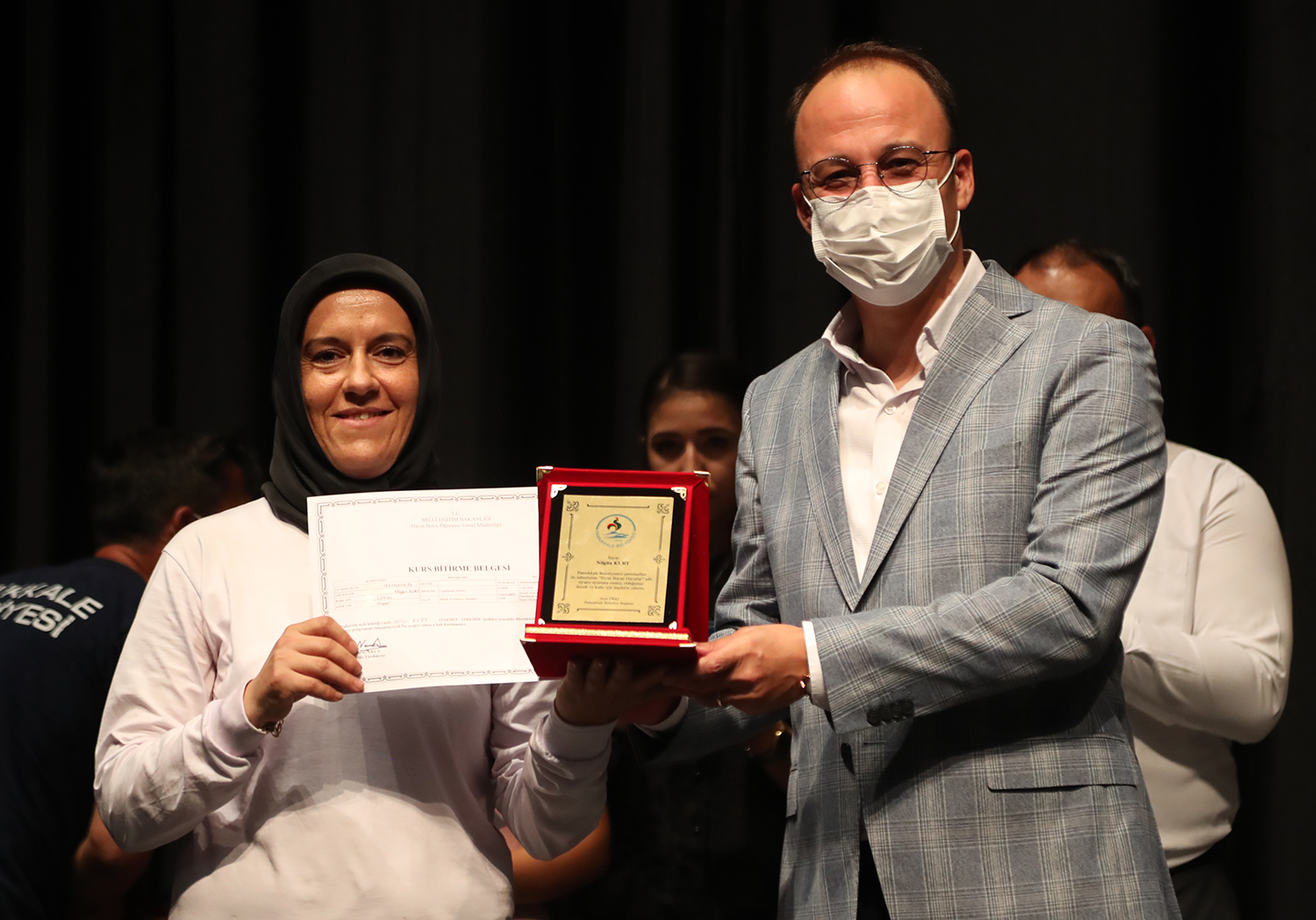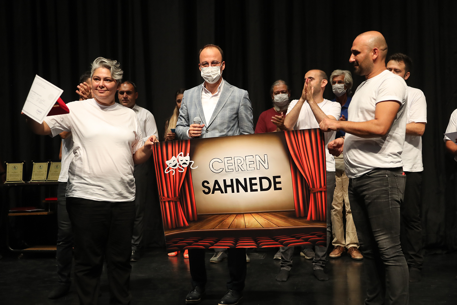Konuşmaların sonunda Siyah Beyaz Hayatlar adlı oyunda rol alan oyunculara sertifika ve plaketleri protokol üyeleri tarafından verildi. Tiyatro grubunda yer alan ancak önemli bir rahatsızlık geçirdiği için gecede yer alamayan Ceren Atmaca’yı arkadaşları unutmadı ve “Ceren Sahnede” pankartı açtılar. Oyunun yönetmenliğini yapan Ayhan Soyfidan, Süpervisor Erkan Horzum ve Reji Ferhat Işıklı’ya Pamukkale Belediye Başkanı Avni Örki tarafından teşekkür plaketleri verildi. Oyuncular adına Pınar Özen, Pamukkale Belediye Başkanı Avni Örki ve oyunun yönetmeni Ayhan Soyfidan’a teşekkür çiçeği verdi.
