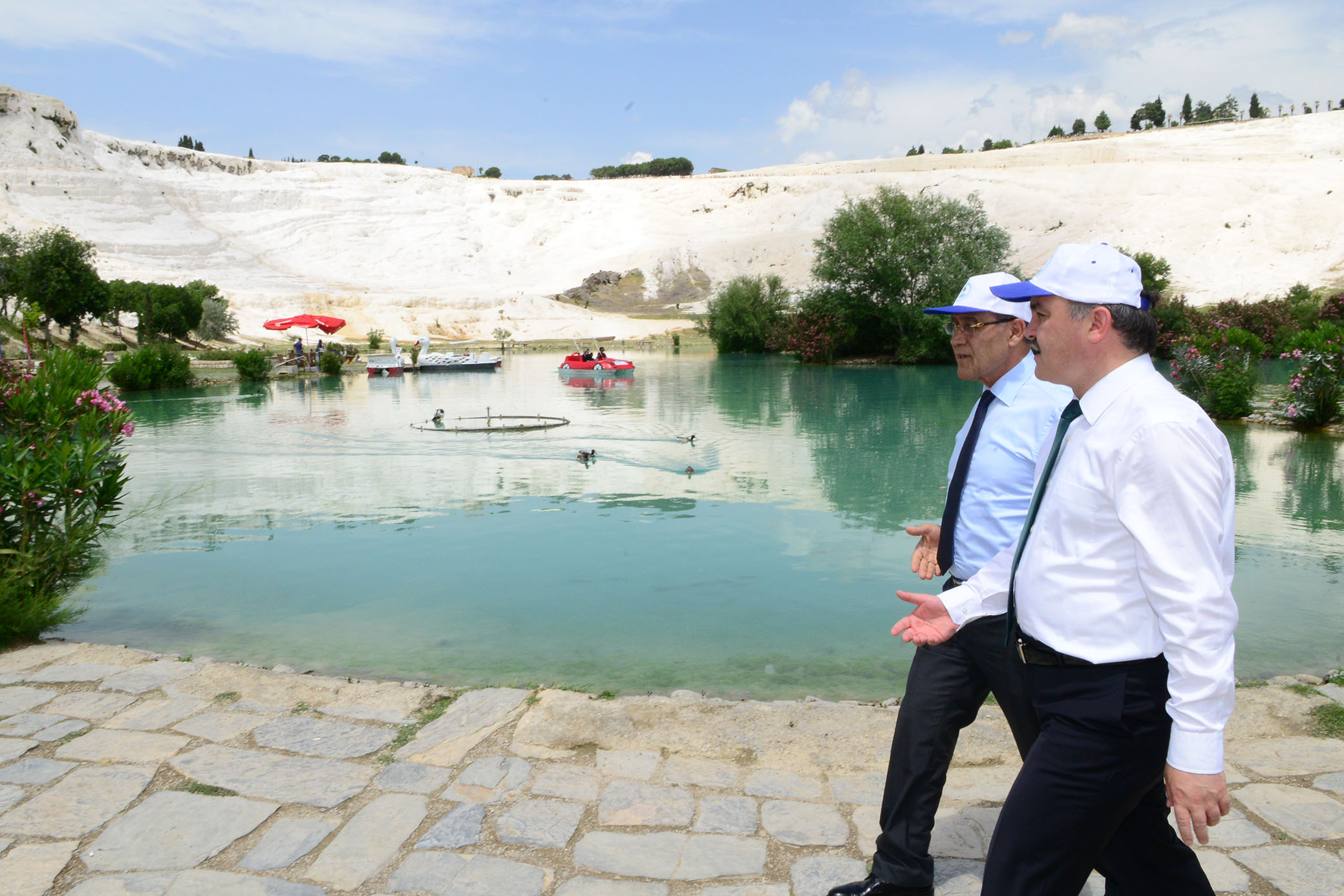 Kültür ve Turizm Bakan Yardimcisi Abdurrahman Arici ve Pamukkale Belediye Baskani Hüseyin Gürlesin, daha sonra Pamukkale Ören yerine geçti. Pamukkale Ilçe Kaymakami Veysel Beyru ve Müze Müdürü Hasan Hüseyin Baysal’da inceleme gezisine eslik etti. Baskan Gürlesin ilk olarak Bakan Yardimcisi Arici’ya Kocaçukur ve çevresinde hazirladigi projeleri anlatti. Sonrasinda ise travertenler bölgesi, Antik Havuz ve ören yerinin bir çok noktasinda inceleme yapildi.