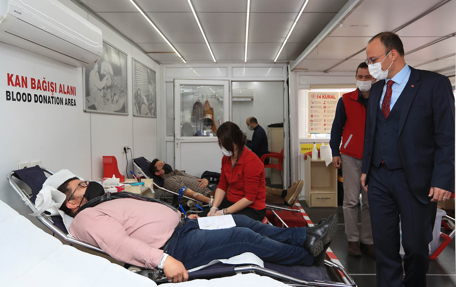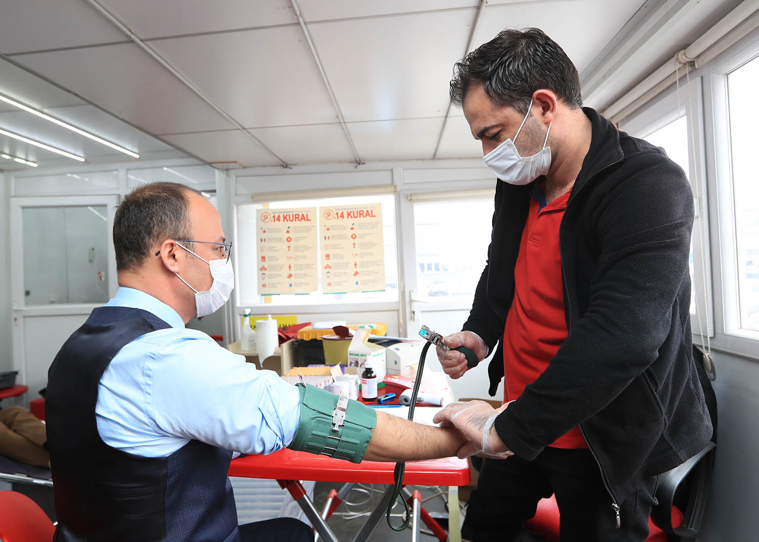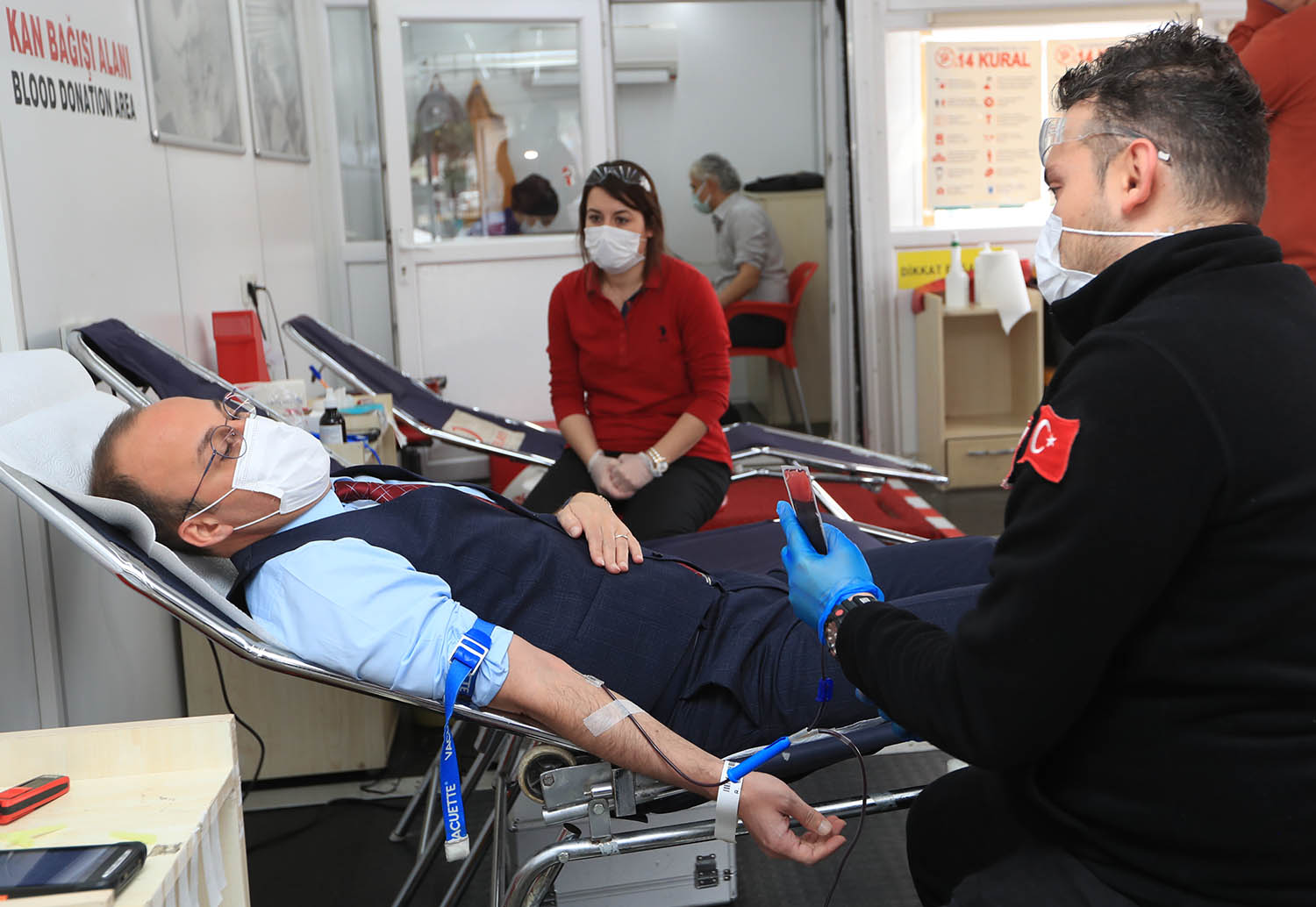 Pamukkale Belediye Başkanı Avni Örki de kan bağışında bulundu. “Kan bağışı çok önemli” diyen Başkan Örki, “Pamukkale Belediyesi olarak güzel bir etkinliğe Kızılayımızla birlikte imza atıyoruz. Malumunuz ülkemizde sürekli bir kan ihtiyacı söz konusu. Bu kan ihtiyacı kişilerin başına geldiğinde, o müşkül duruma düştüğünde had safhaya çıkıyor. Şuanda hastanelerimizde tedavi görmekte olan belki ameliyat sırası bekleyen çok fazla insanımız var ve biliyorsunuz ki böyle bir durumda kan can kurtarıyor. Daha geçtiğimiz günlerde kendi ailem içerisinde kan ihtiyacımız olduğunda hemen orada Kızılay işbirliği ile bizim bir şey söylememize gerek kalmadan hayırsever bir vatandaşımızın bağışladığı kan imdadımıza yetişmişti. Orada kendimi çok mutlu ve güvende hissetmiştim, çünkü devletimiz bizim yanımızdaydı. Bugün bu vesile ile ben vatandaşımıza kan vermesi konusunda tavsiyede bulunmak istiyorum. Pandemi sebebiyle vatandaşlarımızda kan verme konusunda, güvenli midir değil midir yönünde bazı soru işaretleri oluyor. 3 ayrı denetimden geçerek kan verme aşamasına geliyorsunuz. Koronaya karşı bütün tedbirler alınmış şekilde bu kan alım işlemi gerçekleşiyor. Sağlıkçılar gözetiminde tamamen hijyenik bir ortamda kan bağışı yapılıyor. Bütün vatandaşlarımız gönül rahatlığı içerisinde, huzur içerisinde bu güzel insanlık vazifesini yerine getirebilir. Bu işin ucunda hayat kurtarmak var. Herkesi kan bağışı yapmaya davet ediyorum” dedi. Gün boyu devam eden kan bağışına Pamukkale Belediyesi çalışanları büyük ilgi gösterdi.