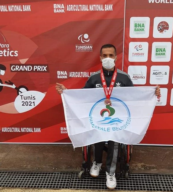 Pamukkale Belediyespor’un tekerlekli sandalye basketbol takımında spor yaşamına devam eden Filistinli Fadi Gameel Shaban El Deeb, 18 - 22 Mart tarihleri arasında Tunus’ta düzenlenen 2021 Dünya Para Atletizm Grand Prix Yarışmalarında Disk atma kategorisinde birinci olarak altın madalya kazandı.