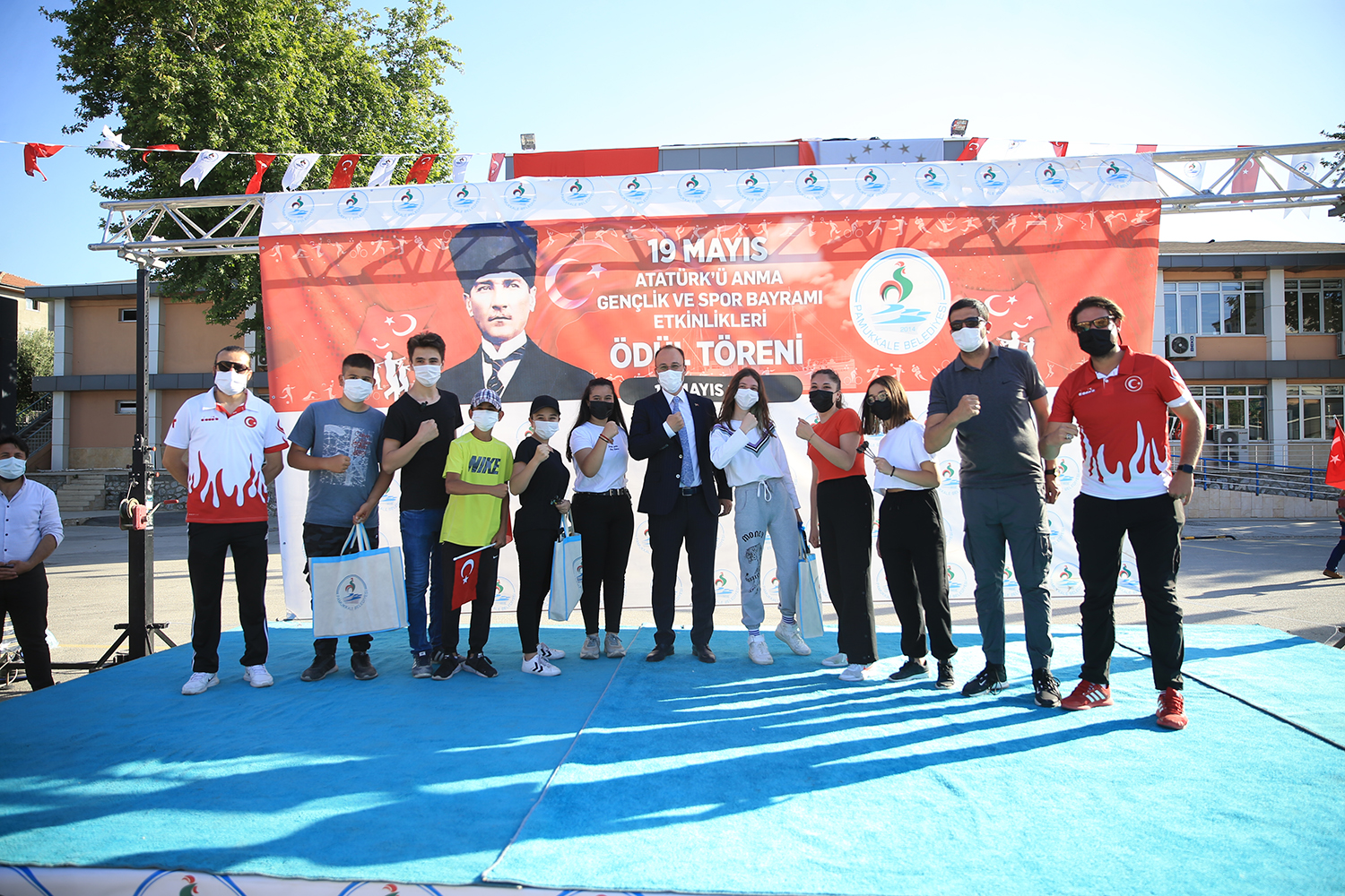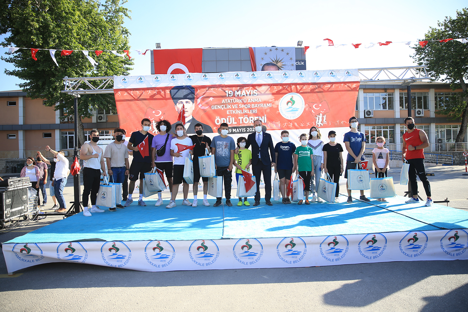 Pamukkale Belediye Başkanı Avni Örki etkinlik alanı girişinde meşaleli kortejle karşılandı. Ellerinde Türk bayraklarıyla Başkanı karşılayan katılımcılara Başkan Örki teşekkür etti. Ödül töreninde konuşma yapan Pamukkale Belediye Başkanı Avni Örki, ebedi lider Mustafa Kemal Atatürk’ün 19 Mayıs 1919 yılında yaktığı bağımsızlık meşalesinin Türk gençliği tarafından geleceğe taşındığını ifade ederek, “Gazi Mustafa Kemal Atatürk ‘beni en iyi gençler anlar’ diyerek 19 Mayıs’ı gençlere armağan etti. Ve yine 19 Mayıs’ı doğum günü olarak ilan etti. Atamızın doğum gününü kutluyoruz. Türkiye Cumhuriyeti’nin payidar kalmasının yegane sahibi siz gençlersiniz. Biz de Pamukkale Belediyesi olarak pandemi koşullarına uygun olarak 19 Mayıs etkinlikleri düzenledik. Katılan herkese teşekkür ediyorum. İnşallah bundan sonraki 19 Mayıs bayramımızı statlarda kutlayabiliriz. Bu vesile ile başta Gazi Mustafa Kemal Atatürk olmak üzere bu aziz vatan için canlarını feda eden şehitlerimize Allah’tan rahmet diliyor tüm gençlerimizin bayramını kutluyorum” dedi. Konuşmaların ardından Pamukkale Belediyesi 19 Mayıs Atatürk’ü Anma Gençlik ve Spor Bayramı etkinliklerinde dereceye giren sporculara ödülleri verildi. İlk olarak Başkan Örki etkinliğin gerçekleşmesine katkı sağlayan antrenörlere günün anısına plaketlerini verdi. Penaltı atışlarında Soyhan Bayır birinci olurken, Mehmet Akşit ikinci, Muhammet Mert Yazıcı ise üçüncü oldu. Basket şut yarışmasında Mert Çevni birinci, Alper Karpuzoğlu ikinci, Kerem Akyer ise üçüncülüğü elde etti. Emre Çavdar ip atlama dalında birinci olurken, Erkut Tanrıver ikinci İkra Nur Egemen ise üçüncü oldu. Nisan Emre Kölemen barfiks de birincilik kürsüsüne çıkarken, Ümit Akkaya ikinci, Salih Balcı ise üçüncülüğü elde etti. Dart yarışmasında Harun Turgut birinci, Şevval Avşar ikinci ve Ayşe Bodur ise üçüncü oldu. Dereceye giren bu isimlere ödülleri Pamukkale Belediye Başkanı Avni Örki tarafından verildi.