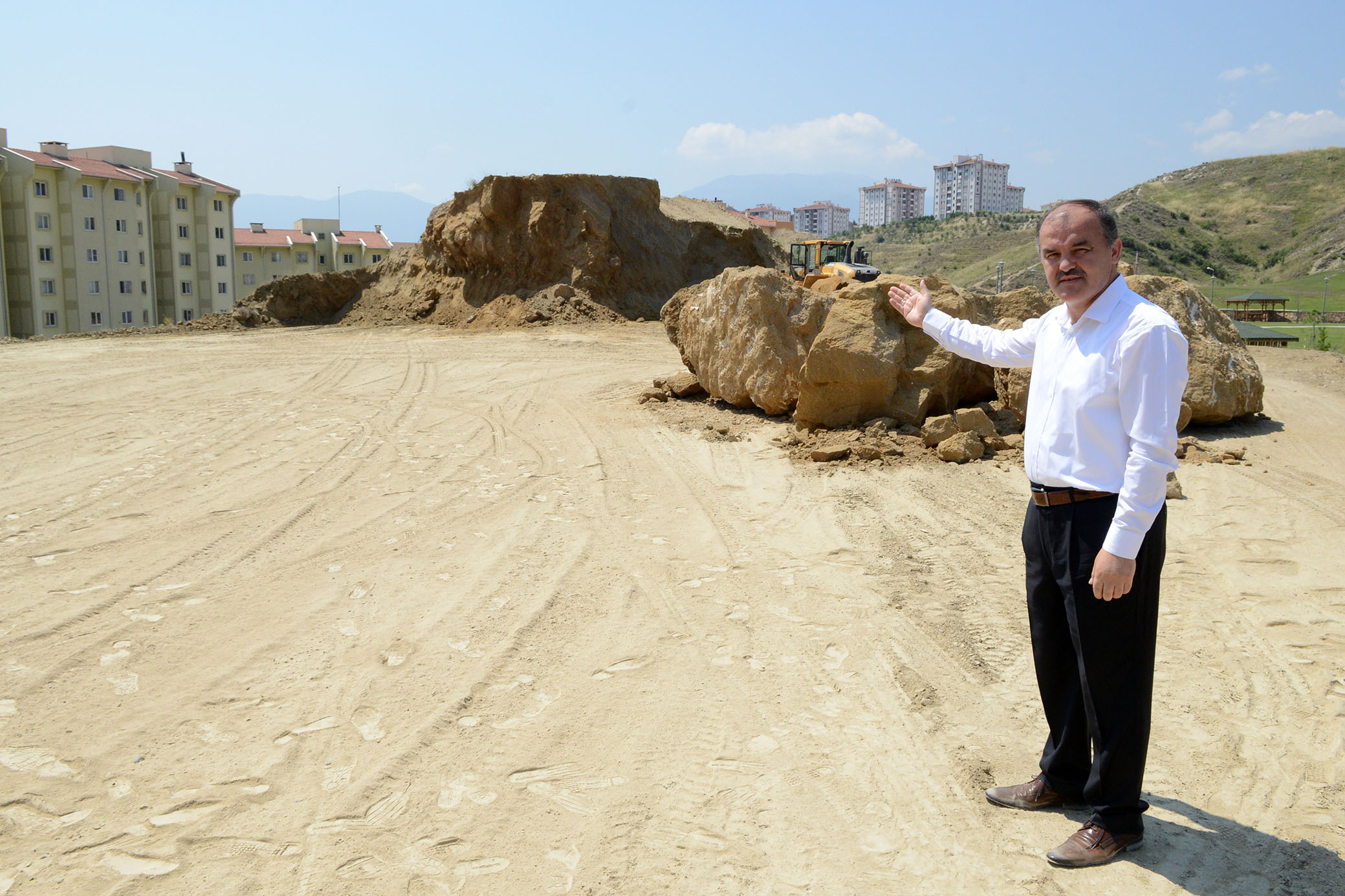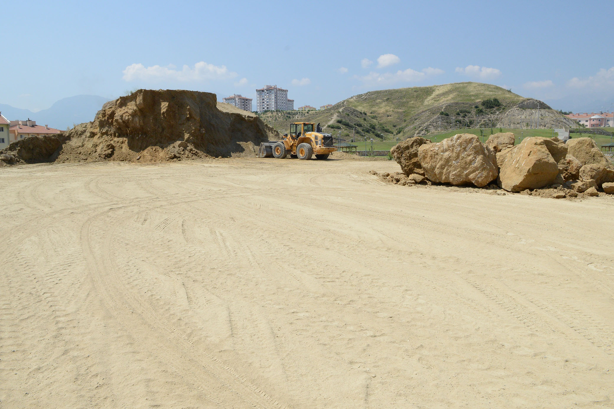 Aktepe Mahallesi sakinlerinin en önemli isteklerinden birisi de Ak Vadi Parki ve TOKI konutlari arasinda bulunan ve bölgeye görsel anlamda büyük sikinti yaratan 20 bin metreküp boyutundaki devasa tepenin kaldirilmasiydi. Hem bölgede toz kaynagi olan hem de görsel güzellik yesil Ak Vadi Parki’ni boyutu nedeniyle TOKI konutlari sakinlerinin evlerinden görmesini engelleyen tepeyle ilgili yerel seçimler öncesi istek Baskan Gürlesin’e de iletilmisti. Konuyla ilgili inceleme yaptiran Baskan Gürlesin, vatandasin o talebini yerine getirdi. Baskan Gürlesin, tepenin tiraslanarak kaldirilmasi talimatini verdi, is makineleri devasa tepeyi adeta yerle bir etti. Çalismalar yariya geldi, suana kadar tepeden yogun bir çalismayla bin kamyon hafriyat tasindi. Bir hafta içinde ise bin kamyon hafriyat daha tasinarak tepe tamamen dümdüz edilmis olacak. Tepenin kaldirildigi alan ise Ak Vadi Parki’yla birleserek yesil bir alana dönüsecek.