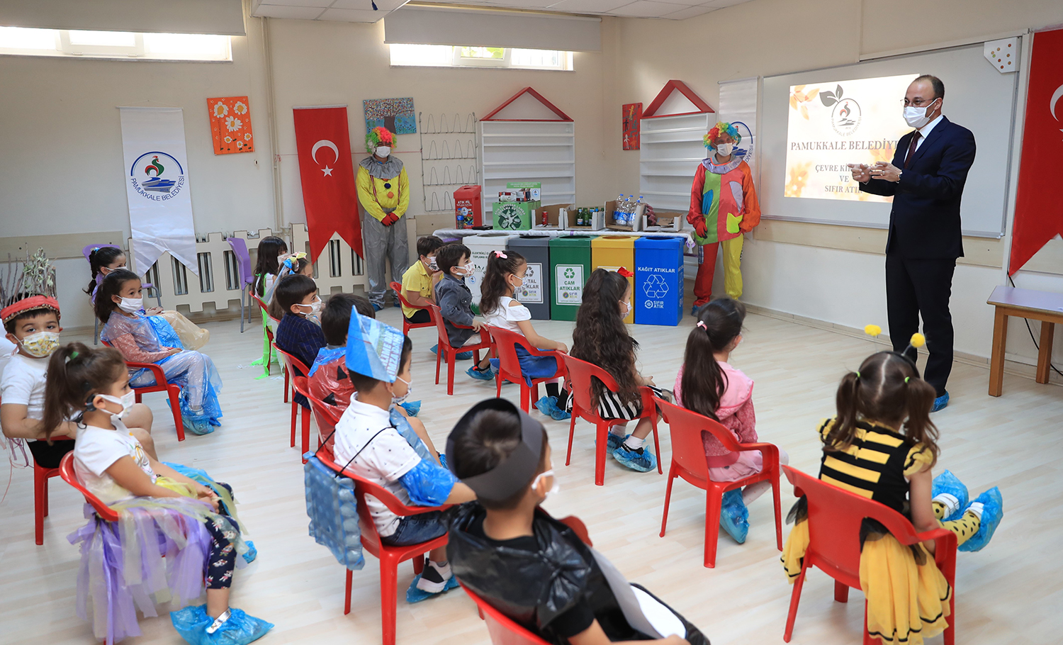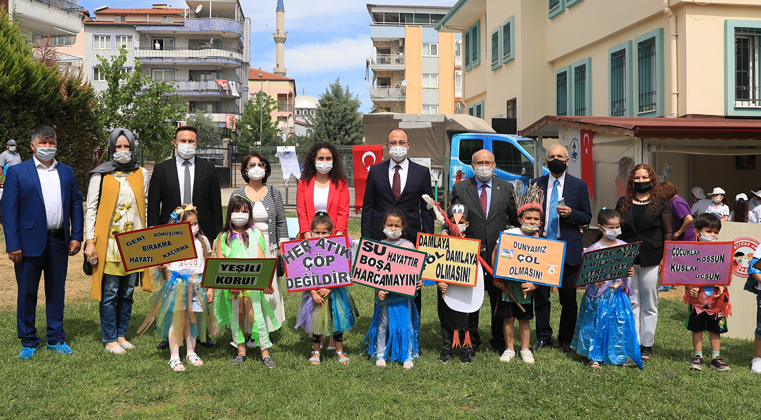 Pamukkale Belediyesinin düzenlediği çevre günü etkinliği Şenay Öztürk Anaokulu’nda gerçekleşti. Pamukkale Kaymakamı Hayrettin Balcıoğlu ve Pamukkale Belediye Başkanı Avni Örki’nin de katıldığı etkinlikte öğrencilere yönelik çevre konusunda eğitim verildi. Burada bir konuşma yapan Pamukkale Belediye Başkanı Avni Örki, “Dünya Çevre Günü’nde sizlerle birlikteyiz. Bugün farkındalık oluşturmak için çok önemli. Atıkların ayrıştırılması çevrenin korunması için eğitim çok önemli. Çevre duyarlılığını oluşturmak ne kadar erken yaşta oluşursa o kadar iyi. Biz Pamukkale Belediyesi olarak sizlere daha güzel bir dünya bırakmak için çalışıyoruz, çalışmaya da devam edeceğiz” dedi. Daha sonra Kaymakam Balcıoğlu ve Başkan Örki çocuklara çeşitli hediyeler verdikten sonra çocukların çevre günü etkinliklerine katıldılar. Çevre ile ilgili farkındalık oluşturmak amacıyla anaokulu öğrencilerine yönelik olarak Ahmet Hanife Paralı Anaokulu’nda da program gerçekleştirildi. Pamukkale Belediyesi Temizlik İşleri Müdürlüğü tarafından miniklere çevre konusunda bilgiler aktarıldı. Pamukkale Kaymakamı Hayrettin Balcıoğlu’nun da katıldığı etkinlikte okulun 5 yaş A şubesi tarafından “Papatya ve Su Damlası” adlı gösterinin ardından 5 yaş D şubesinin zeybek gösterisi sergilendi. Atıklardan oluşturulan eserlerin yer aldığı serginin ardından çocuklara çeşitli hediyeler verildi. Ayrıca çocuklar okulun bahçesindeki atık kutularına uygun atıkları attılar.