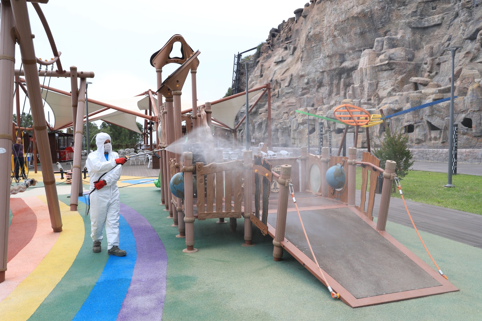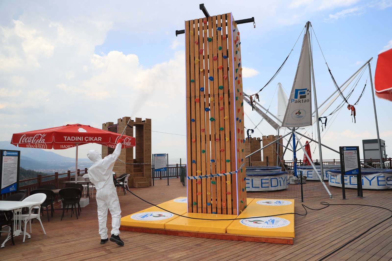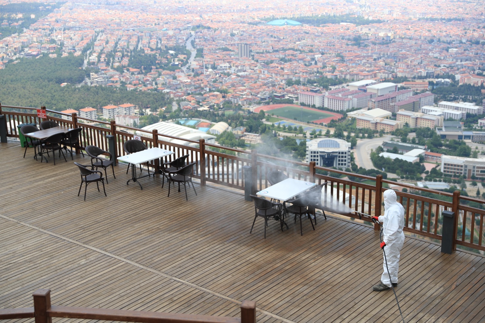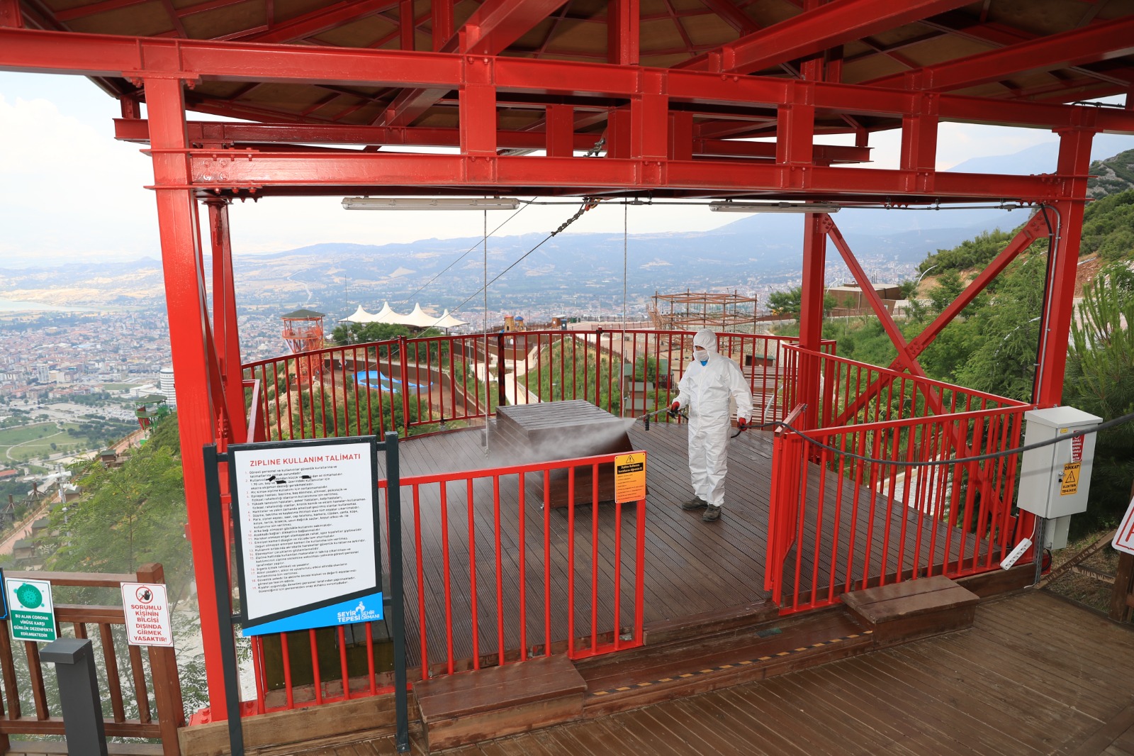 Pamukkale Belediye Başkanı Avni Örki, halkın sağlığı için gereken her türlü çalışmayı yaptıklarını belirterek, “İlçe genelinde vatandaşlarımızın sağlığını korumak amacıyla önemli çalışmalar yapıyoruz. Bunun yanında belediyemizin tesislerinde de aynı şekilde gereken tedbirleri alıyoruz. Seyir Tepesi Şehir Ormanı’na her gün binlerce vatandaşımız geliyor. Biz koronavirüs ile ilgili olan tüm tedbirleri alıyoruz. Bunun yanında bu dev tesiste günlük dezenfekte işlemleri yapılıyor. Düzenli aralıklarla da yeşil alan ilaçlaması ve larva ile mücadele için de gerekli ilaçlamalar gerçekleştiriliyor. 405 bin metrekarelik dev bir alanda bulunan Seyir Tepesi’ni her gün halkımız için steril hale getiriyoruz. Kıymetli vatandaşlarımızı gecesi başka gündüzü başka güzellikte olan Pamukkale Belediyesi Seyir Tepesi Şehir Ormanı’na davet ediyorum” dedi.