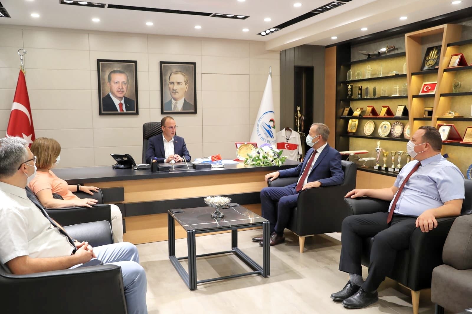Pamukkale Belediye Başkanı Avni Örki, makamında Pamukkale İlçe Milli Eğitim Müdürü Mehmet Çimen’i ağırladı. Çimen ve beraberindeki şube müdürleri eğitime sağladığı katkılar nedeniyle Başkan Örki’ye teşekkür plaketi takdim etti.