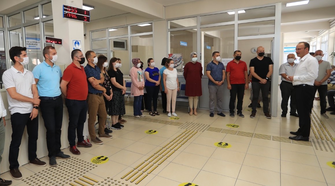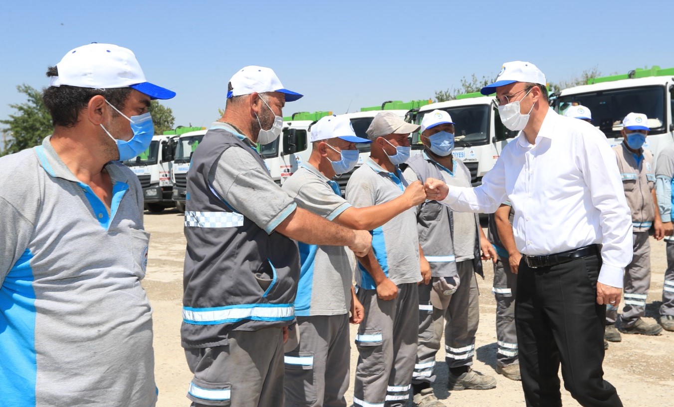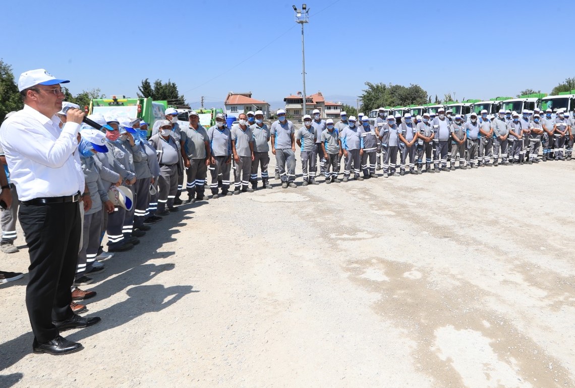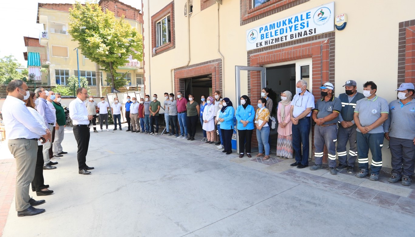 Pamukkale Belediye Başkanı Avni Örki Kurban Bayramı öncesi de belediye personellerini unutmadı. 20 Temmuz 2021 Salı günü idrak edilecek olan Kurban Bayramı öncesi son mesai gününde Pamukkale Belediyesi çalışanları ile bir araya gelen Başkan Örki, tüm çalışanlarla bayramlaştı. Pamukkale Belediyesinin YSE’deki ana hizmet binası ile birlikte Atatürk Caddesi ve Deliktaş’taki ek hizmet binalarındaki personelleri ziyaret eden Başkan Örki, ilçedeki temizlik hizmetlerini yürüten işçileri de unutmadı. Tüm çalışanlarla tek tek bayramlaşan Başkan Örki, “Korona nedeniyle bayramlaşmalara ara vermek zorunda kalmıştık. 1 Temmuz’dan itibaren normalleşme başladı. Çok şükür ki bugün yan yana gelip sizlere verdiğiniz emekler nedeniyle teşekkür edebiliyorum. Ben öncelikle hepinize yürekten teşekkür ediyorum, biz sizler sayesinde Pamukkale ilçesinde vatandaşımızın yüzünün gülmesine vesile oluyoruz. Çok zor dönemlerden geçiyoruz. Bu zor dönemde her birinizin fedakarca çalışmaları ile vatandaşlarımızın yüzünü güldürüyoruz. Biz büyük Pamukkale Belediyesi ailesi olarak ilçemizde yaşayan herkesin mutluluğunu temin etmeye çalışıyoruz. Her biriniz çok değerlisiniz. Hepinizden Allah razı olsun, emeklerinizi ödeyemeyiz. Bu vesile ile siz ve kıymetli ailelerinizin Kurban Bayramı’nı kutlar, daha nice sağlık dolu bayramlara kavuşmayı diliyorum” dedi.