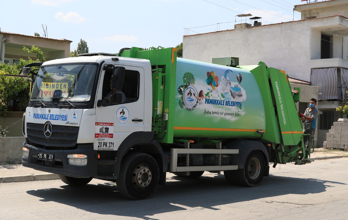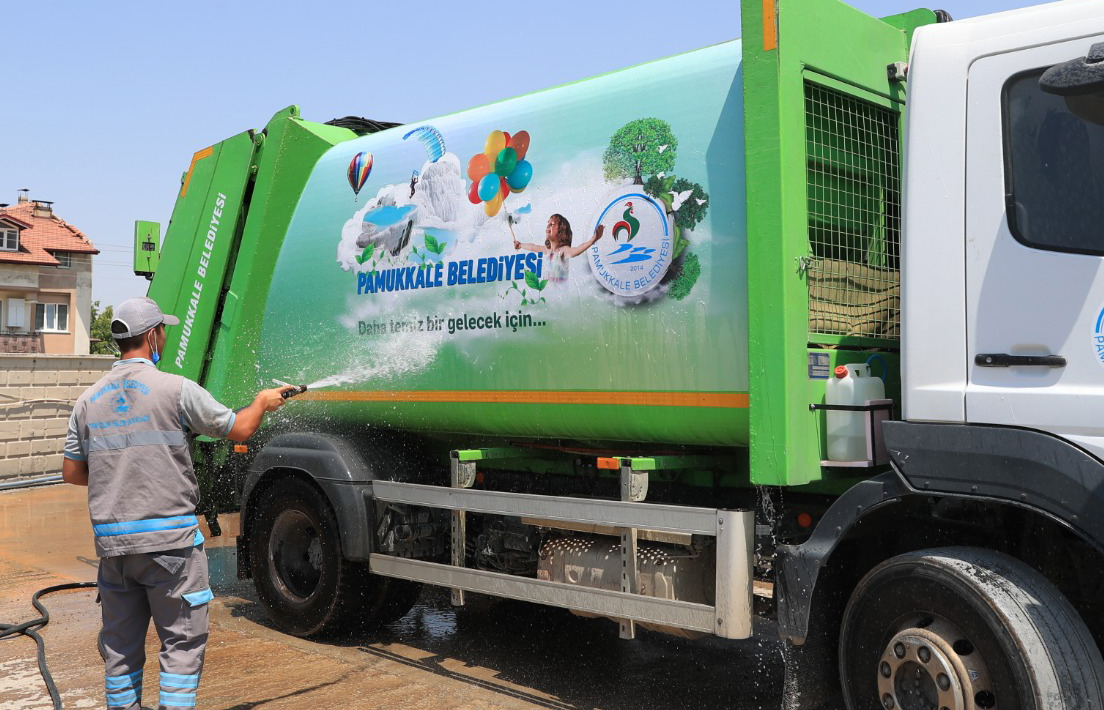 Pamukkale Belediyesi çevre konusunda önemli çalışmalara imza atmaya devam ediyor. Çöp toplama kamyonlarında ve çöp konteynerlerinde “Koku önleme sistemi” ile çevreye çöp kokusu değil turunç kokusu yayılıyor. Ayrıca çöp konteynerleri de düzenli olarak yıkanarak aynı kokuyla bezeniyor.