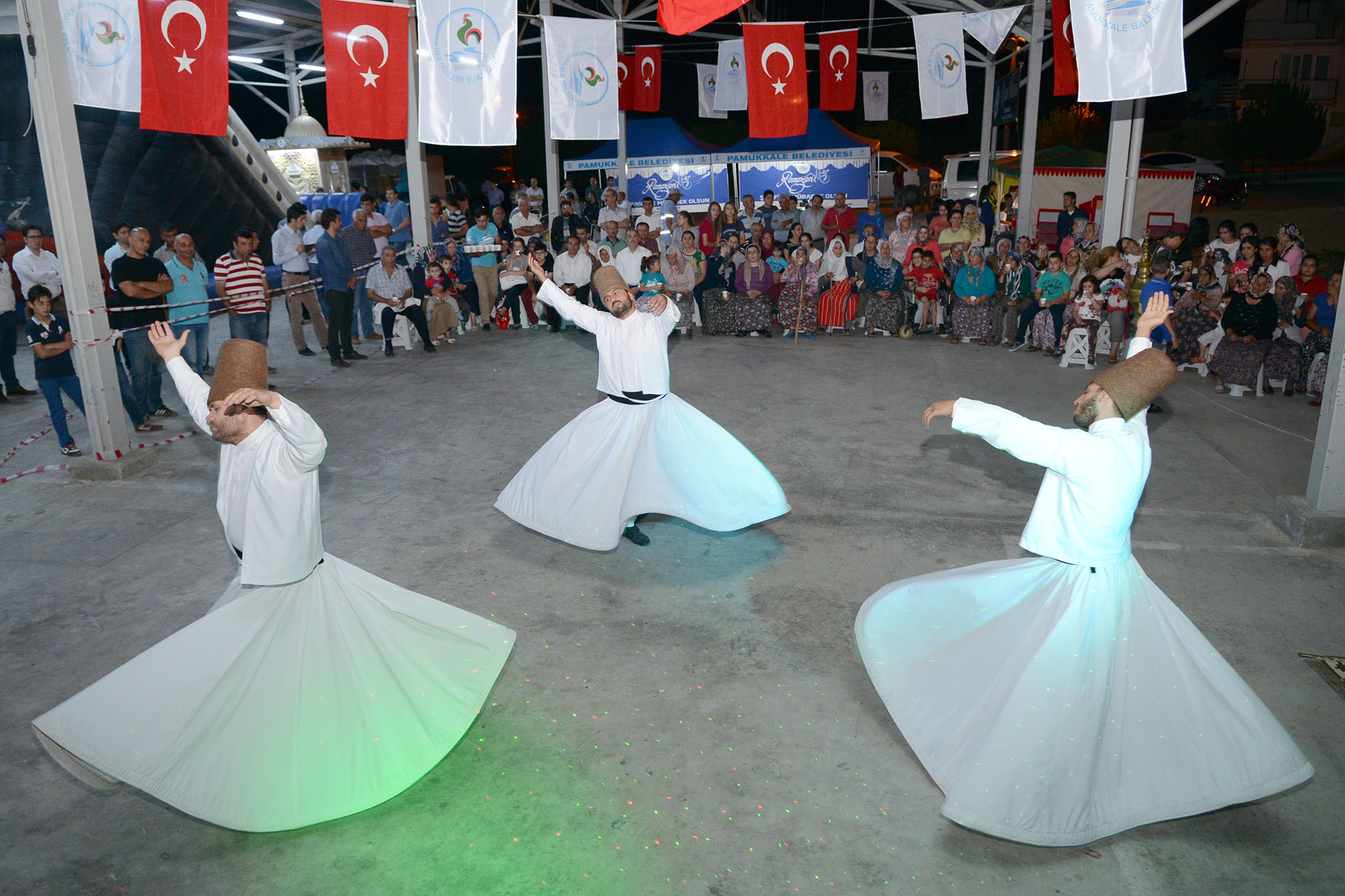 Bu arada Ramazan ayinin degismezi Hacivat ve Karagöz de etkinlikte yer alarak çocuklarin dünyasina ayri bir renk katti. Birçok çocuk hayatlarinda ilk kez Hacivat ve Karagöz’le tanismis oldu. Denizlili sanatçi Özay Gönlüm’ün ve bir döneme damga vuran ünlü sanatçi Baris Manço’nun kuklalarinin, Hacivat ve Karagöz’ün oyununda yer almasi ayri bir güzellik olarak ortaya çikti. Günün son bölümünde ise semazen gösterisi vardi. Semazenler, ney esliginde adeta senlige katilanlari büyüledi.