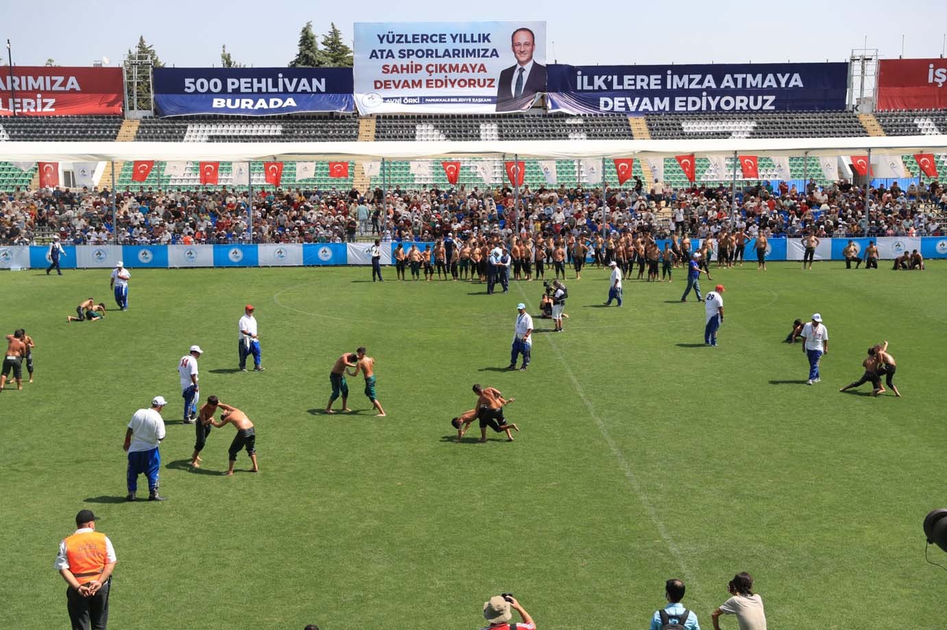 Pamukkale Belediye Başkanı Avni Örki, Pamukkale Yağlı Güreşleri’nde Denizli halkının ata sporu yağlı güreşe olan özlemlerini anladıklarını ve gerçekten başarılı bir organizasyona imza attıklarını stadı dolduran on binlerin ispatladığını belirtti. Denizli Atatürk Stadı’nda gerçekleşen Pamukkale Yağlı Güreşlerine on binlerce güreş sever katıldı. Ata sporu yağlı güreşi seven, çocuğuna tanıtmak isteyen on binlerce Denizlili Atatürk Stadı’na adeta akın etti.