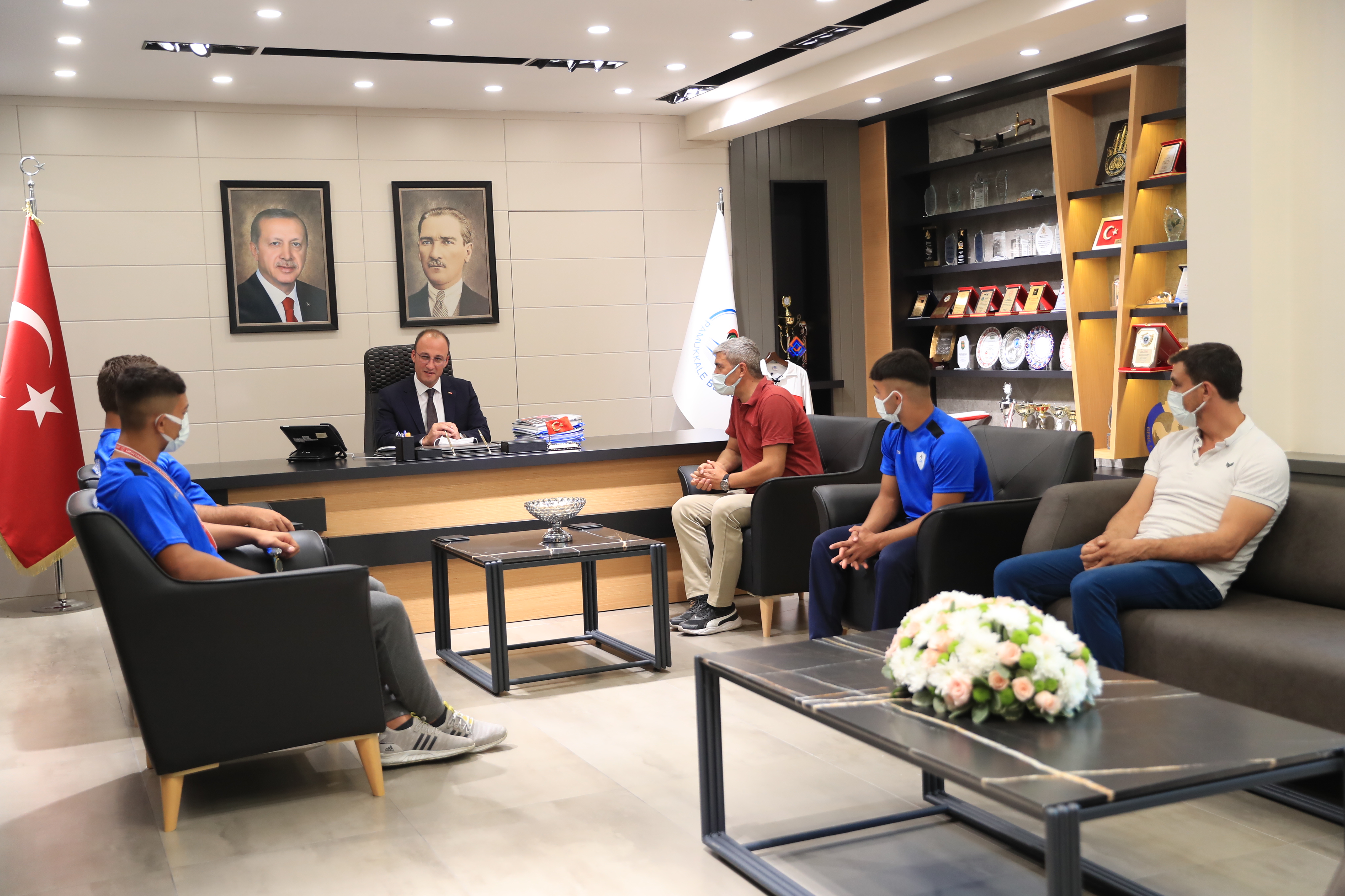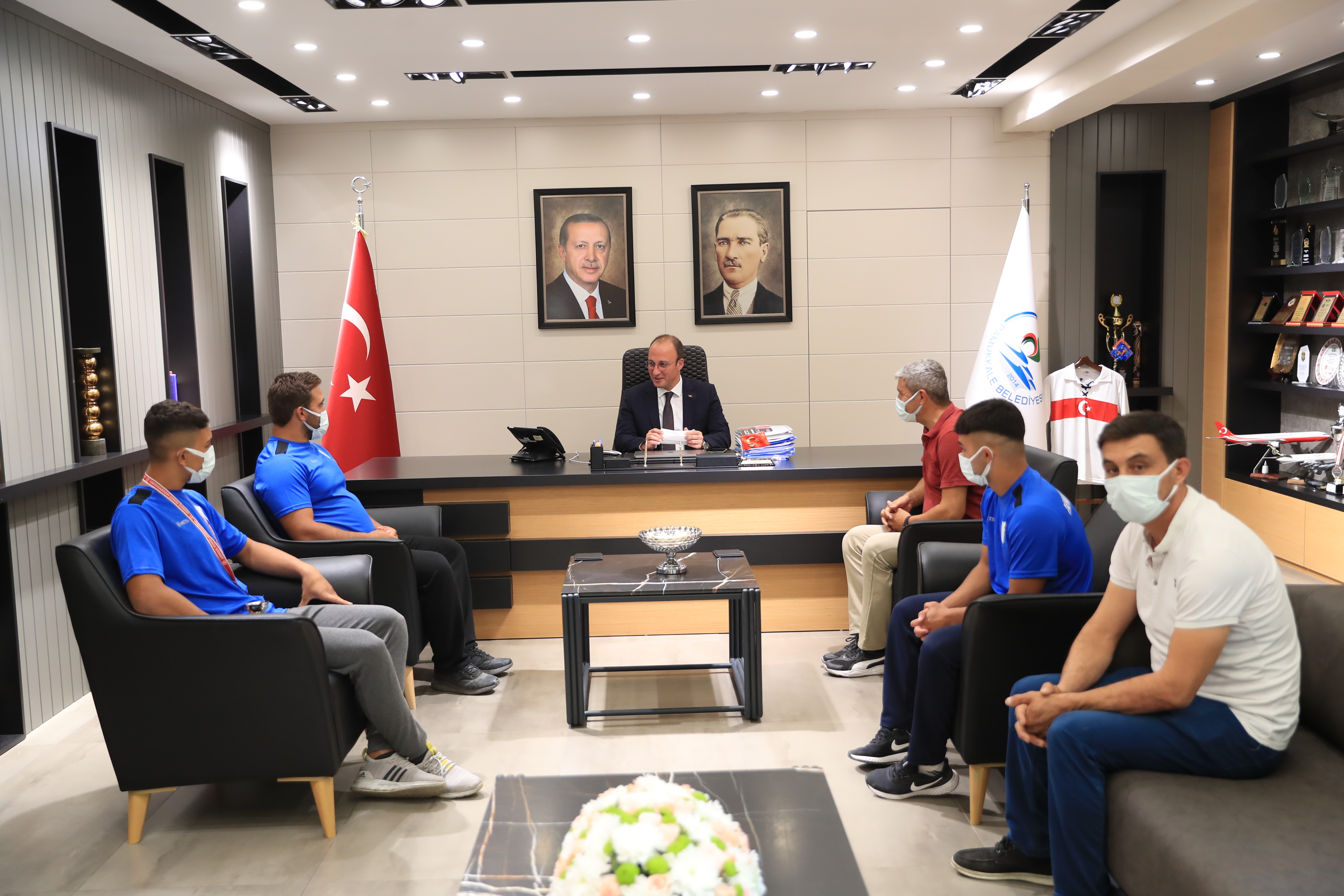 Geçen ay 1. Pamukkale Yağlı Pehlivan Güreşleri’ni gerçekleştiren Pamukkale Belediyesi, Pamukkale Belediyespor aracılığıyla artık er meydanlarında boy gösterecek. Pamukkale Belediye Spor Kulübü, bünyesine 3 sporcu kattı. 24 yaşındaki İsmail Enes Eyice, 18 yaşındaki Burhan Karabulut ve 13 yaşındaki Beytullah Sarı, bundan sonra er meydanlarında Pamukkale Belediyespor adına mücadele verecekler. Kulübün yeni sporcularından İsmail Enes Eyice, Pamukkale Yağlı Pehlivan Güreşleri’nde büyük orta kategorisinde üçüncü olurken, deste küçük boyda yer alan Burhan Karabulut 2017 yılında Tarihi Kırkpınar Yağlı Pehlivan Güreşleri’nde üçüncülük elde etmişti. Teşvik 2 kategorisinde kol bağlayan Beytullah Sarı ise bu yıl içinde düzenlenen Kurtdere ve Akhisar güreşlerinde birincilik, Kocaeli Sekapark güreşlerinde ikincilik, Merkezefendi güreşlerinde de üçüncülük elde etmişti. Sporcular, 18 Eylül 2021 tarihinde yapılacak olan Kocaeli Gebze, 3 Ekim 2021’de gerçekleşecek Manisa Yunus Emre Belediyesi ve 10 Ekim 2021’deki Manisa Kula Yağlı Pehlivan Güreşleri’nde Pamukkale Belediyespor adına güreşecekler. Kulübün yeni sporcuları Pamukkale Belediyespor Kulübü Onursal Başkanı ve Pamukkale Belediye Başkanı Avni Örki’yi makamında ziyaret ettiler. Ziyarette Pamukkale Belediyespor Kulübü Başkan Yardımcısı Ayhan Soyfidan ve kulübün güreş branşından sorumlu yönetim kurulu üyesi Mehmet Dönmez de yer aldı.