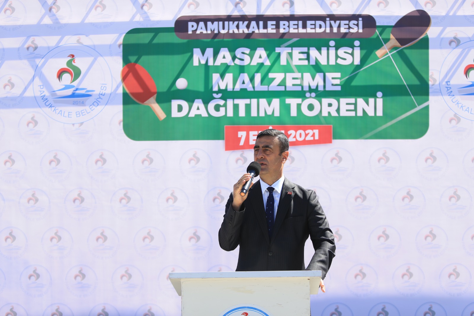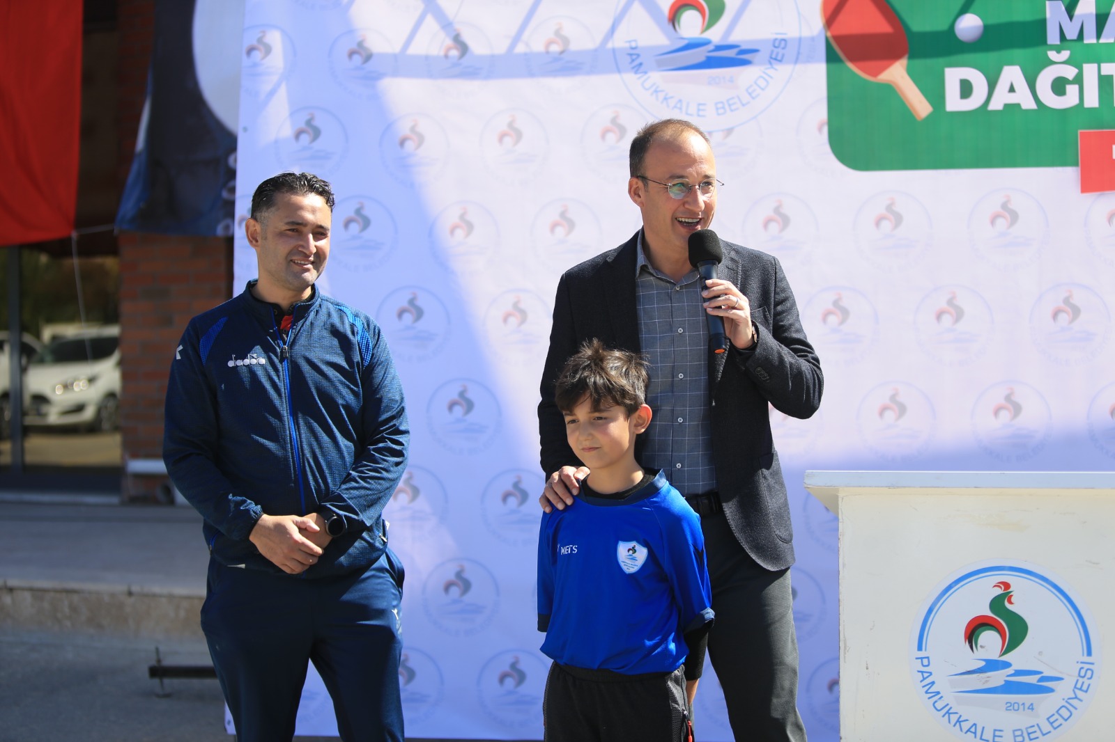 Törenin açılış konuşmasını yapan Pamukkale Belediye Başkanı Avni Örki, göreve geldikleri günden bu yana spor ve eğitimi önemsediklerini ifade ederek, “Geride kalan zamanda yaptığımız hizmetlerle bunu ispatladığımızı düşünüyorum. İlçemizi spor kenti yapma konusunda birçok müjdeyi vermiştik. Bu çalışmalarımızı en kısa sürede tamamlayarak vatandaşlarımızın hizmetine sunacağız. Spor ile birlikte eğitim konusunda da önemli çalışmalar yapıyoruz. Şimdiye kadar onlarca okulumuzda öğretmenlerimizin ve öğrencilerimizin yüzünü güldürecek işler yaptık. 5 ekibimizi okulların ihtiyaçlarıyla ilgili çalışmayla görevlendirdik. Biz Pamukkale Belediyesi olarak İl Milli Eğitim ve Pamukkale İlçe Milli Eğitim müdürlükleriyle temas halindeyiz. Bugün de ilçemizde bulunan yaklaşık 70 ortaokul ve liseye masa tenisi seti hediye ediyoruz. Masa Tenisinin oynandığı masası, raketleri ve toplarından oluşan setler sayesinde bu branşın yaygınlaşmasını bekliyoruz. Pamukkale Belediyespor’un 8 yaşındaki masa tenisi sporcusu Akif Efe Aslanpay geçen hafta yapılan seçmeler sonunda Denizli’nin en küçük milli takım sporcusu oldu. Bu güzel örnek masa tenisi konusunda farkındalık oluşturuyor. 70 tane masa tenisi masası ve malzemesi dağıtılmasında Akif Efe’nin de çok ciddi payı var. Pamukkale Belediyesi olarak her zaman sporun ve sporcuların yanında olmaya devam edeceğiz” dedi.
