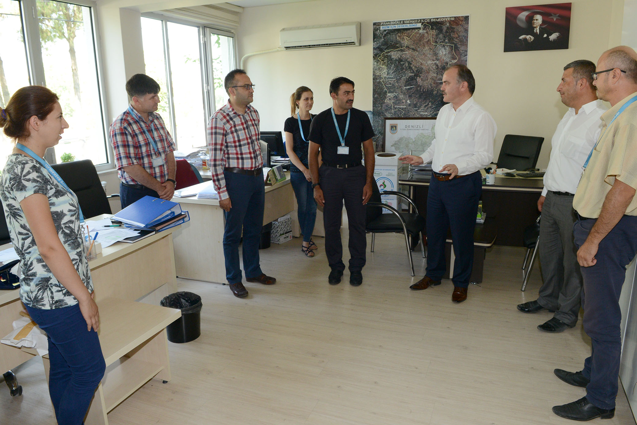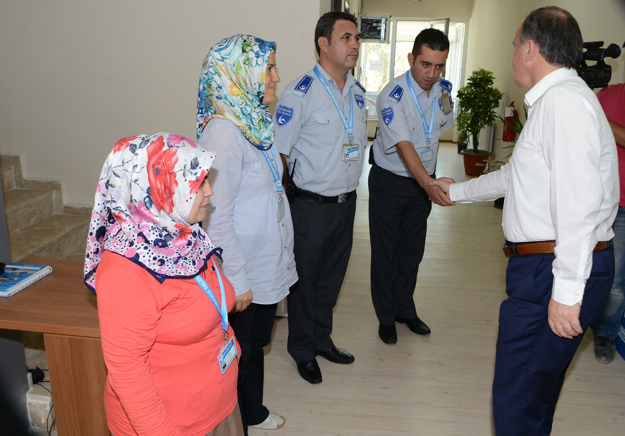 Pamukkale Belediyesi’nde, Ramazan Bayrami coskusu erken basladi. Baskan Gürlesin’in personelle bayramlasma programina, baskan yardimcilari da eslik etti. Belediye birimlerini bir bir gezerek tüm personelle tek tek bayramlasan Baskan Gürlesin, ailelerine ve yakinlarina selam götürmelerini, onlarinda bayramlarini kutladigini iletmelerini istedi.