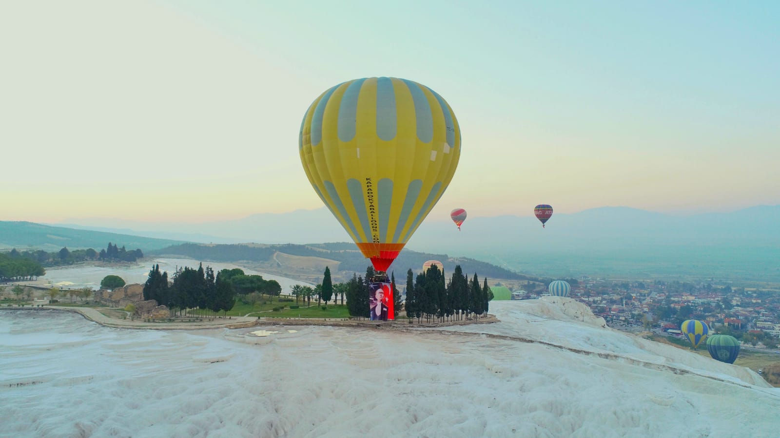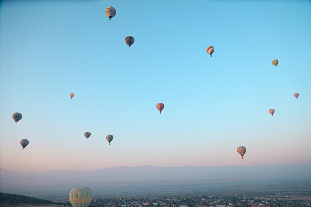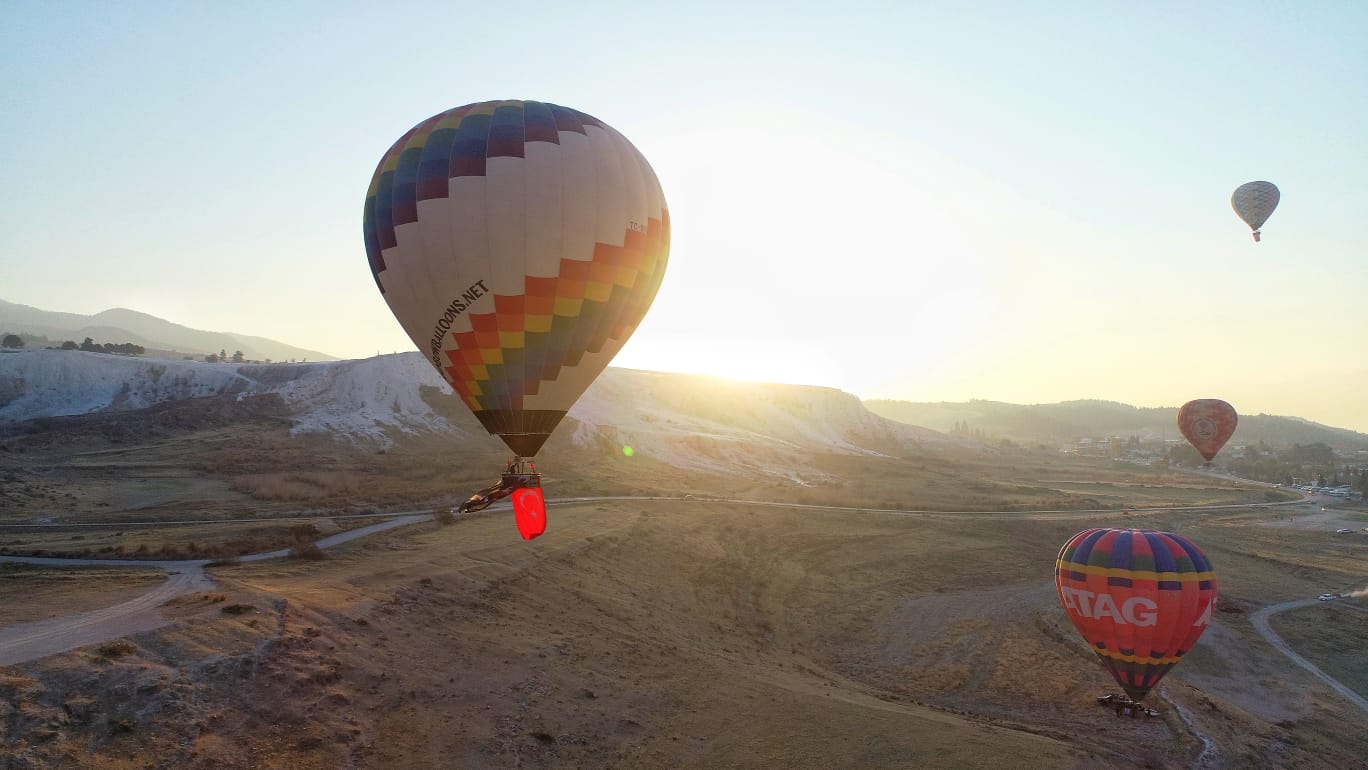 Cumhuriyetimizin kuruluşunun 98. Yıl dönümü dünya miras listesindeki Pamukkale travertenlerinin semalarında da kutlandı. Onlarca sıcak hava balonunun havalandığı Pamukkale semalarında Türk Bayrağı ve Atatürk posterleri dalgalandı. Ayrıca balonlara binen yerli ve yabancı turistlere Pamukkale Belediyesi tarafından şanlı Türk Bayrağı ve ay-yıldızlı kırmızı balonlar hediye edildi.
