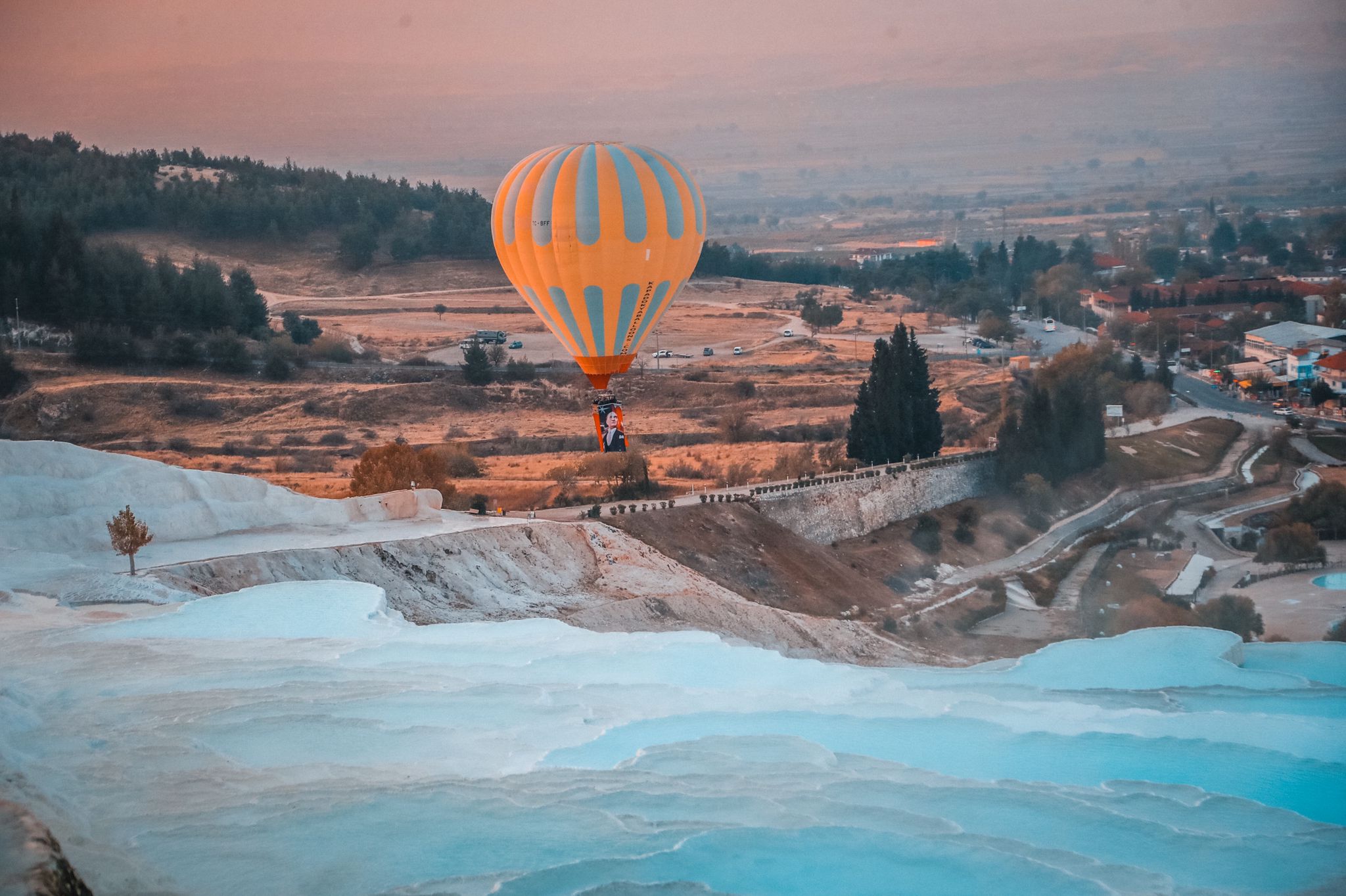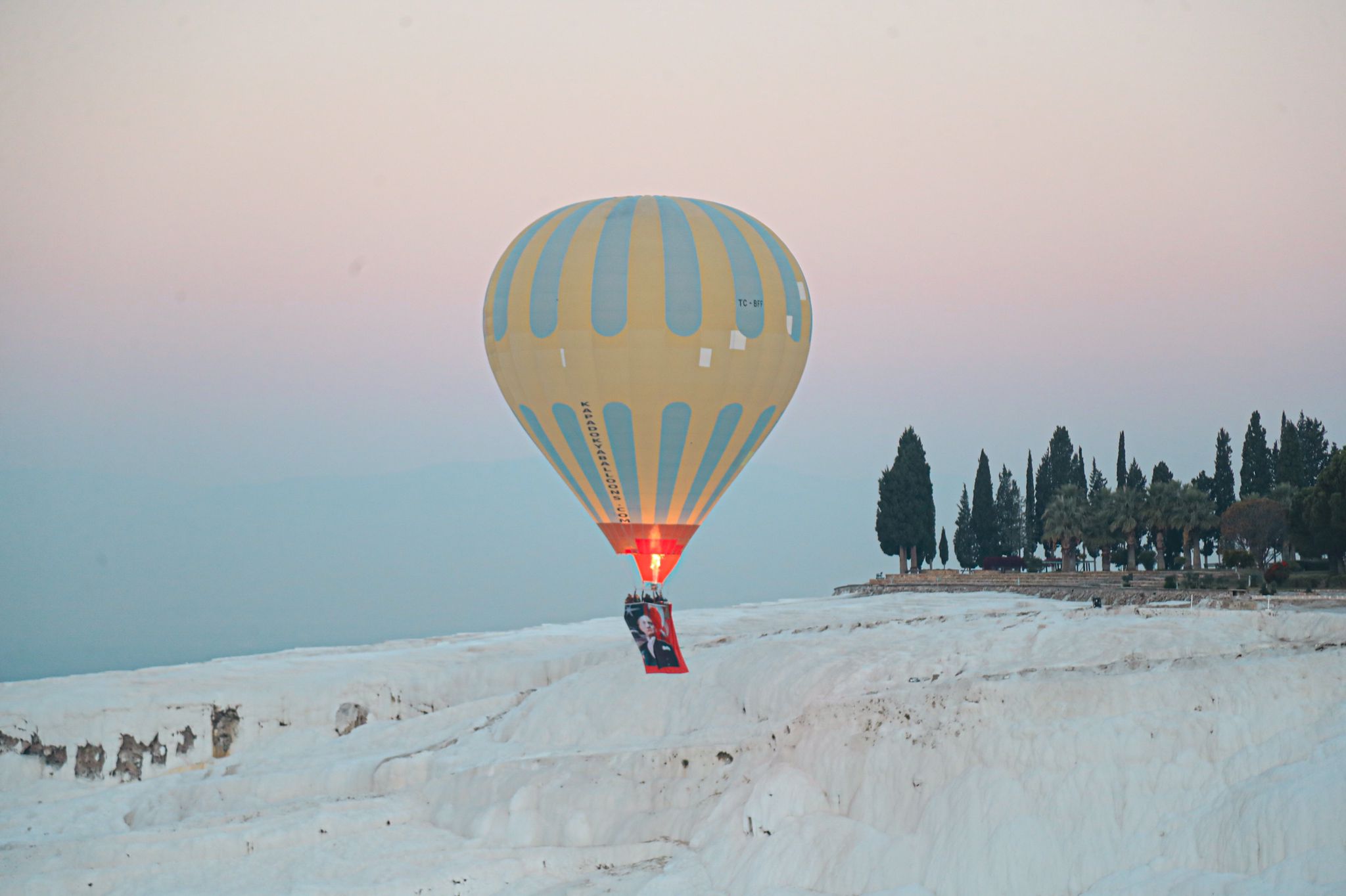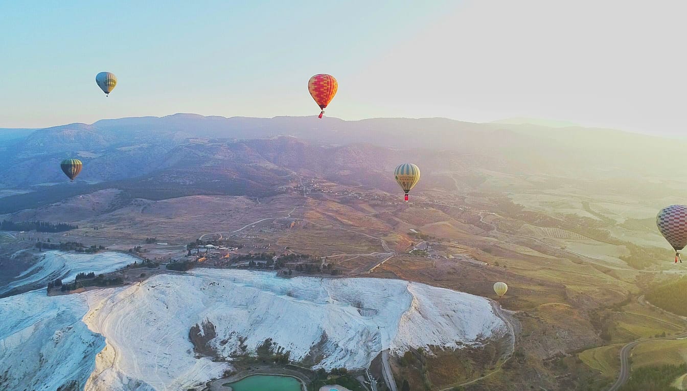 Cumhuriyetimizin kuruluşunun 98. Yıl dönümü dünya miras listesindeki Pamukkale travertenlerinin semalarında da kutlandı. Onlarca sıcak hava balonunun havalandığı Pamukkale semalarında Türk Bayrağı ve Atatürk posterleri dalgalandı. Ayrıca balonlara binen yerli ve yabancı turistlere Pamukkale Belediyesi tarafından şanlı Türk Bayrağı ve ay-yıldızlı kırmızı balonlar hediye edildi.