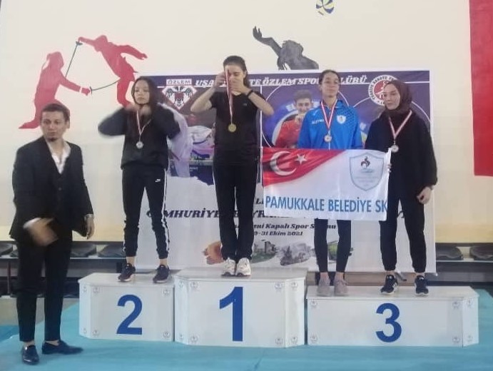 Pamukkale Belediyespor’un sporcuları katıldıkları organizasyonlardan madalyayla dönmeye devam ediyor. Karate branşında boy gösteren sporcular hafta sonunda Uşak’ın ev sahipliğinde yapılan “İller Arası Cumhuriyet Bayramı Karate Turnuvası”na katıldı. 18 şehir, 34 kulüpten 650 sporcunun mücadele ettiği turnuvada Pamukkale Belediyespor’u 3 sporcu temsil etti. Aleyna Doruk Genç Kadınlar Kumite 53 kilogramda kategorisinde üçüncü olarak bronz madalya kazandı. Ümit Erkekler Kumite +70 kilogramda kategorisinde mücadele eden Batuhan Doruk da yine üçüncü olarak bronz madalyanın sahibi oldu. Gençler 68 kilogramda mücadele eden Talat Ayberk Uçar ise turnuvayı beşinci sırada tamamladı.